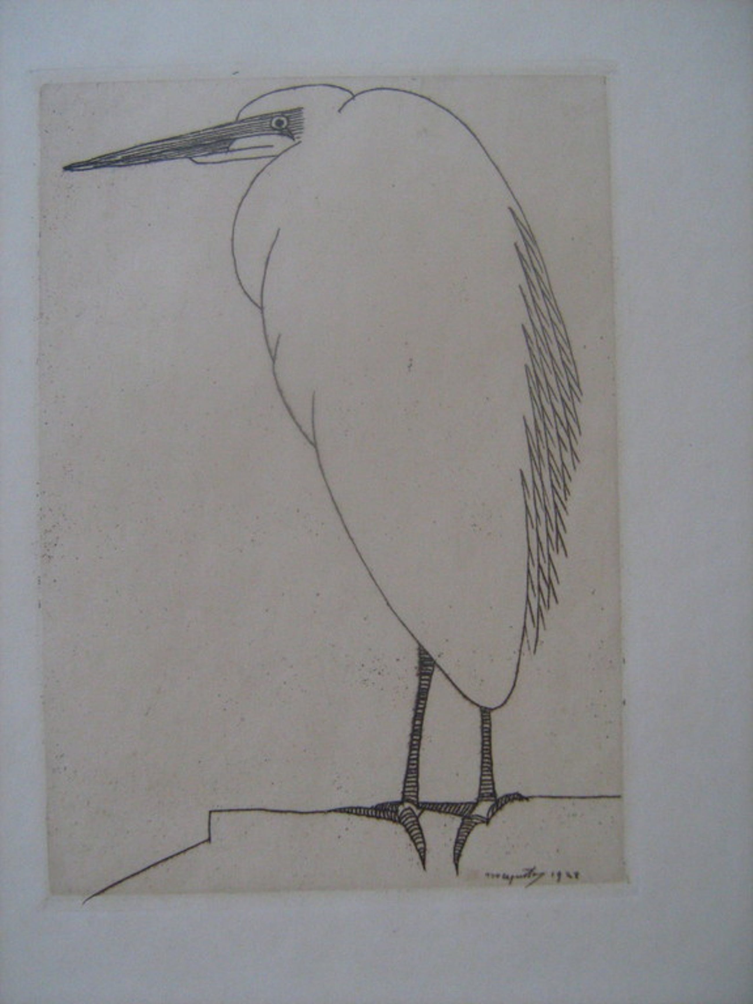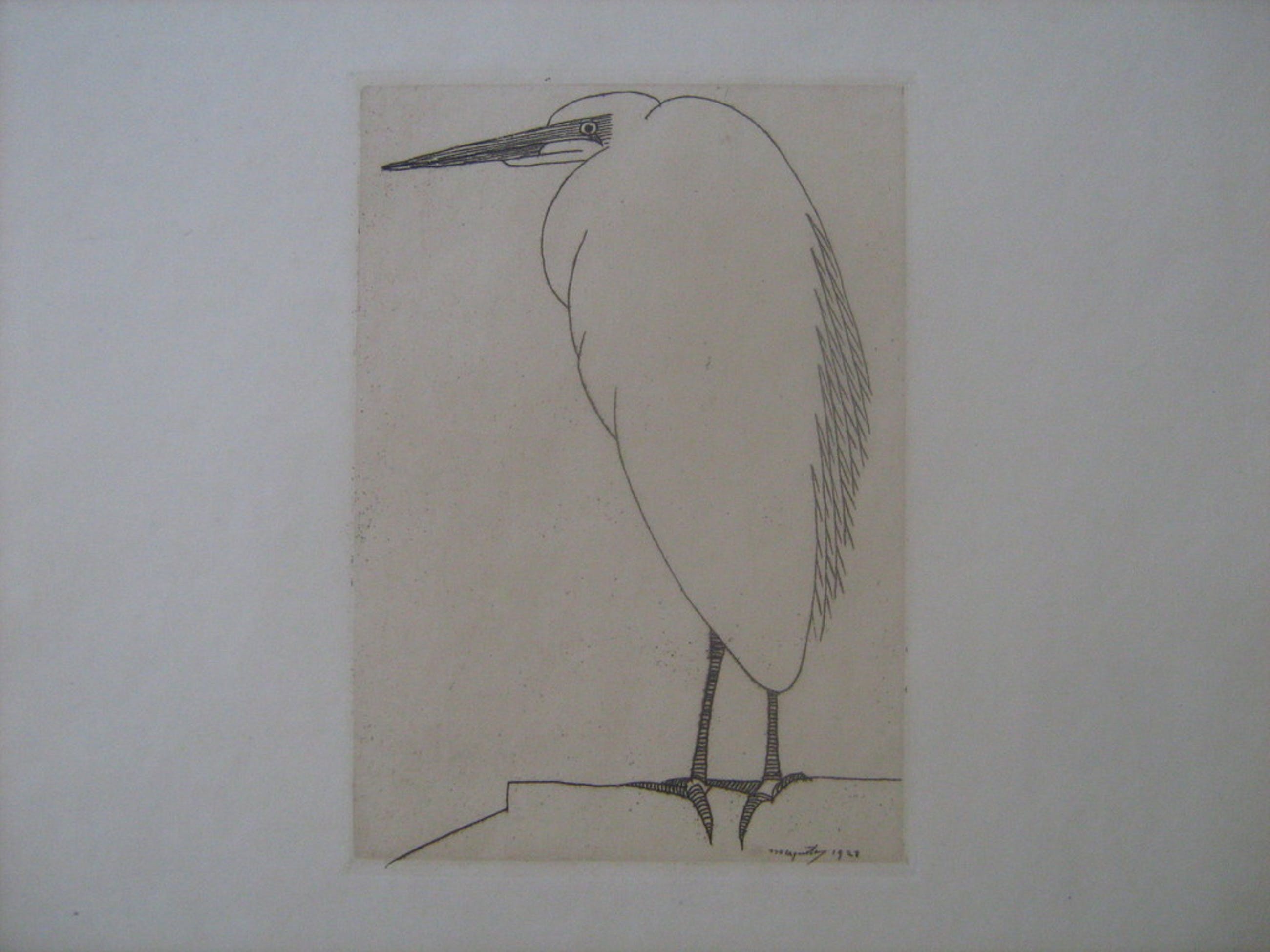 JESSURUN de MESQUITA, Samuel (1868-1944). 'Reiger' (snavel naar links). Beeldmaat 17,8 x 12,2 cm. Bladmaat 29,2 x 42 cm. Gesigneerd in druk met jaarvermelding 1928.