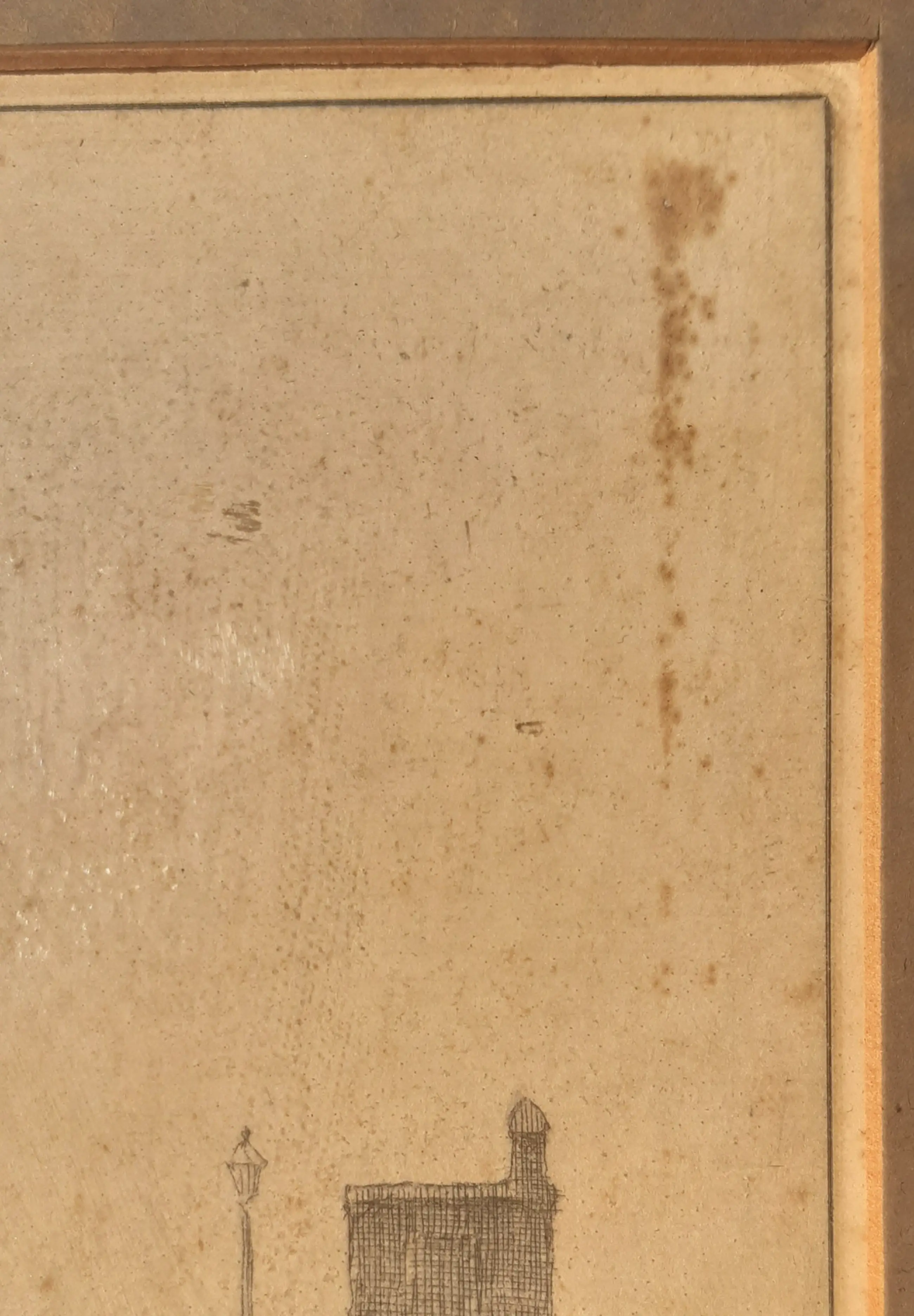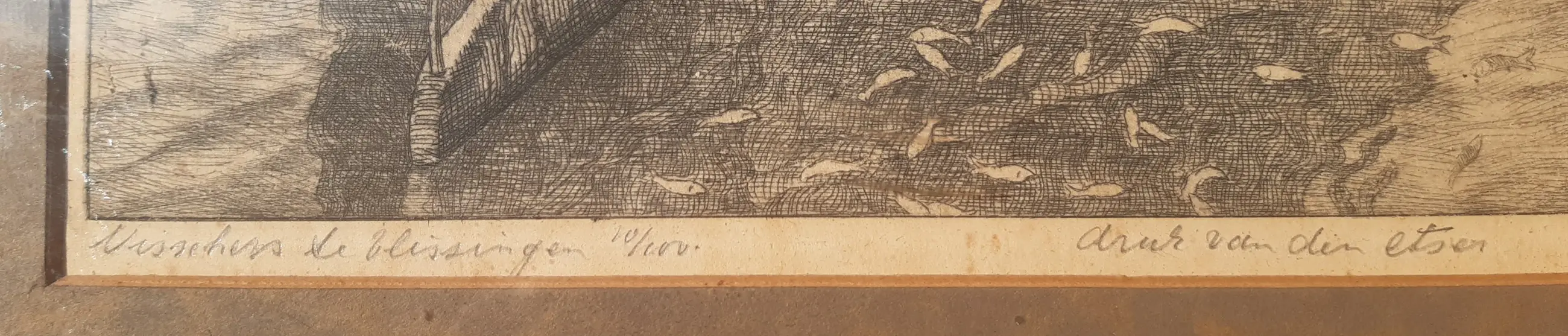 Rechtsboven een ouderdomsvlek (zie foto). Ets is verder in uitstekende staat. In originele lijst.