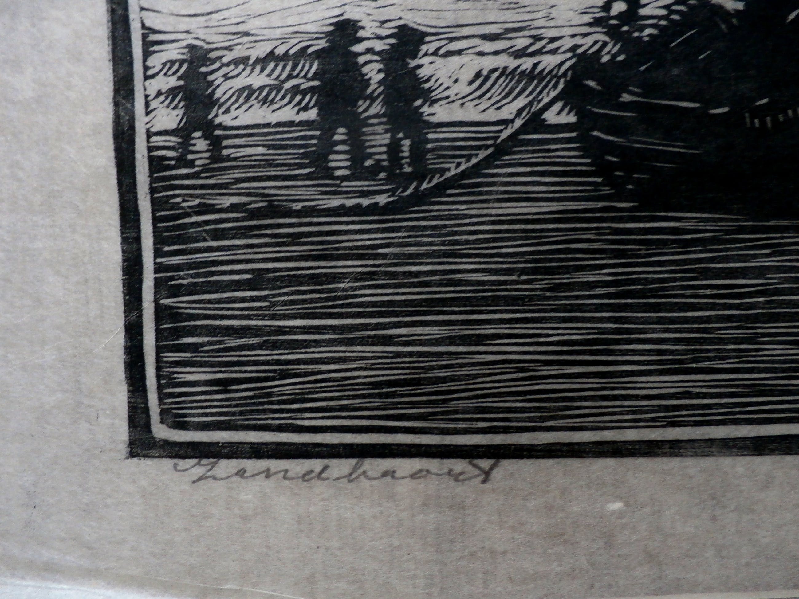 Houtsnede op japans papier van Joseph van de Wall Perne. Titel: Zandvoort. Afmetingen voorstelling: H24 x b29.5 cm. Het werk is, rechtsonder, met potlood gesigneerd. De authenticiteit van het aangeboden werk wordt voor 100% gegarandeerd. Een certificaat van echtheid kan, op aanvraag, worden meegestuurd..