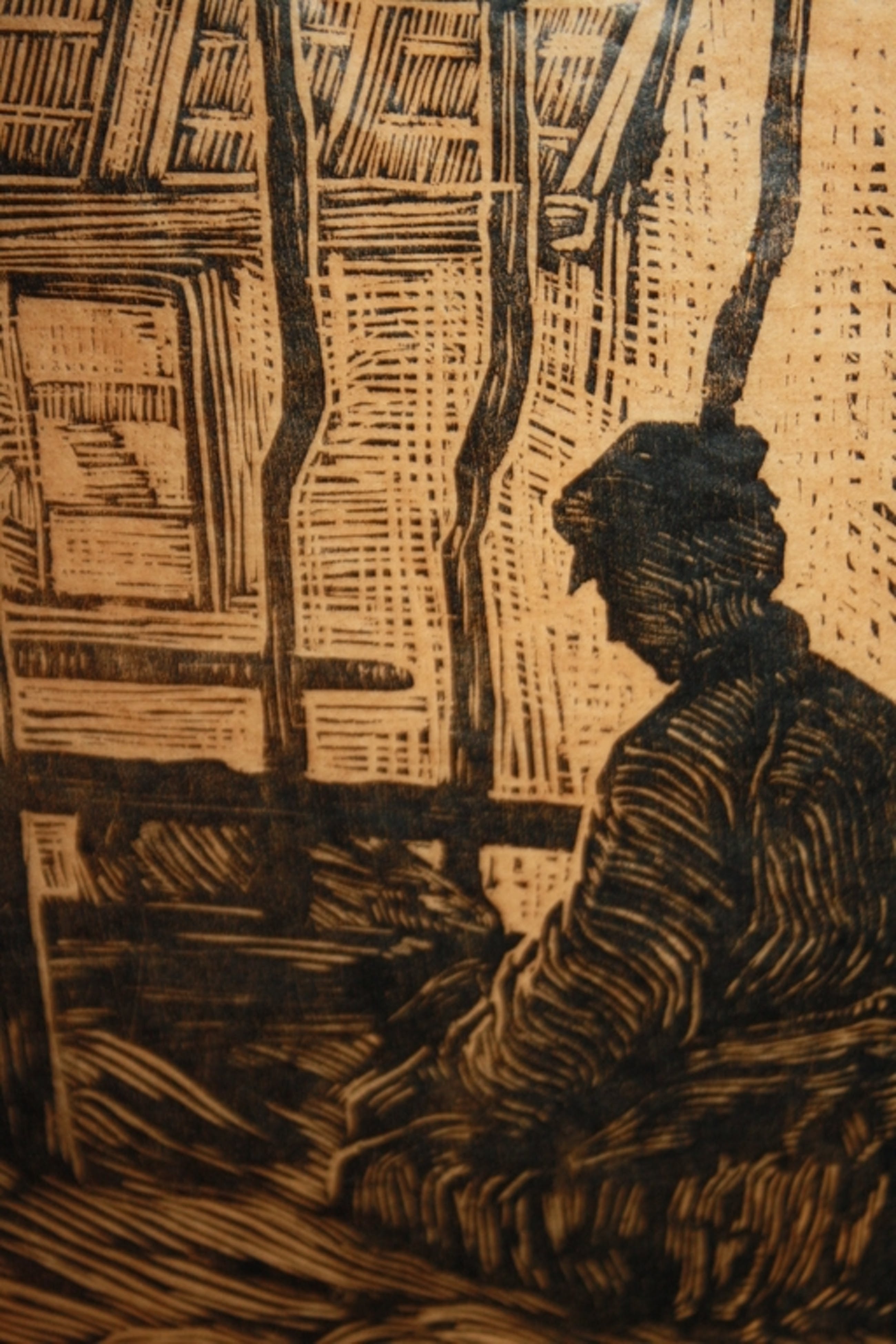 HOUTSNEDE OP RIJSTPAPIER IN DE MAAT 22 X 27 CM