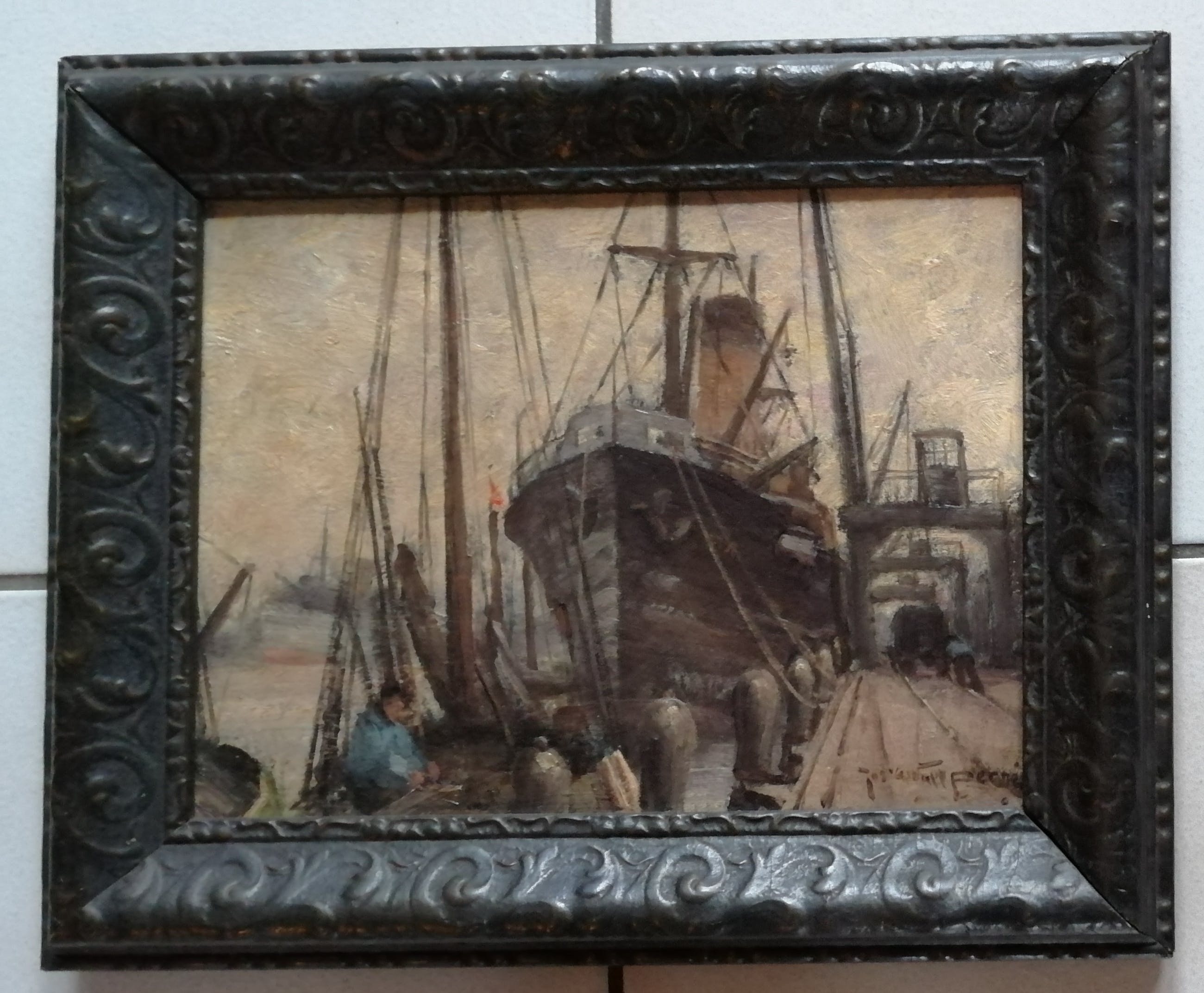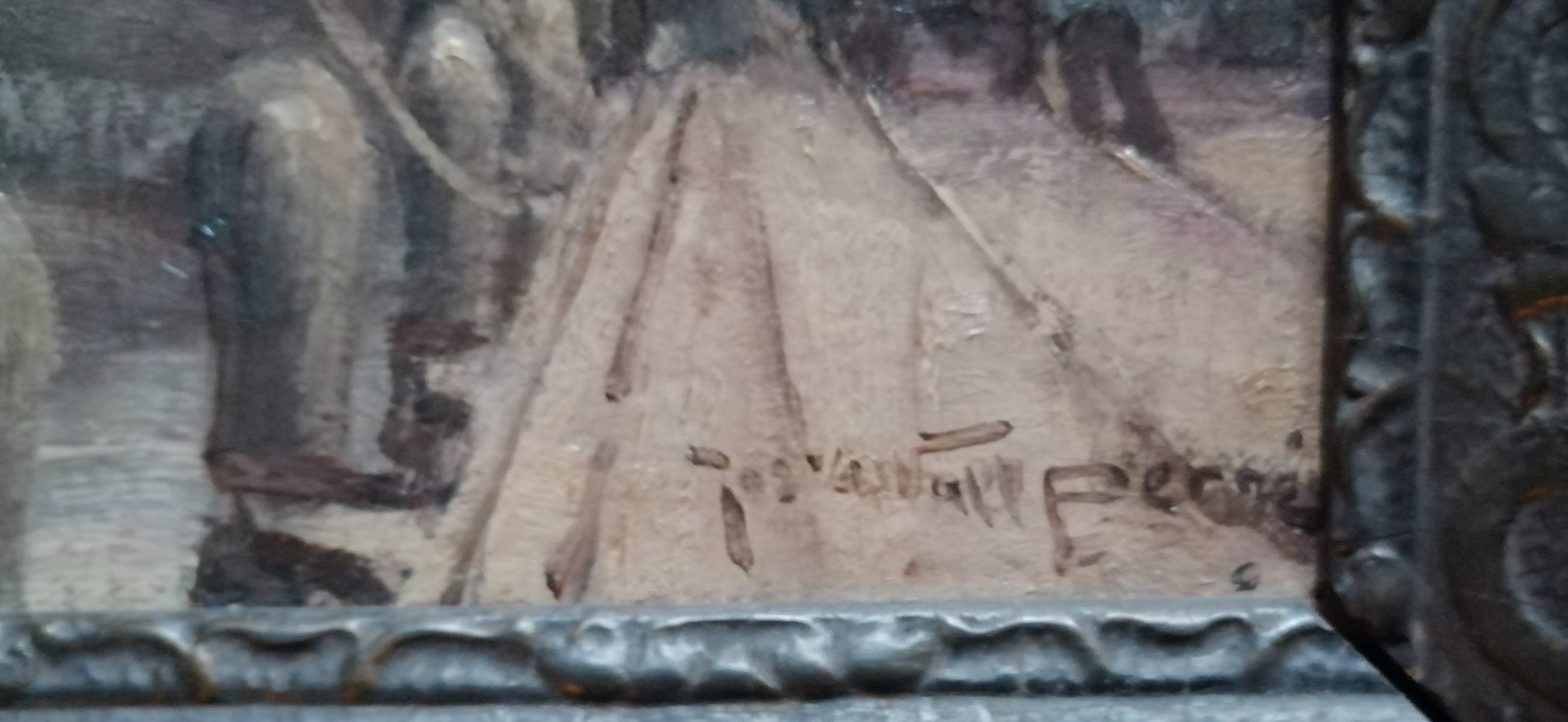 Gesigneerd rechtsonder. Doekmaat 28x37 cm. Lijstmaat 40x49x4 cm. De lijst heeft gebruikssporen. Joseph (Jos) van der Wall Perné werd geboren te Haarlem op 11 maart 1877 en overleed aldaar op 29 oktober 1941. Opleiding aan de School voor Kunstnijverheid te Haarlem en de Akademie für Bildende Künste te München. Schilder, graveur en lithograaf. Bekend om zijn kerk interieurs van de sint Bavo te Haarlem, bloemstillevens, havengezichten, boerengenre en landschappen in de omgeving van Haarlem.