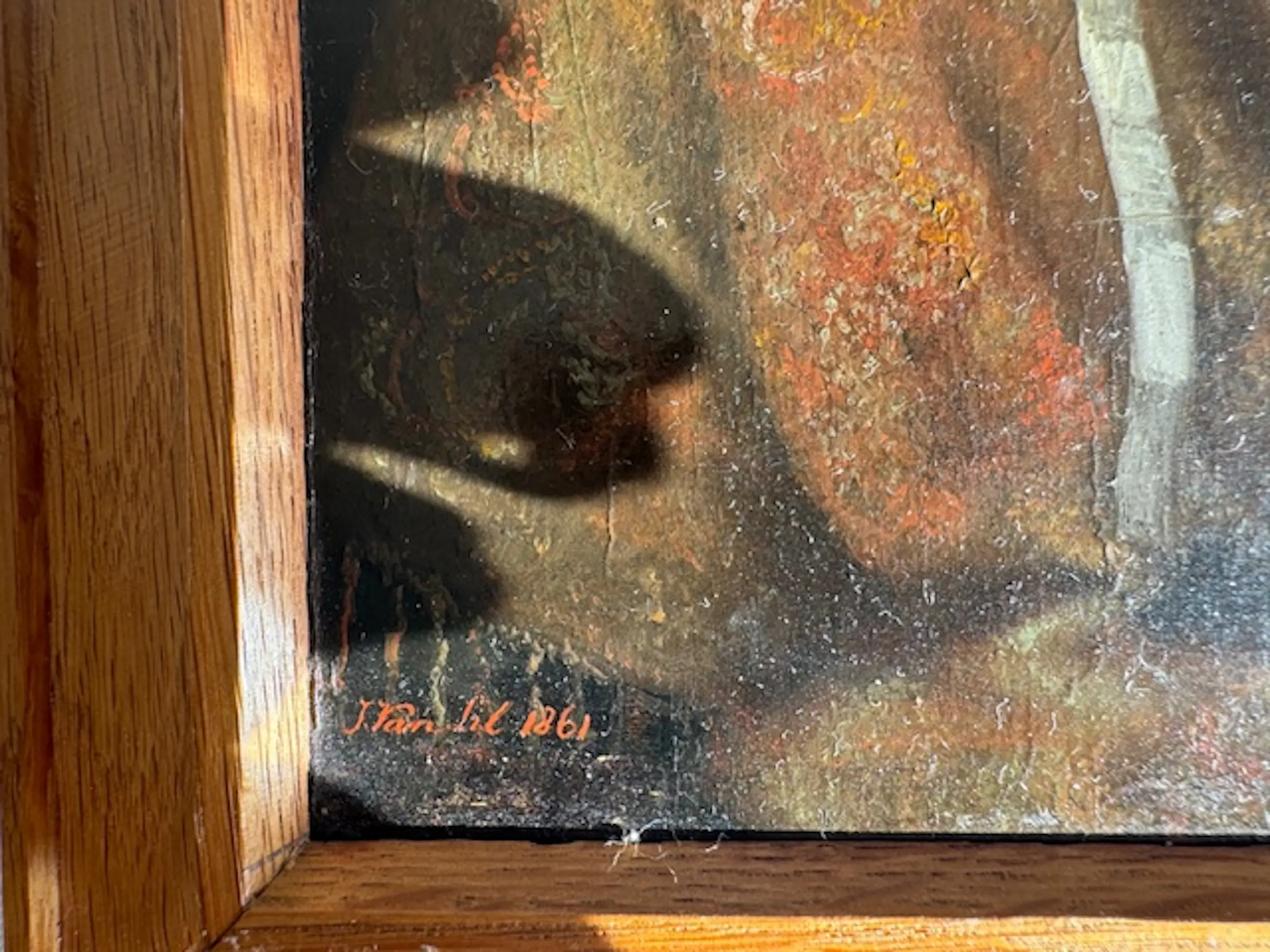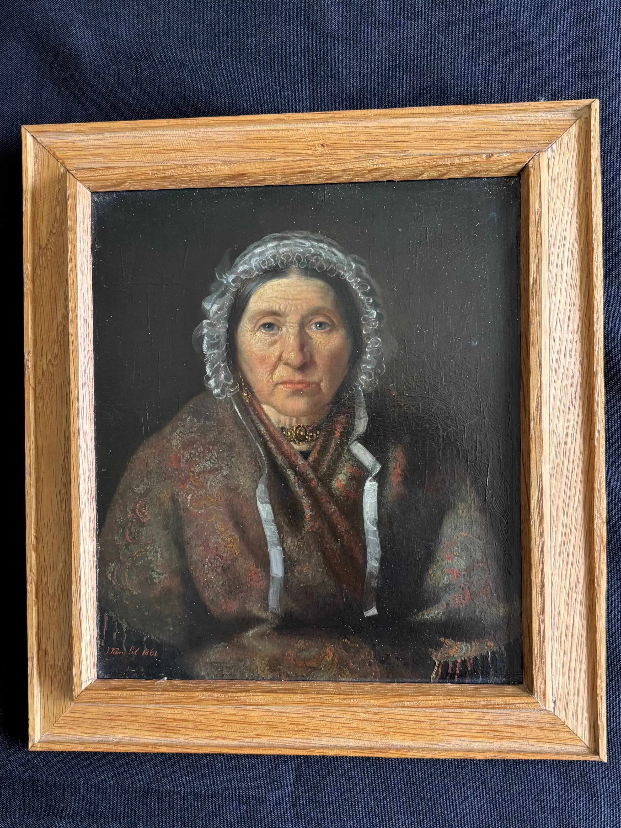 Bevat 4 portretten uit 1861 van het gezin van de bekende schilder Joseph Van Lil. Een portret is gesigneerd. Ze zijn op paneel geschilderd. Twee portretten zijn nog in de originele lijst. Ze zijn in heel goede staat gezien de ouderdom, zeker het gesigneerde portret.
