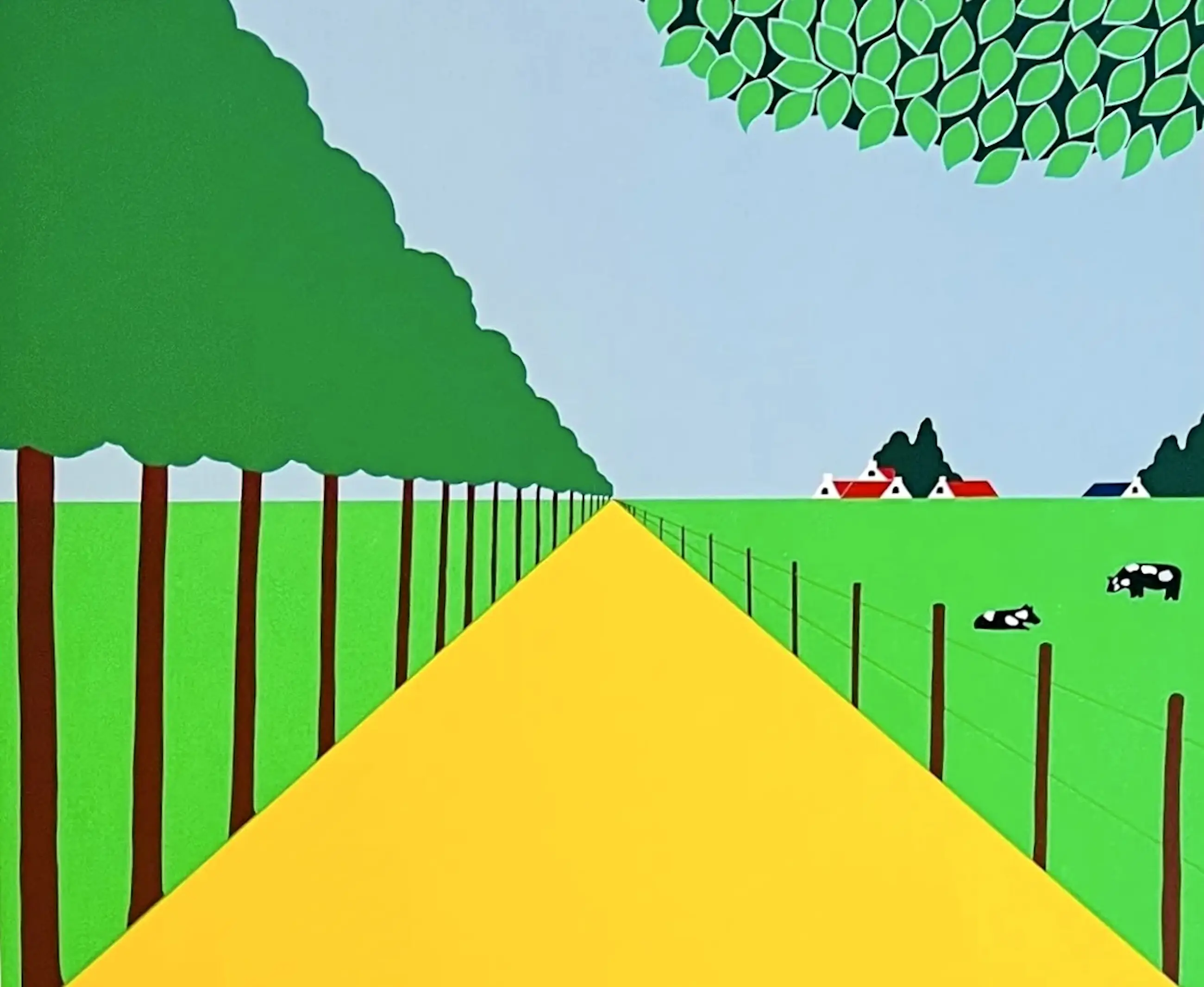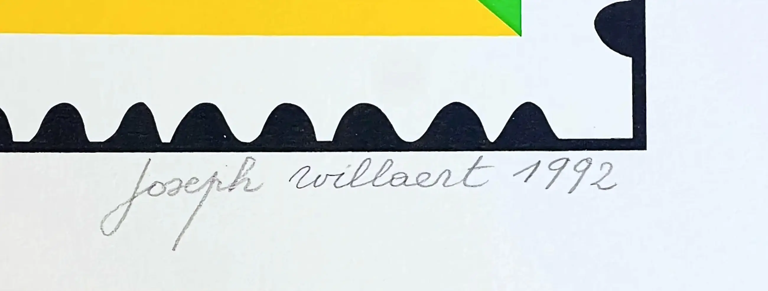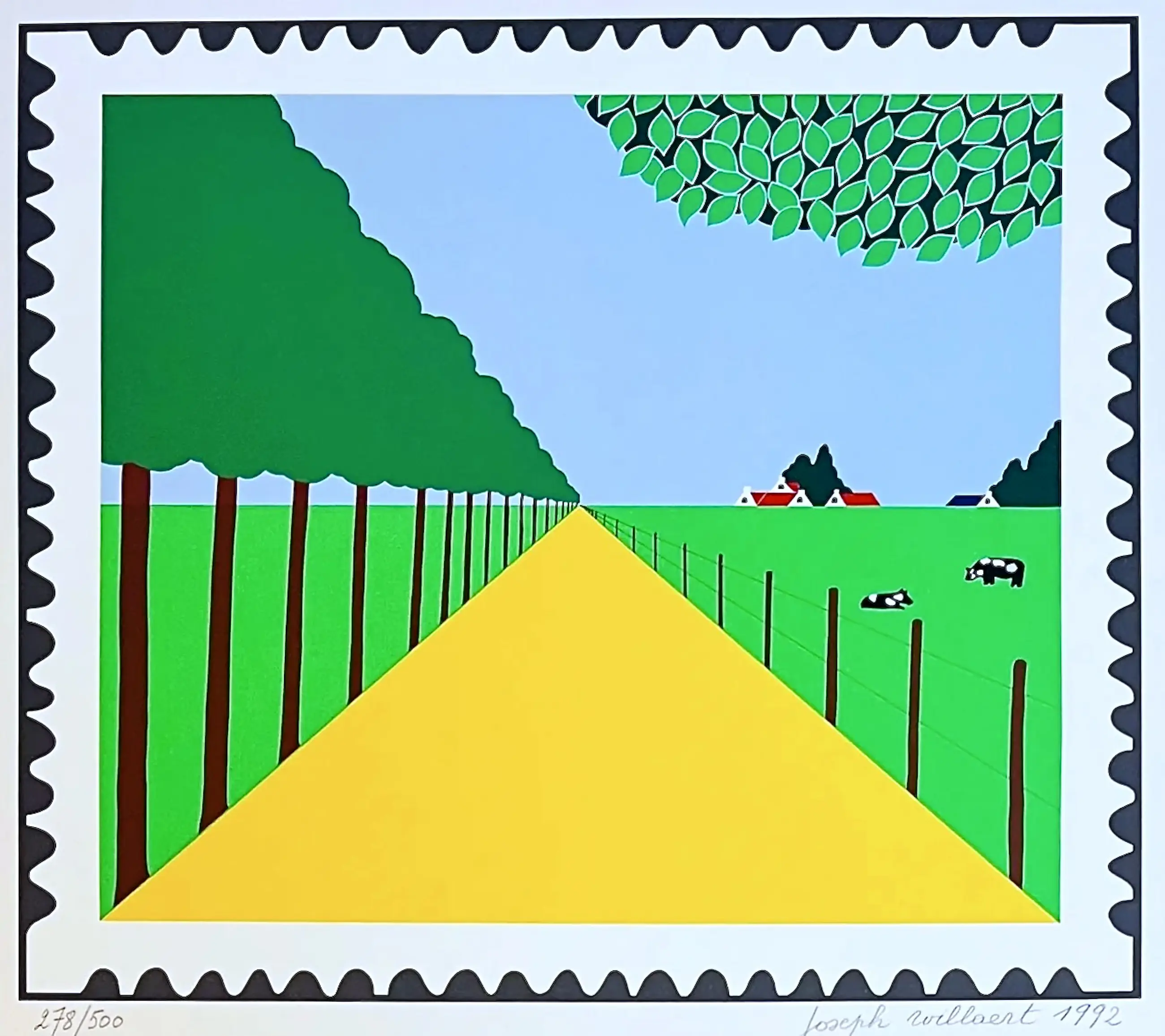 Joseph Willaert - Postzegel met landschap, Zeefdruk, Gesigneerd, 47x58 cm, 1992