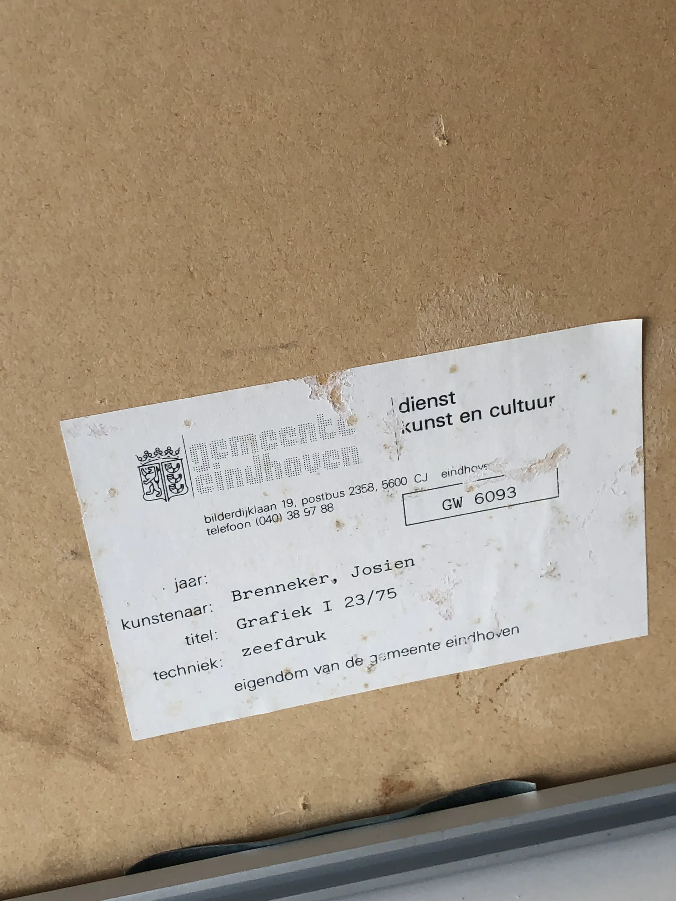 Het werk is af te halen op locatie. Als koper dient u zelf verpakkingsmateriaal mee te nemen. De locatie is: Utrecht, Nederland