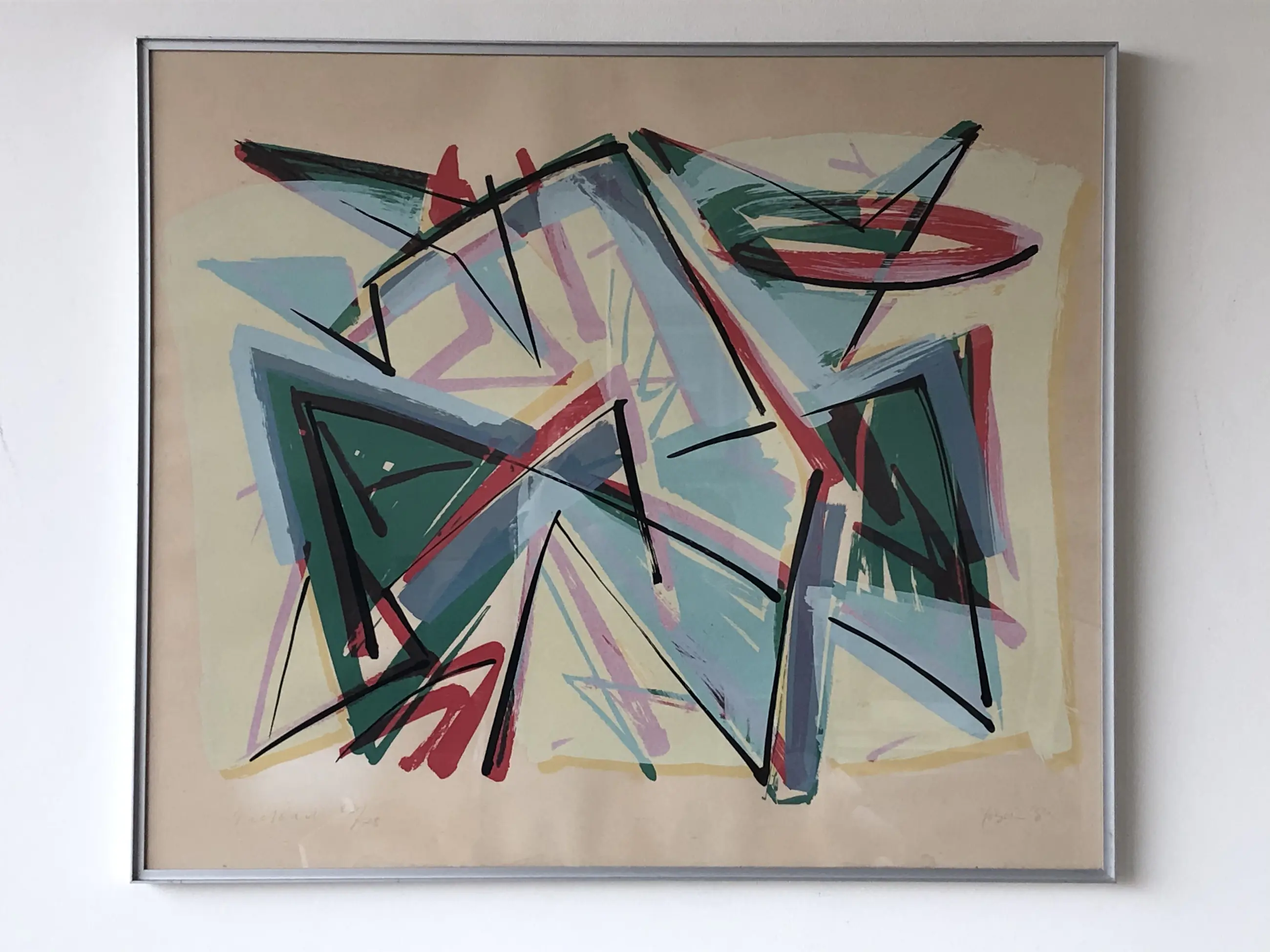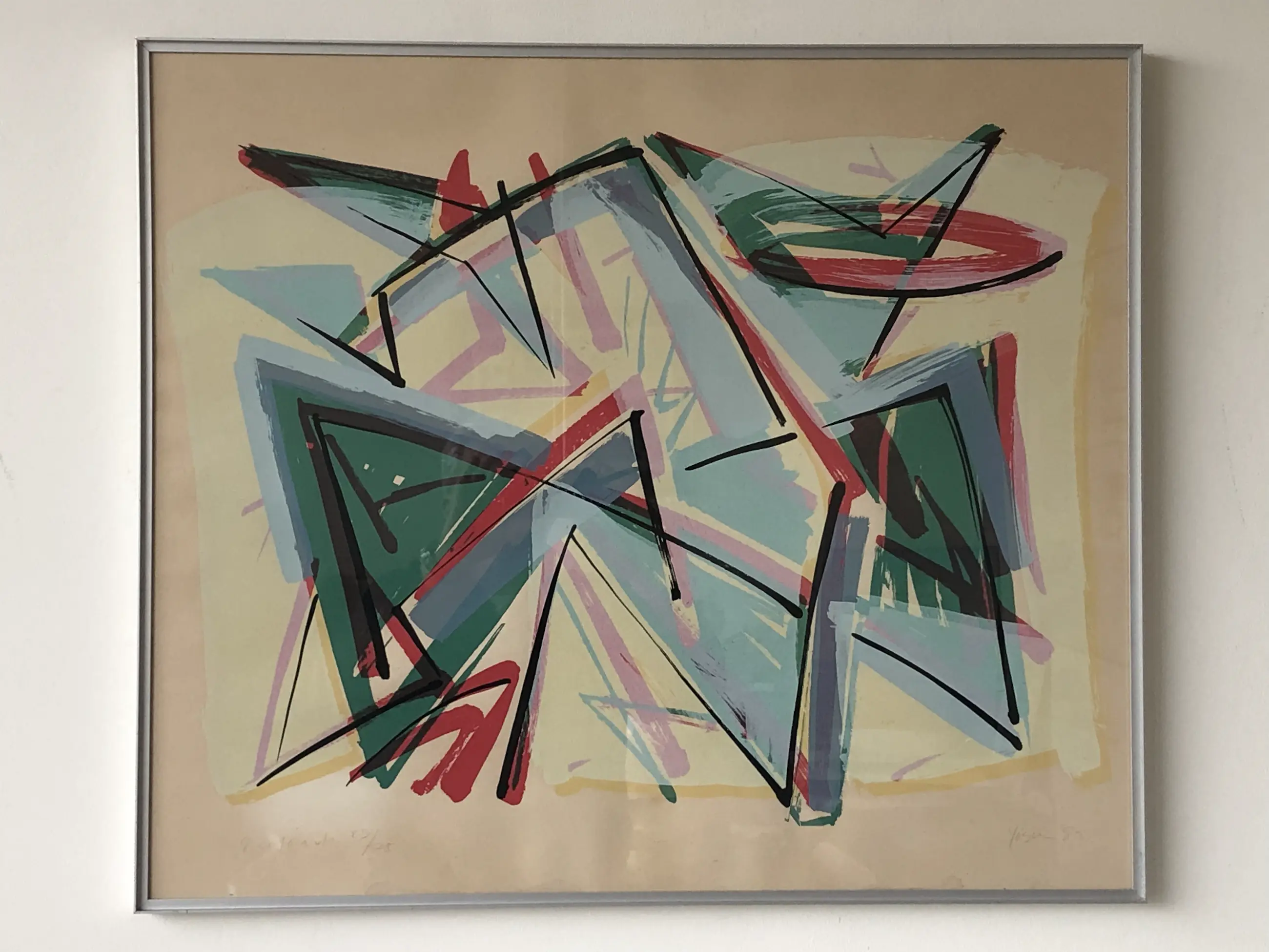Krachtig en kleurig abstract werk van graficus, schilder, tekenaar en fotograaf Josien Brenneker. Ex collectie gemeente Eindhoven.