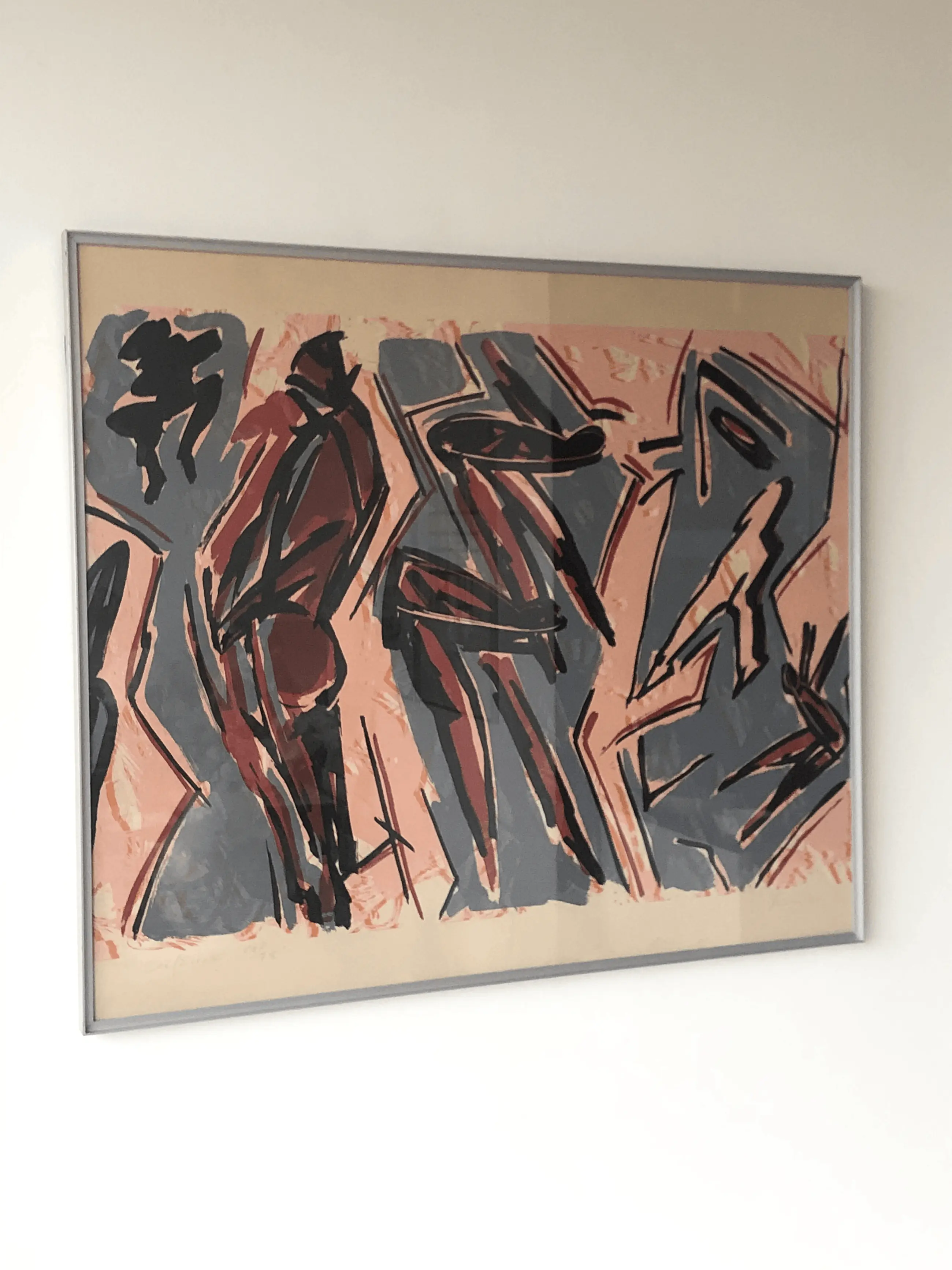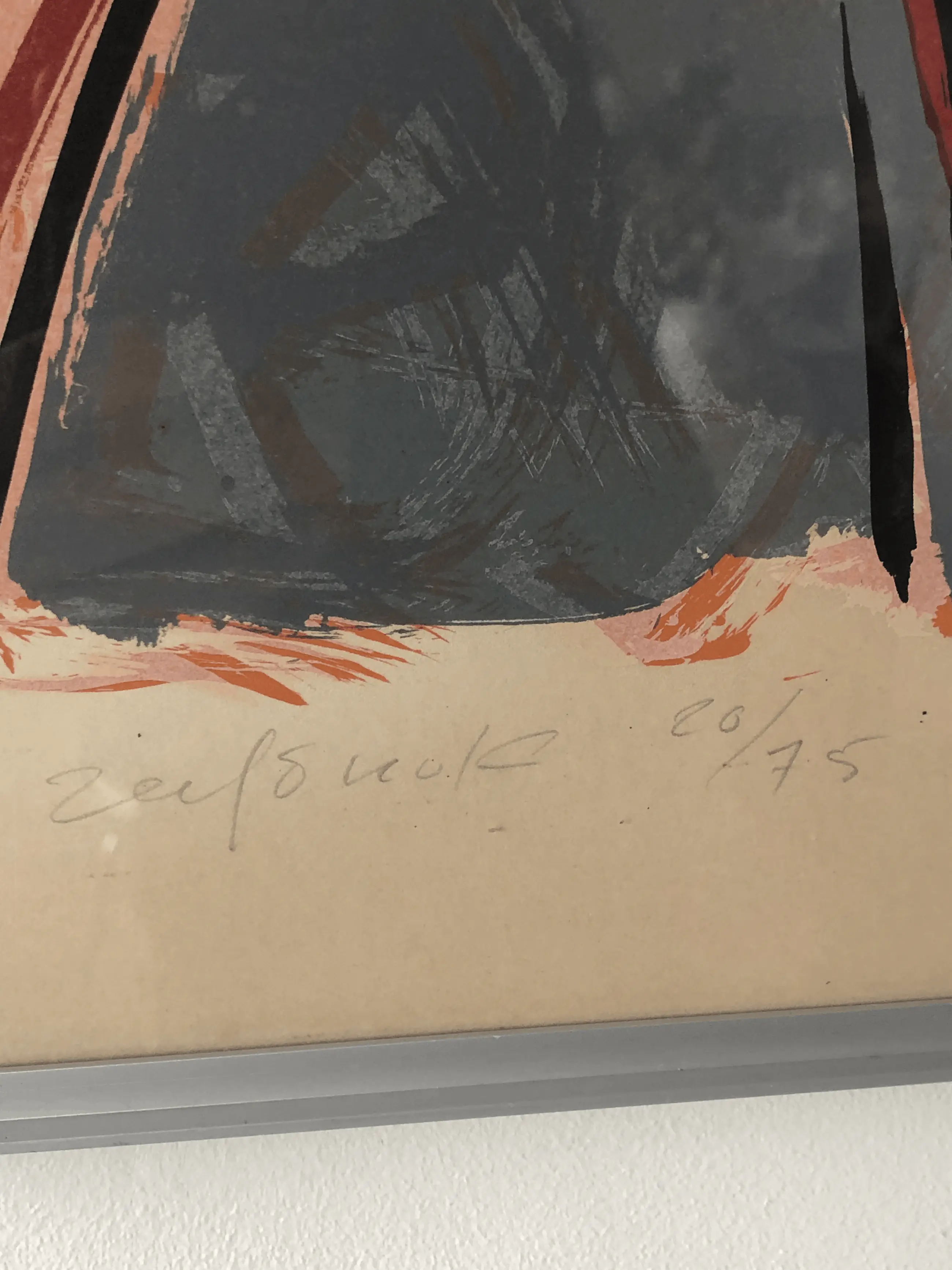 Krachtig en kleurig abstract werk van graficus, schilder, tekenaar en fotograaf Josien Brenneker. Ex collectie gemeente Eindhoven.