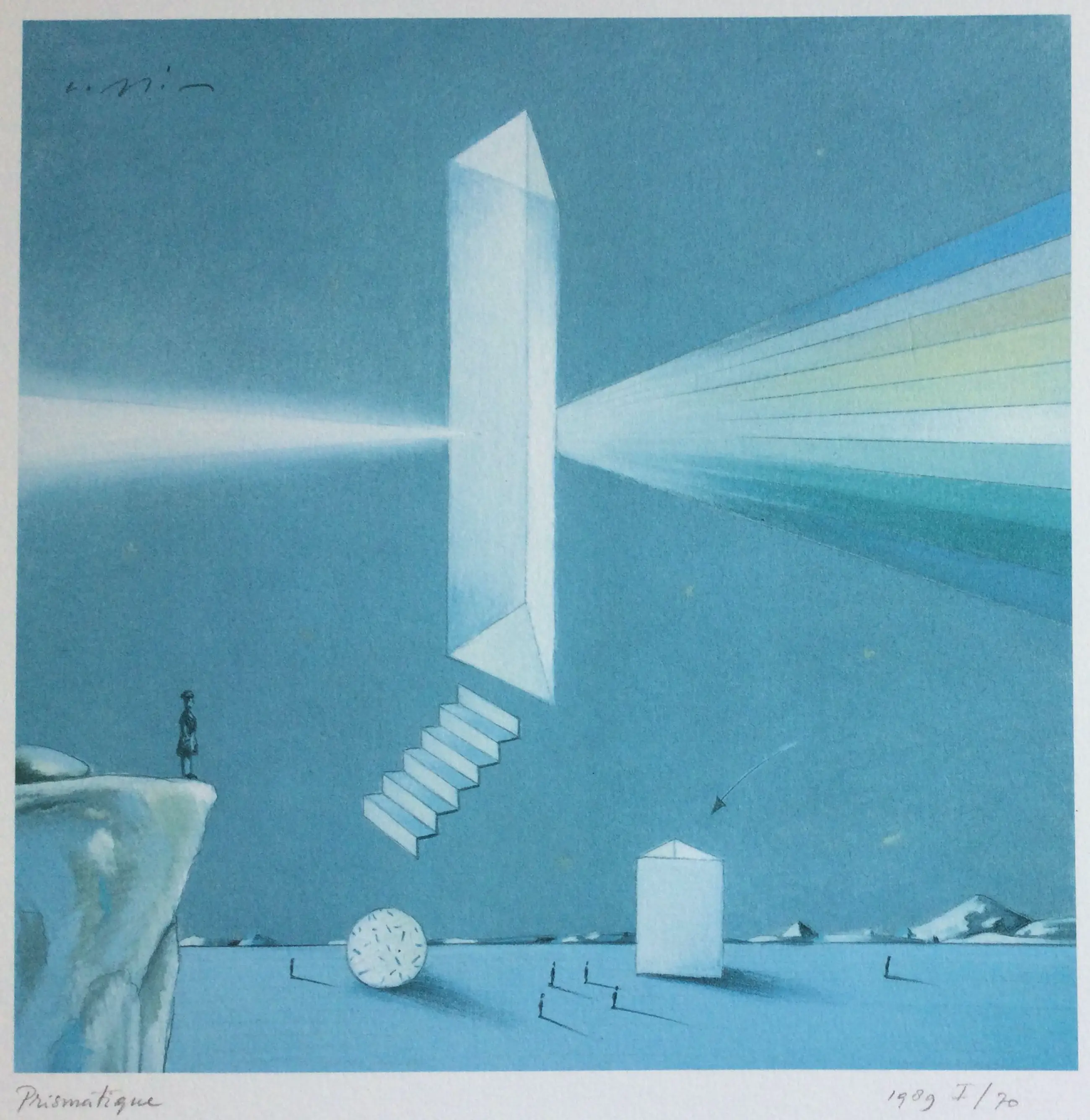 Titel: Prismatique, in potlood linksonder