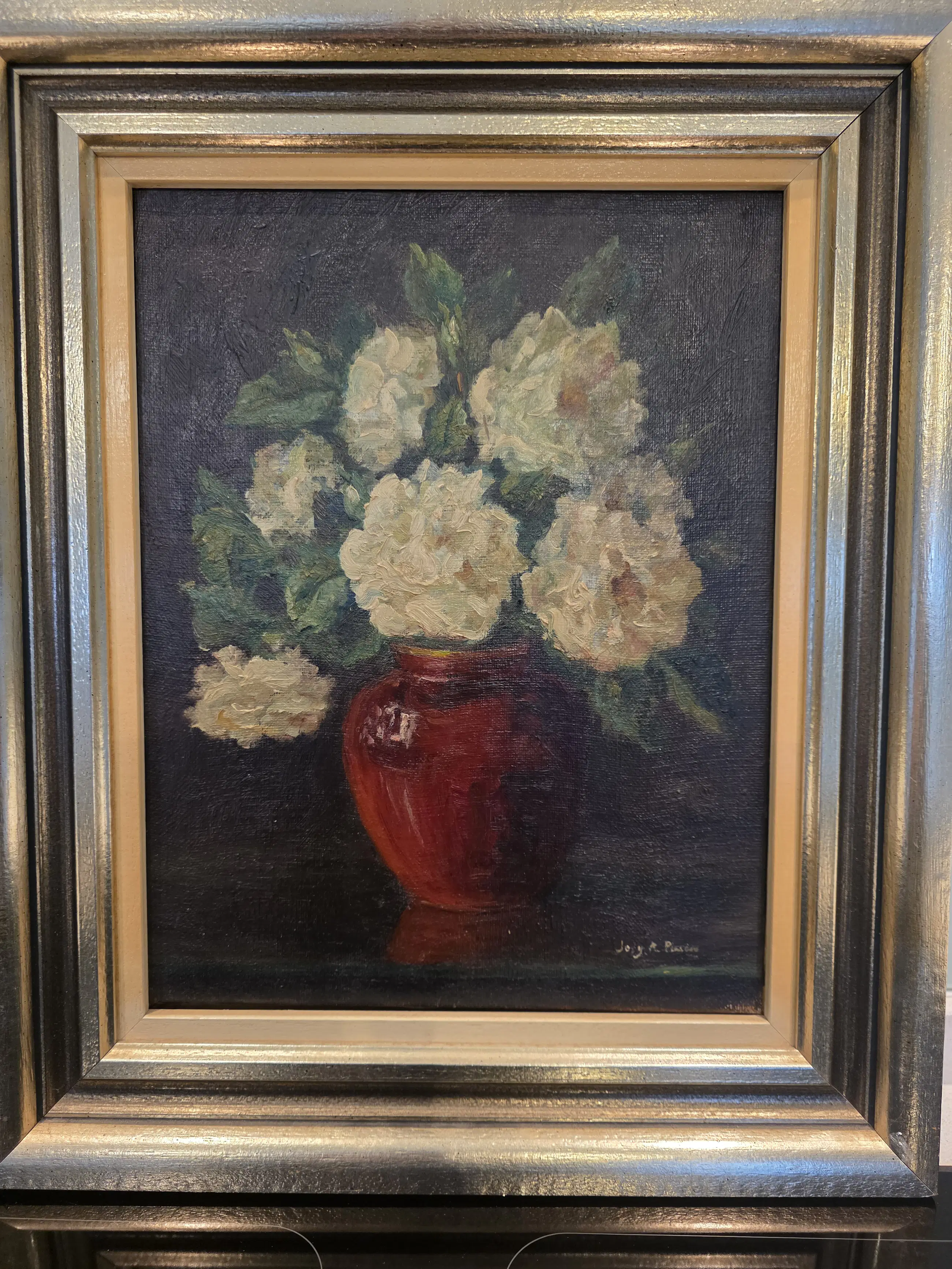 Prachtig geschilderd boeket bloemen in vaas op canvas uit 1952 van Josy-Anne Pirson, professionele bekende kunstschilderes uit Hasselt, geboren op 03 oktober 1911.