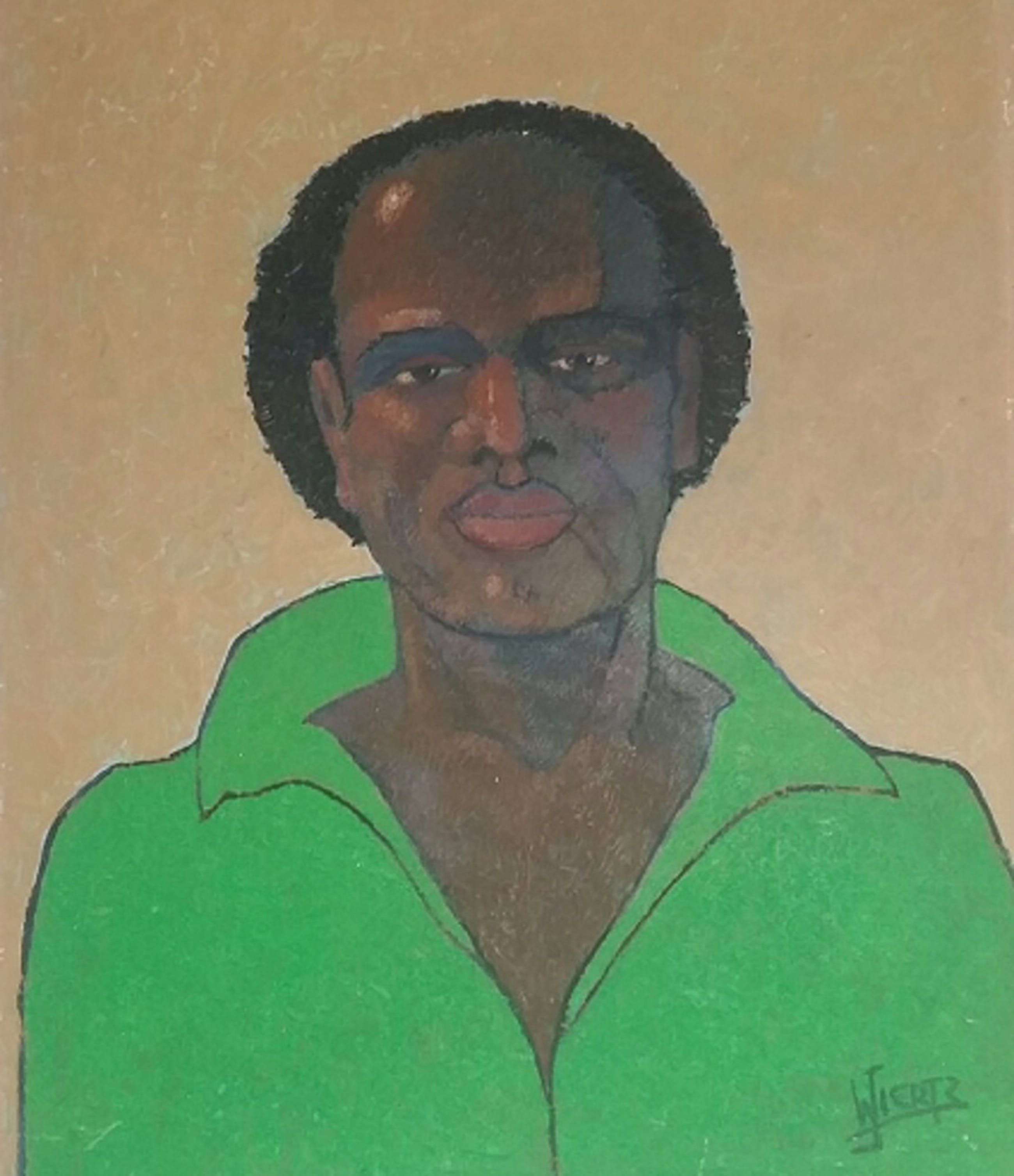 Portret van een gekleurde man, geschilderd met de min of meer bekende cement techniek die de schilder vaker gebruikte.