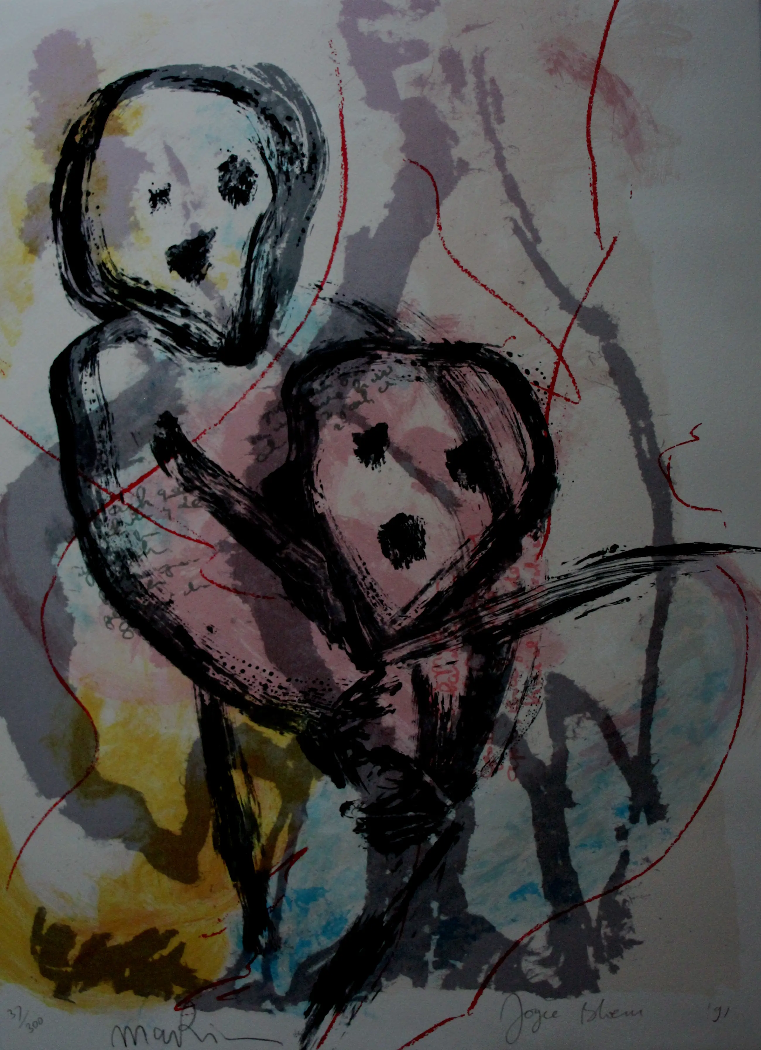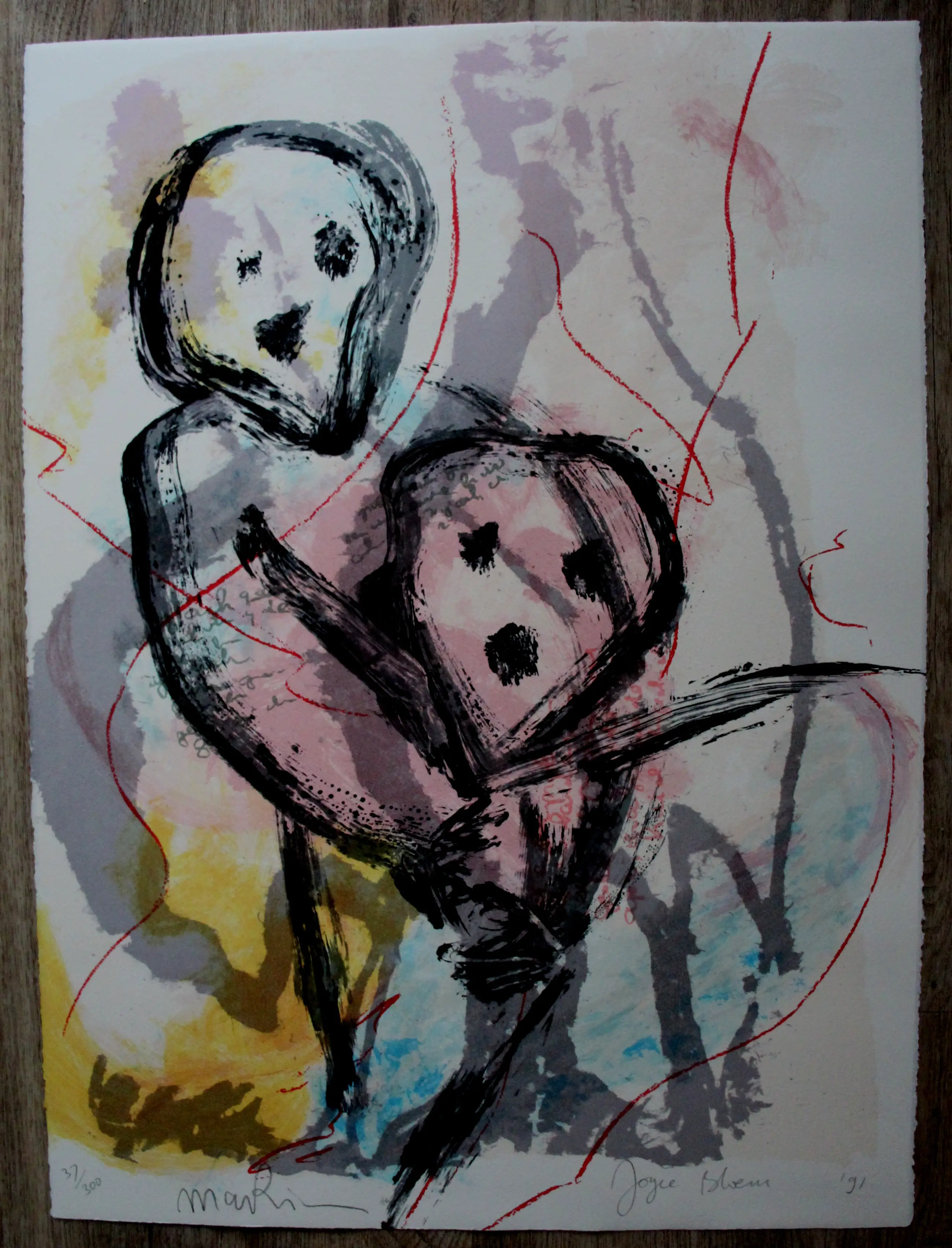 Litho van Joyce Bloem. Jaar: 1991. Oplage: 37/300. Afmetingen blad: H77 x b57cm. Het werk is rechts onderaan, met potlood gesigneerd, door de kunstenaar. De authenticiteit van het aangeboden werk wordt volledig gegarandeerd. Een certificaat van echtheid kan, op aanvraag, worden gemaild.