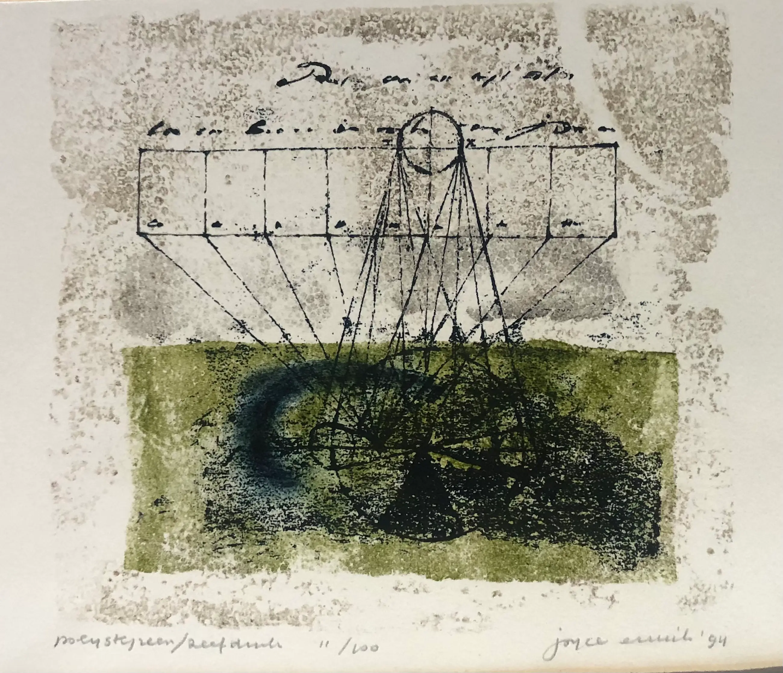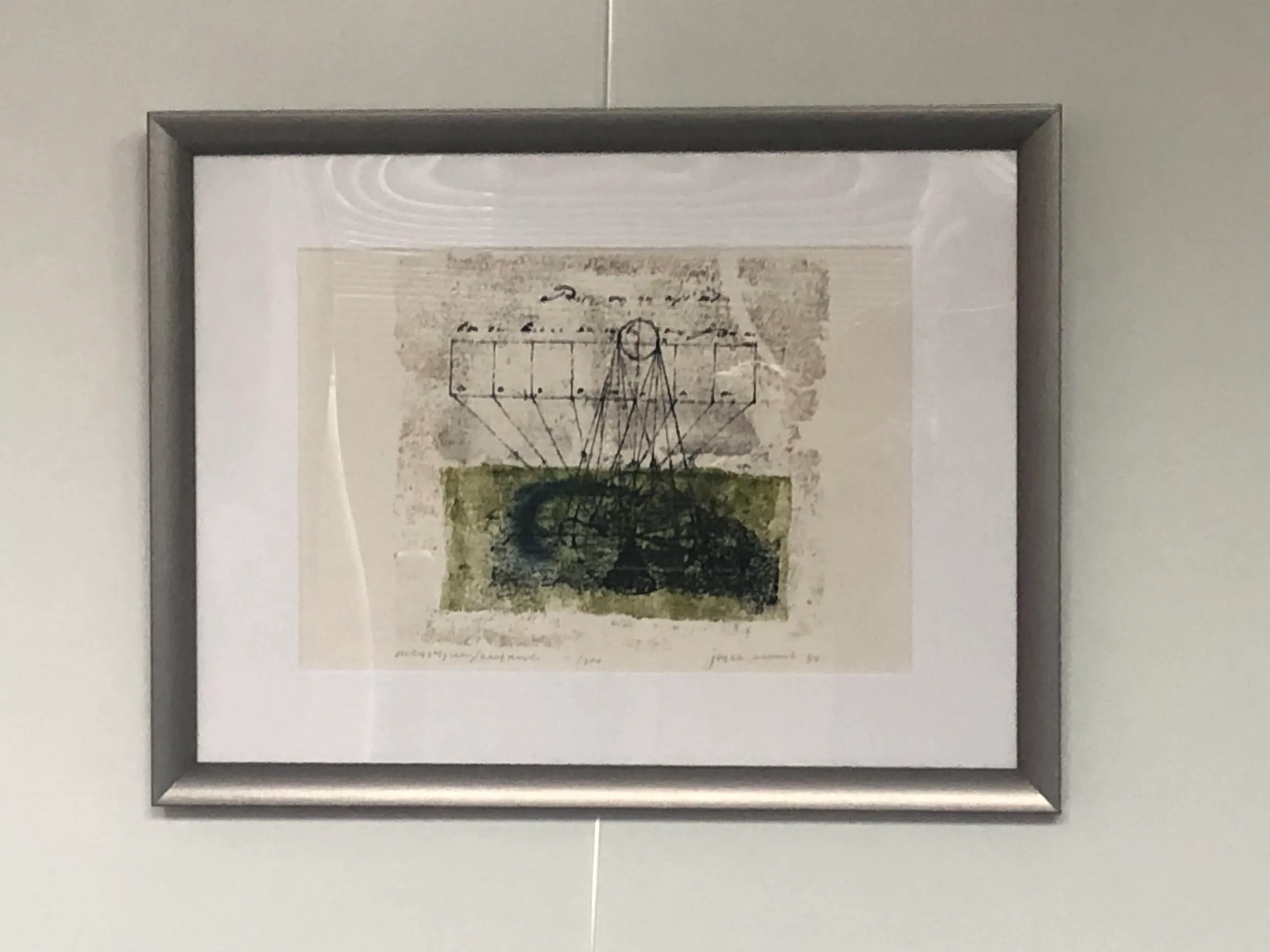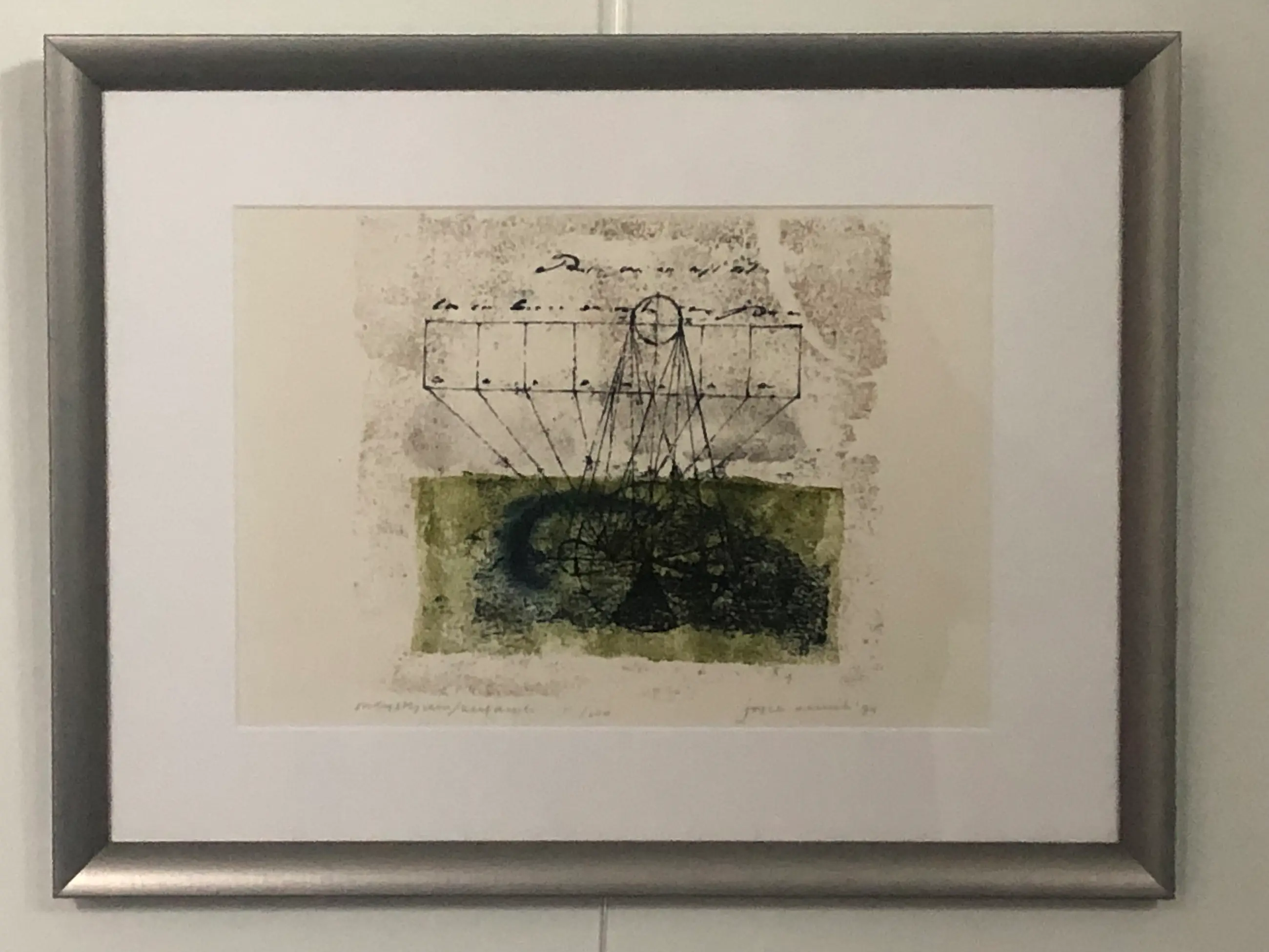 Bijzonder werk gevat in een nette lijst en passe-partout.