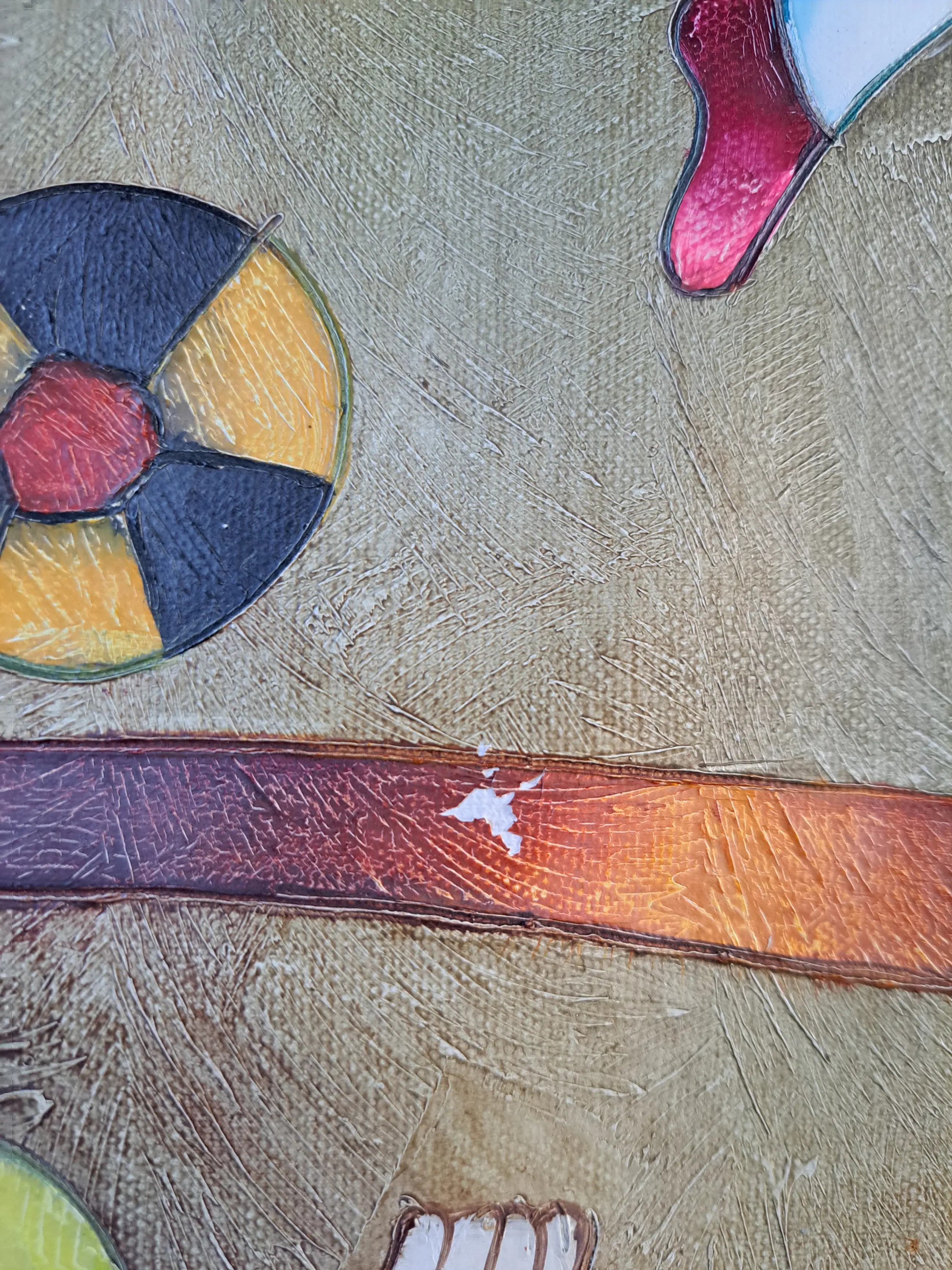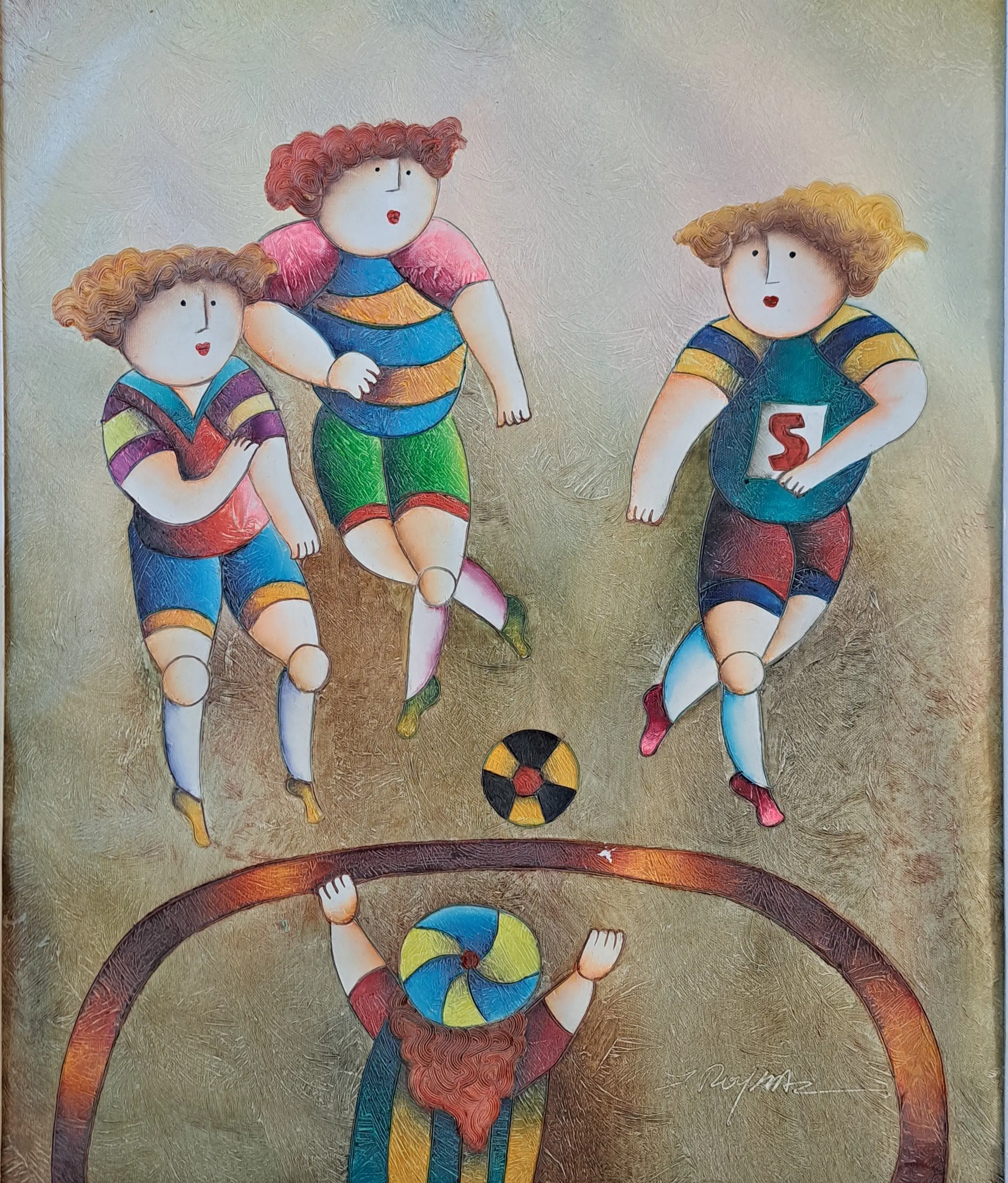 Joyce Roybal, sometimes listed as J. or James, memorializes the naive purity of childhood by painting whimsical children playing musical instruments or participating in sports. His character studies are commonly called Puffy People, and they're reminiscent of the work of Bolivian painter, Graciela Rodo Boulanger, a possible inspiration to Roybal when he was 18.