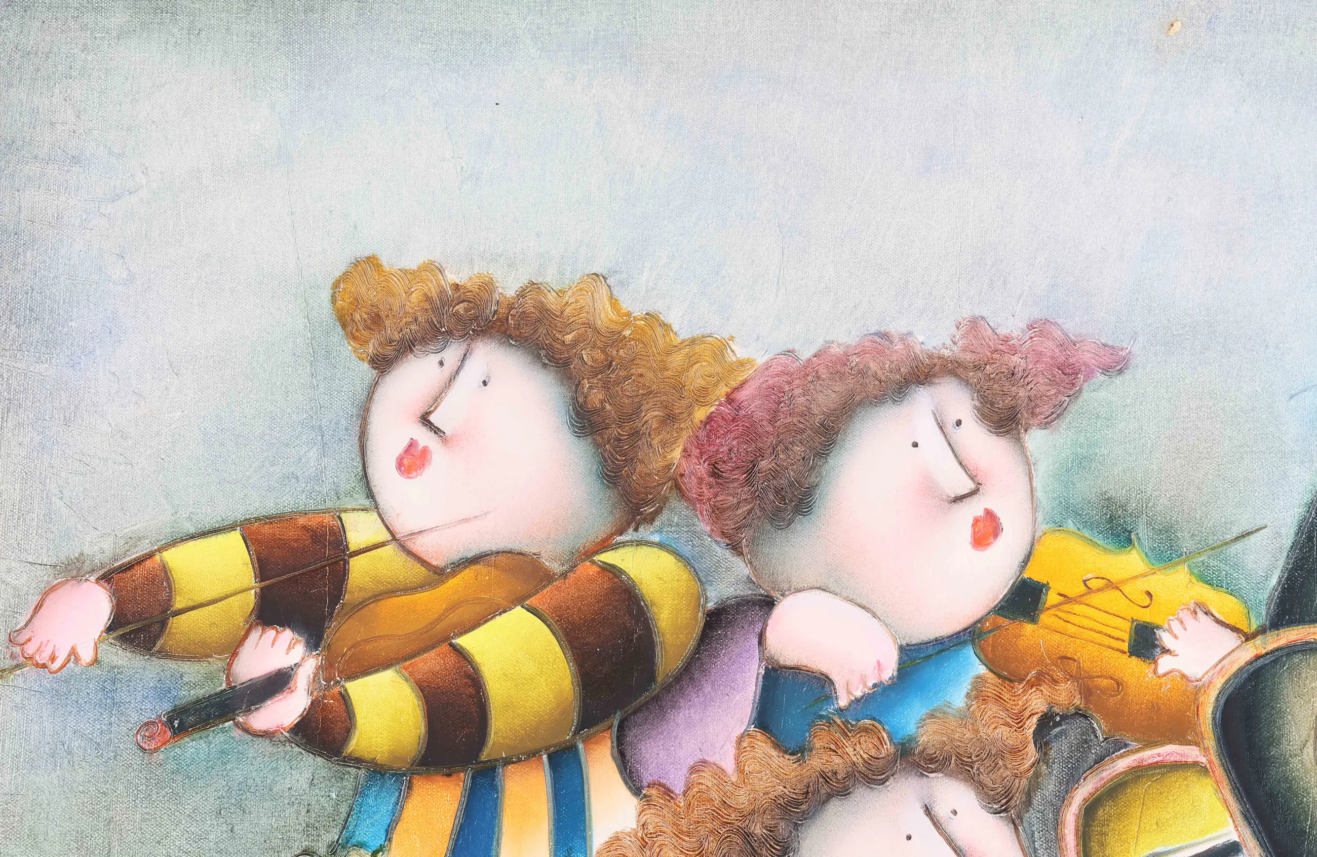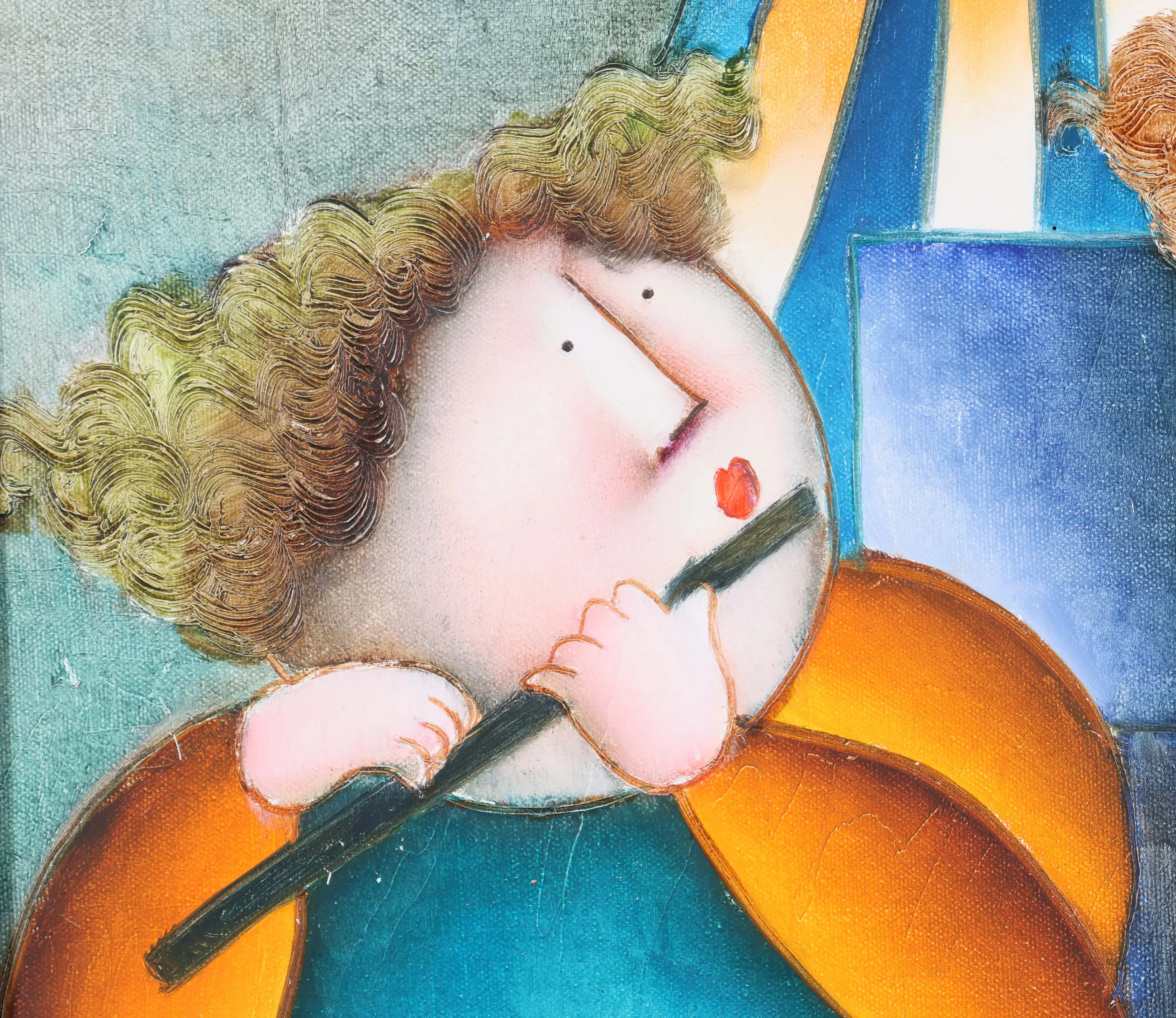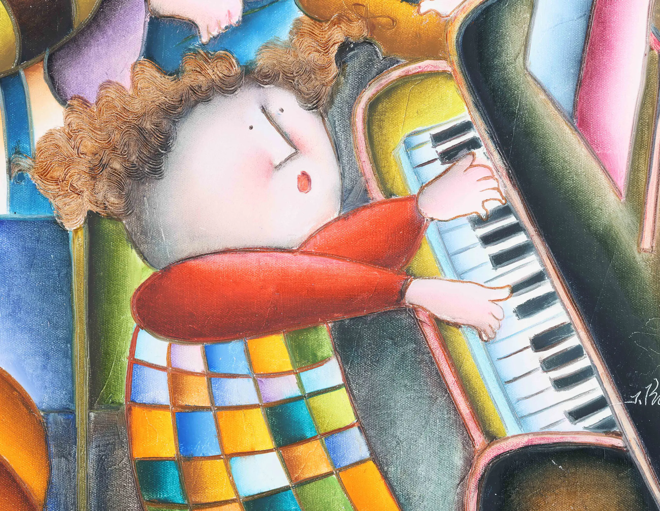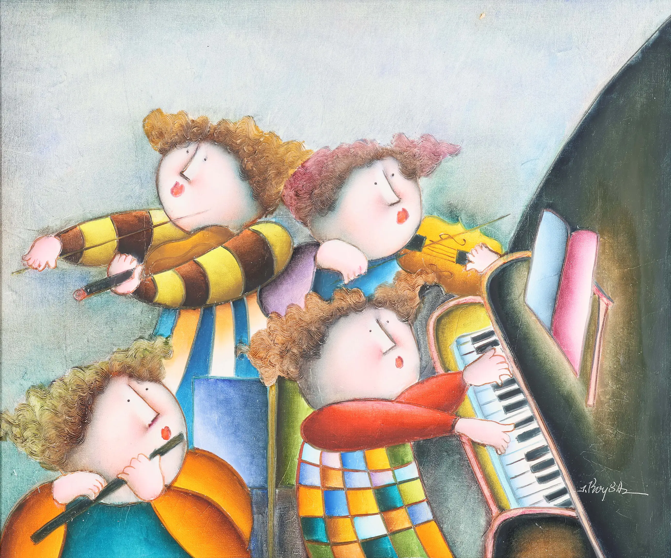 Kunstenaar Joyce Roybal, soms vermeld als J. of James, verbeeldt de naïeve puurheid van de kindertijd met zijn speelse voorstellingen van kinderen die muziekinstrumenten bespelen of aan sport doen. Zijn karakterstudies, vaak “Puffy People” genoemd, doen denken aan het werk van de Boliviaanse kunstenares Graciela Rodo Boulanger, die Roybal mogelijk inspireerde toen hij achttien was.