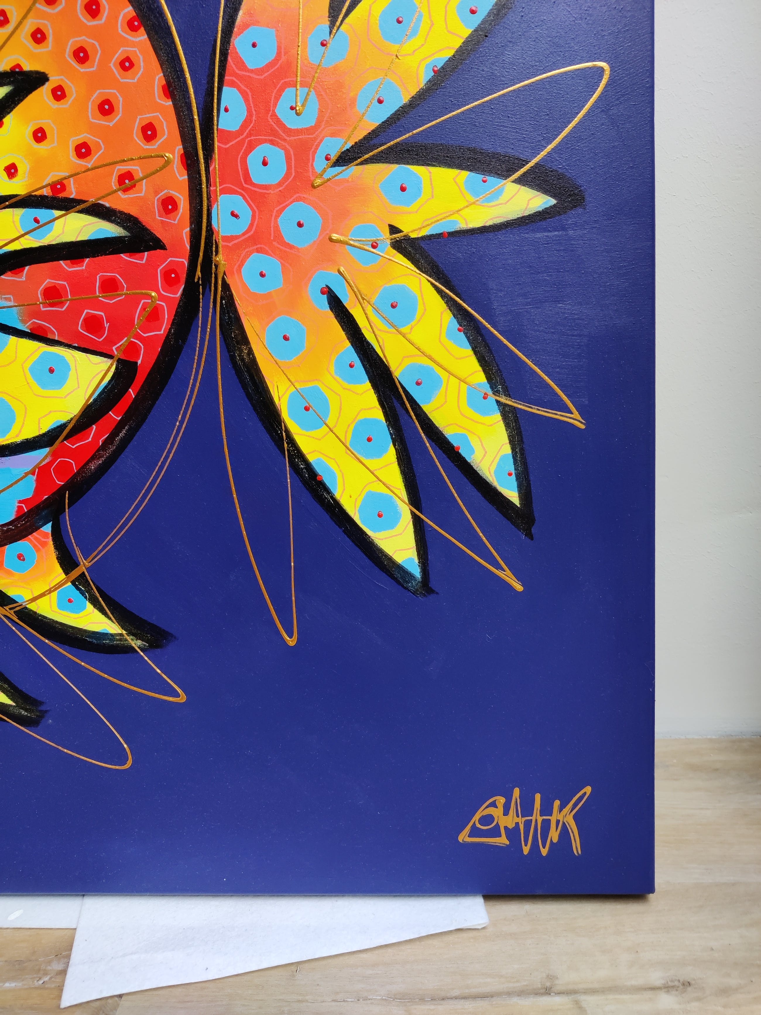 Punaises? Moi? is een kleurrijk en krachtig werk van Joyce van Oorschot. Van haar website (www.joycevanoorschot.nl):