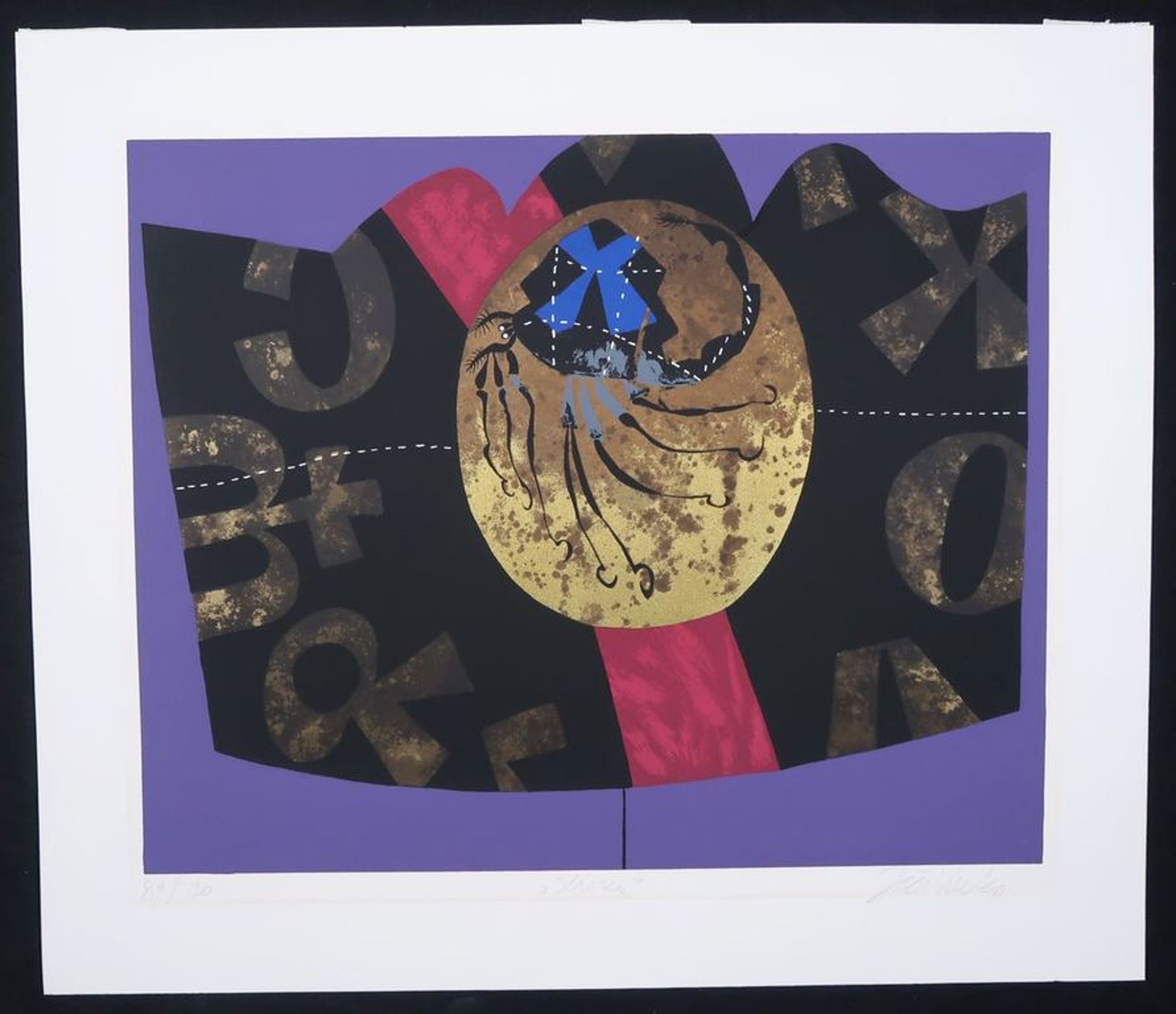 Materiaal: Gemengde technieken, o.a. zeefdruk op papier