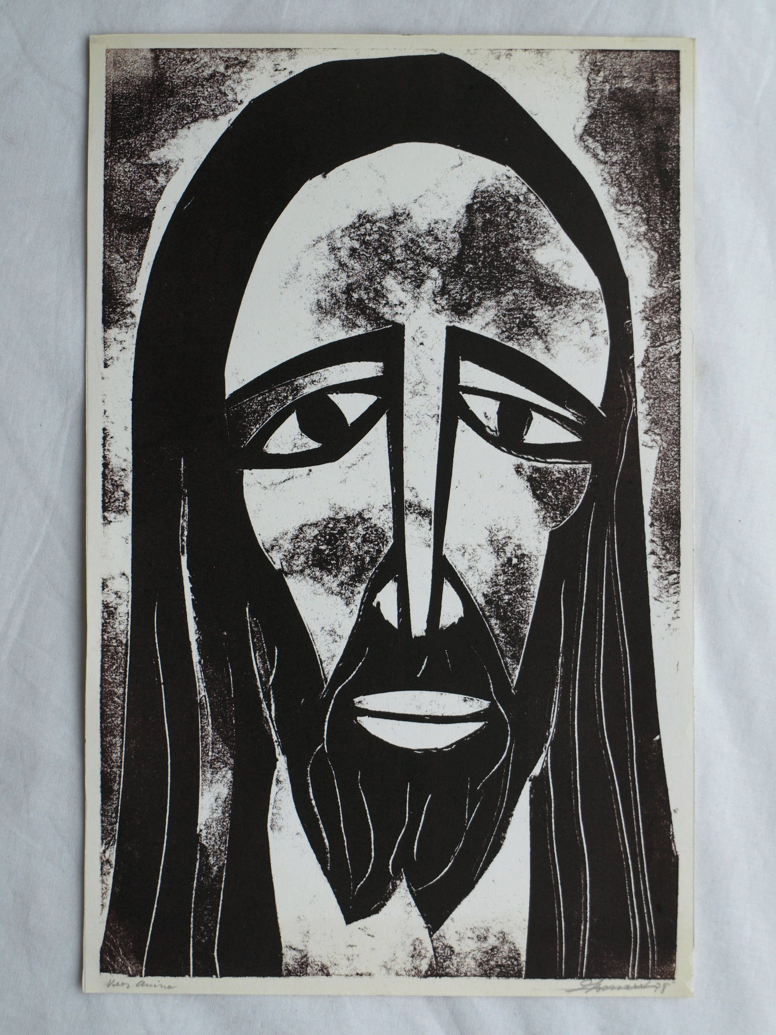 De originele kartonsnede + een afdruk van deze kartonsnede uit 1978 van de Belgische kunstenaar Jozef Bossaert (1915-2006).