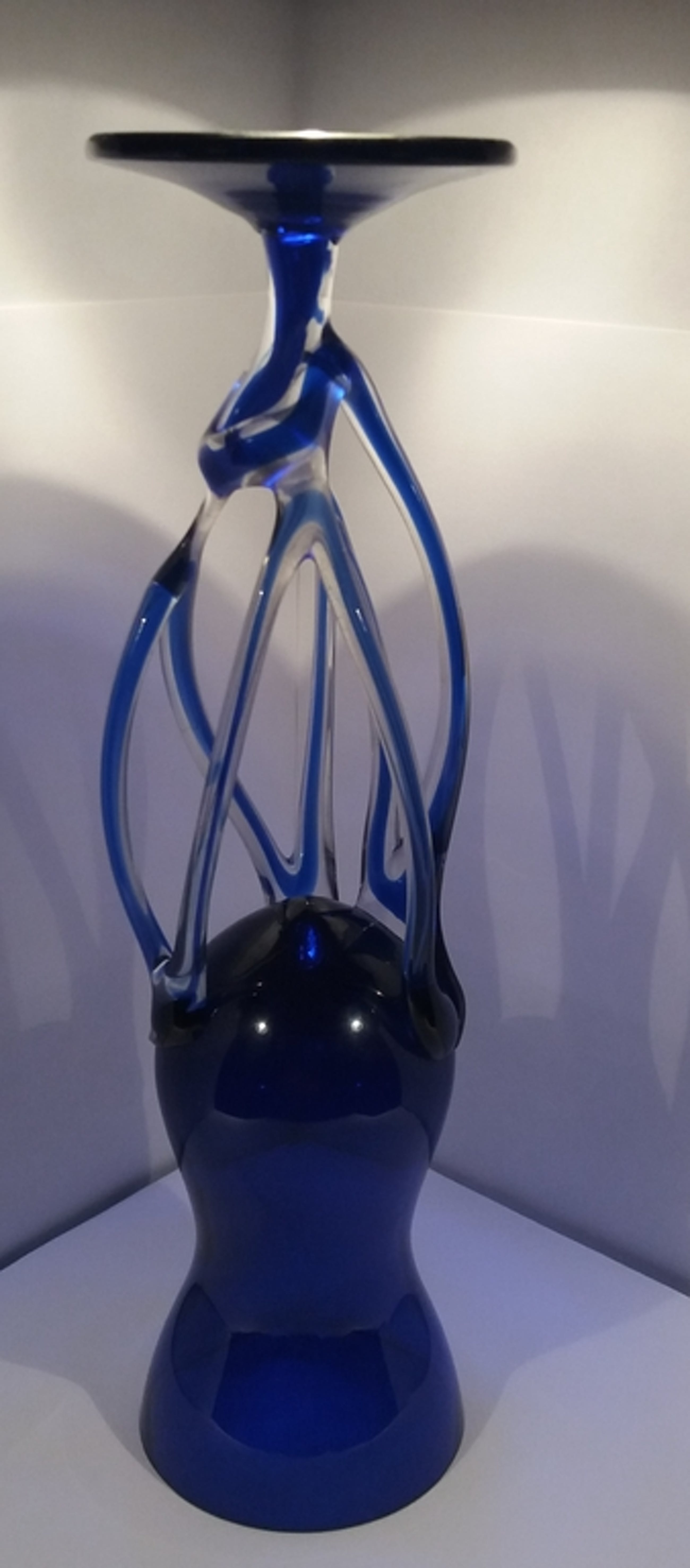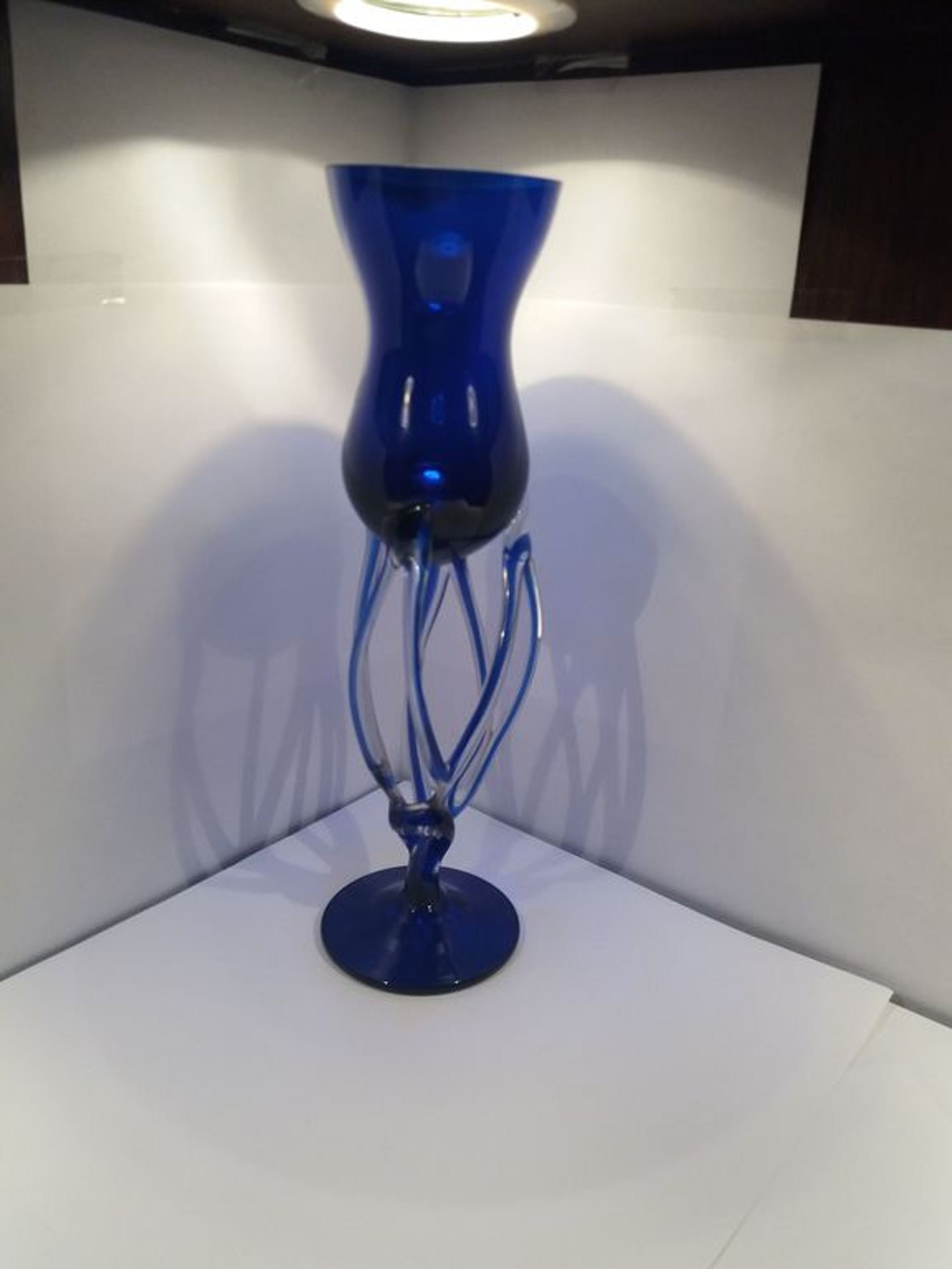 Vintage kunst glas Kandelaar Jozefina Krosno Octopus Vaas Kobalt blauw