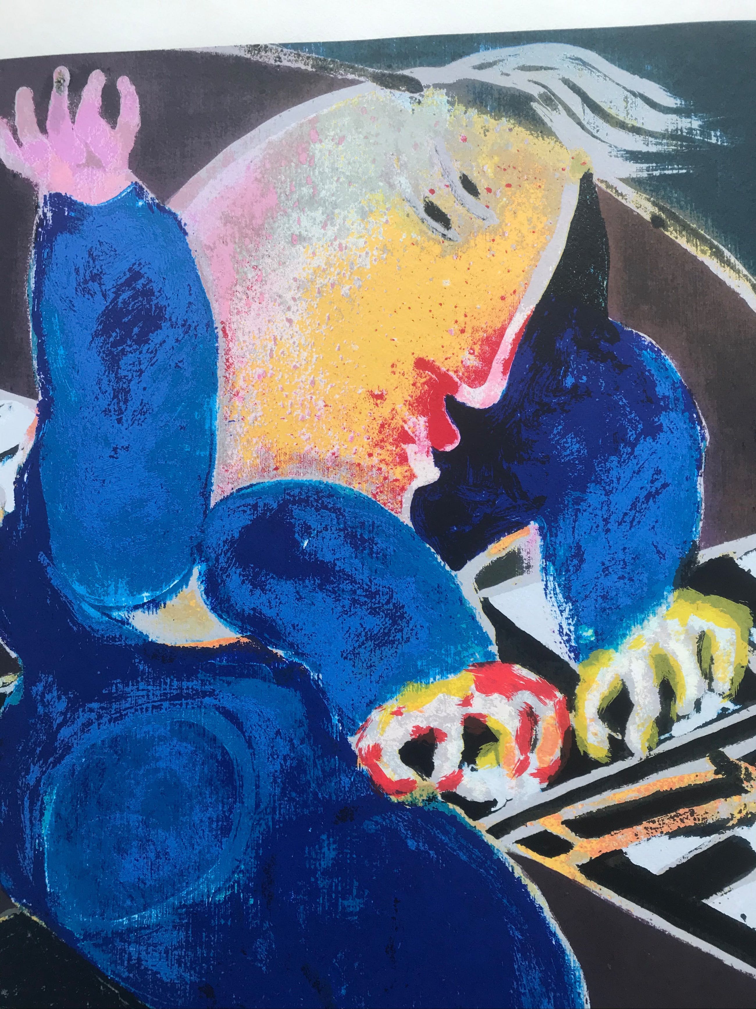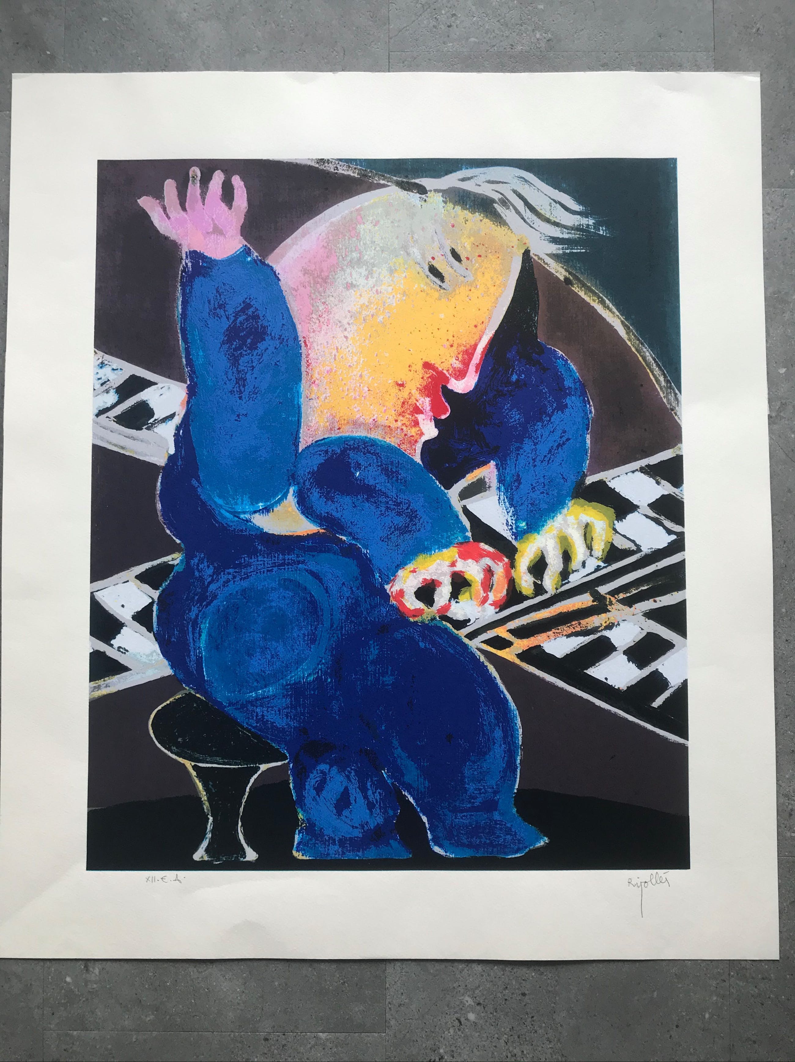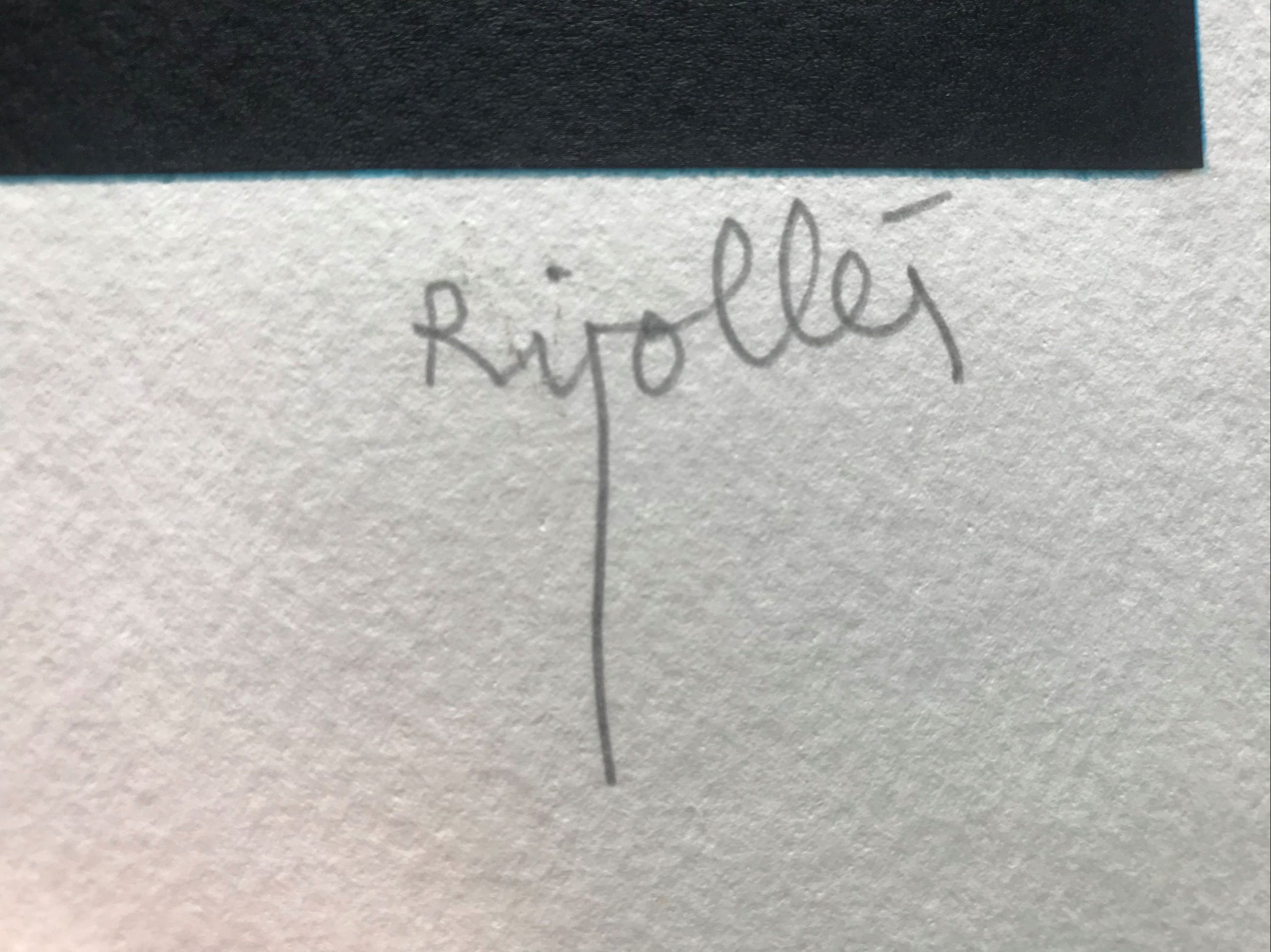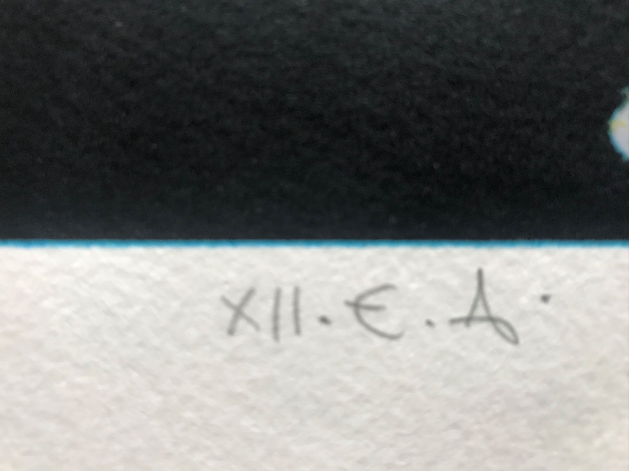 Lichte kreuk in witte rand. Geen probleem bij het evt inlijsten van de zeefdruk