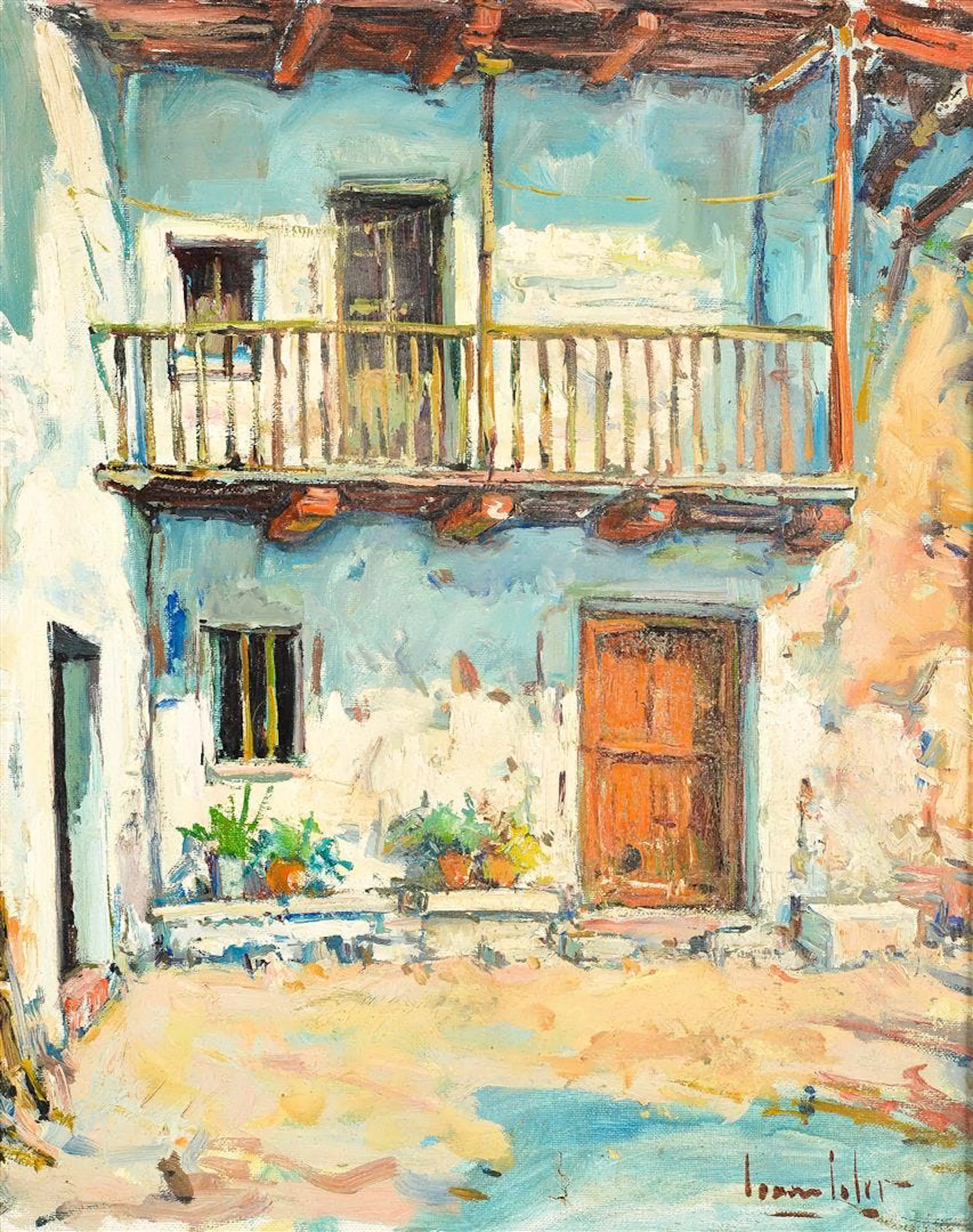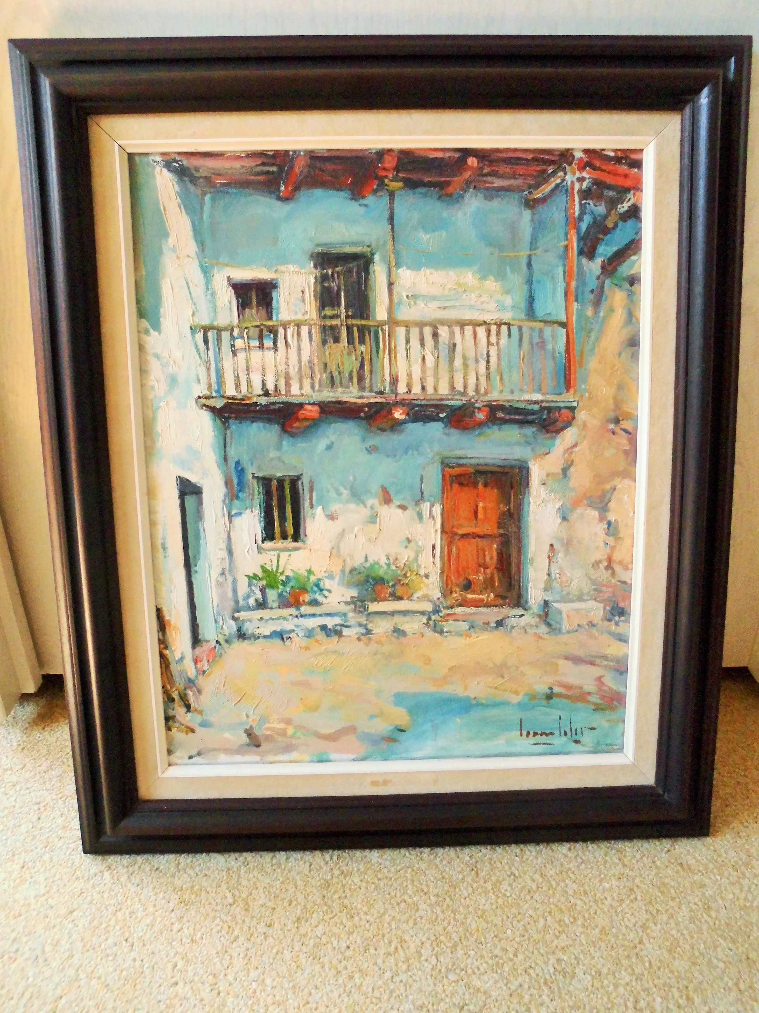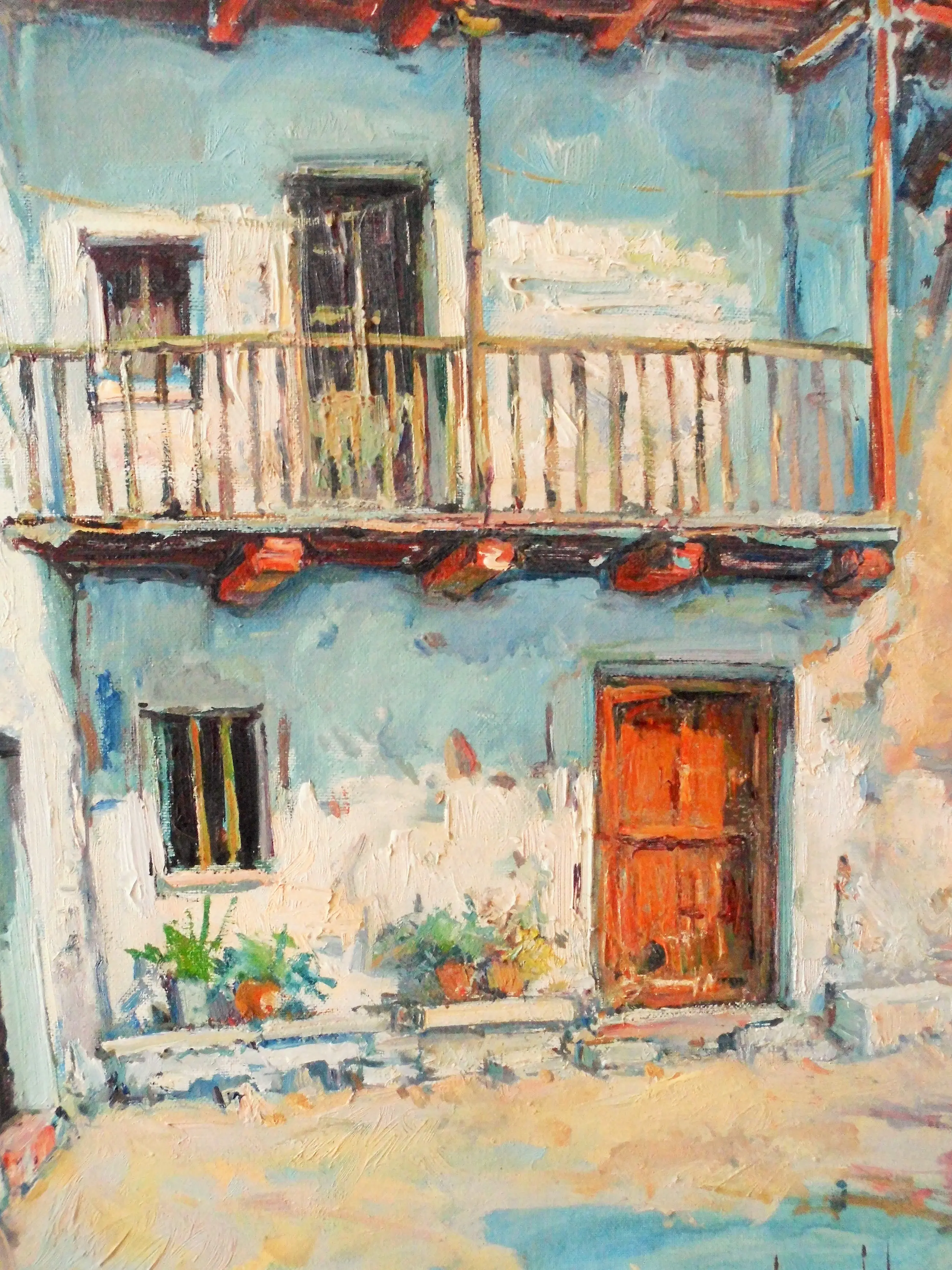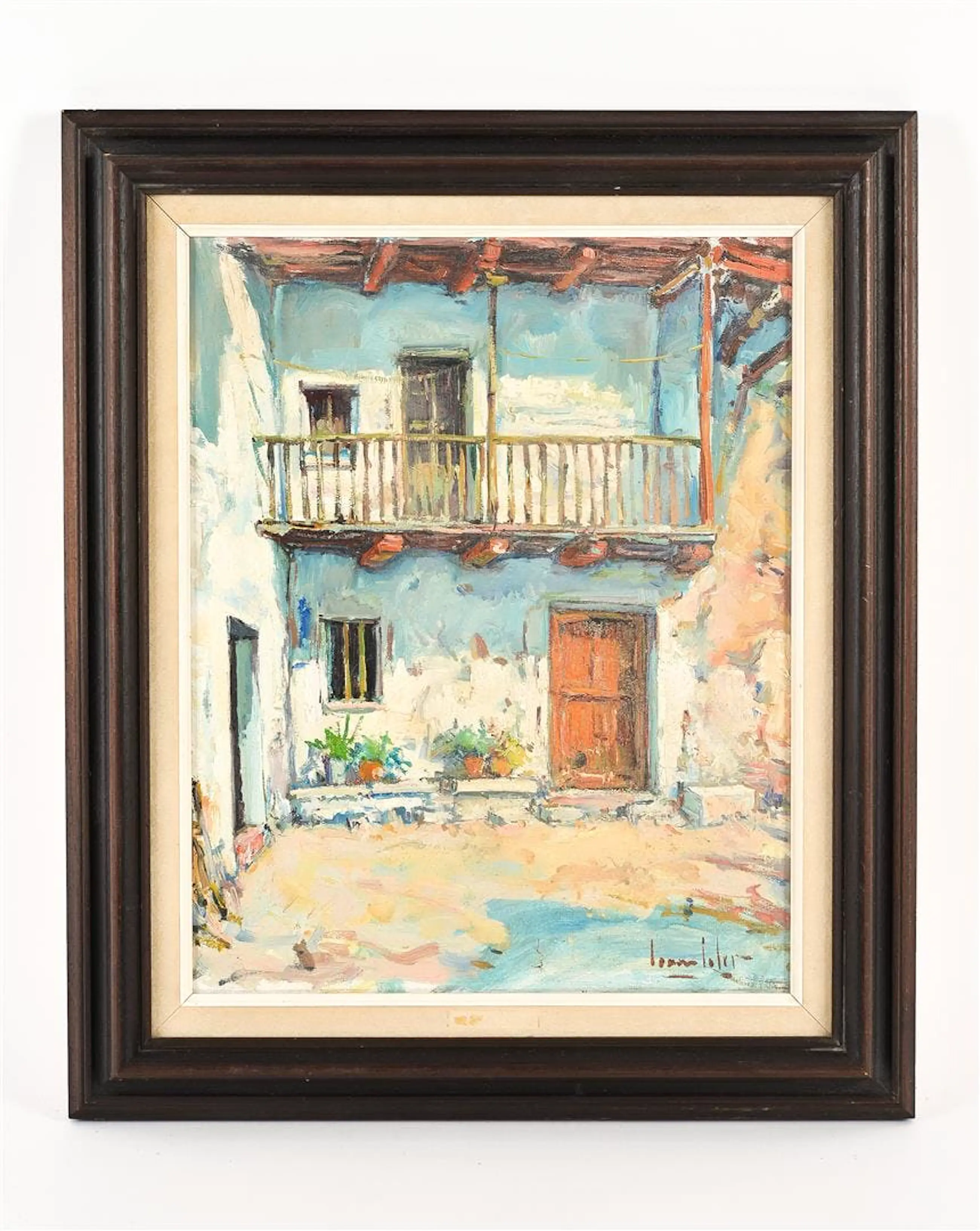 Goed olieverfschilderij "Binnenplaats te Frankrijk"