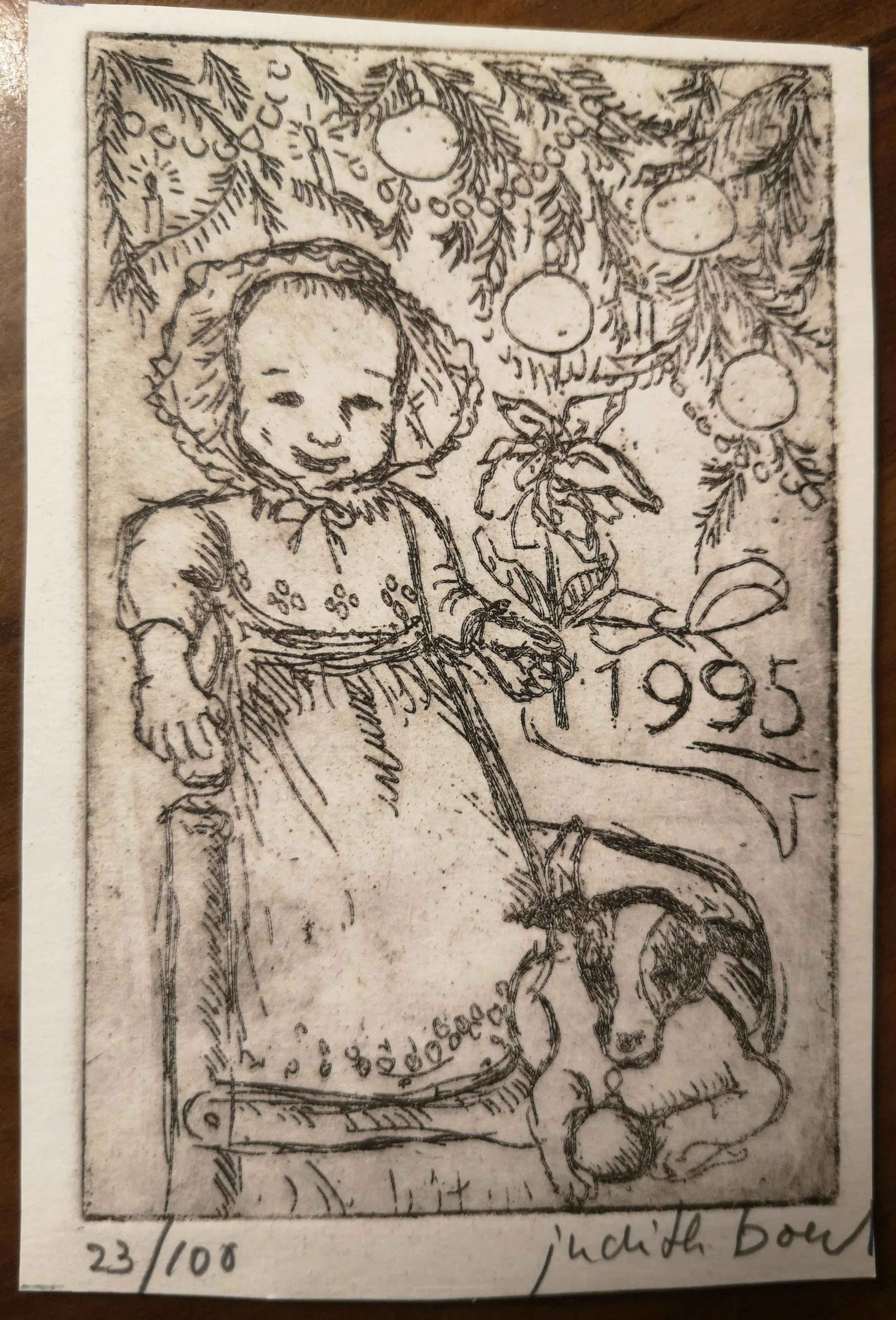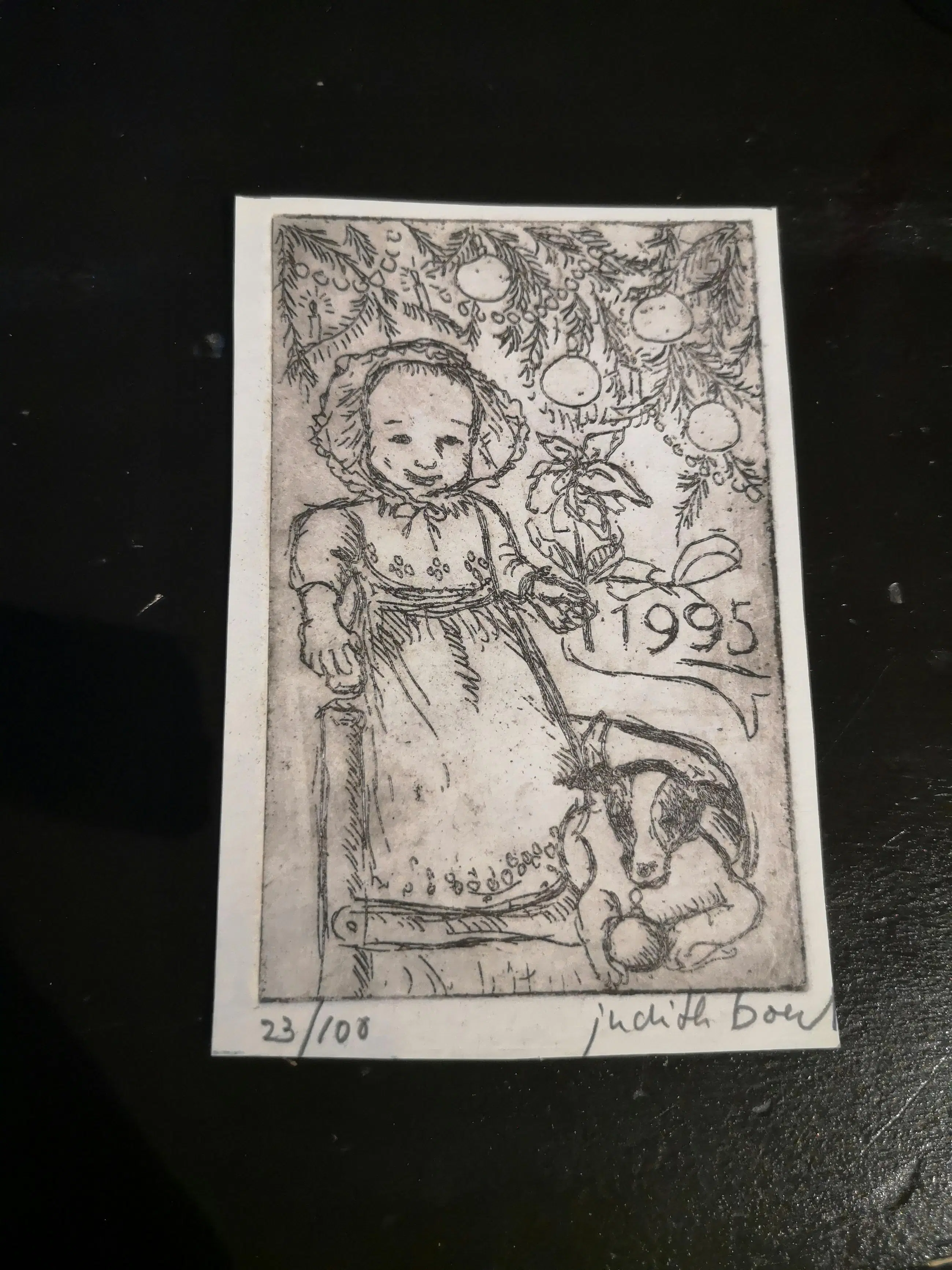 Judith boer heeft haar opleiding aan de academie voor beeldende kunst met vlag en wimpel gehaald en zeer veel exposities op haar naam staan. Ook is zij een veel gevraagd kunstenaar voor rijksgebouwendienst. Dit werkje is gemaakt in 1995 en kom je eigenlijk niet meer zo vaak tegen