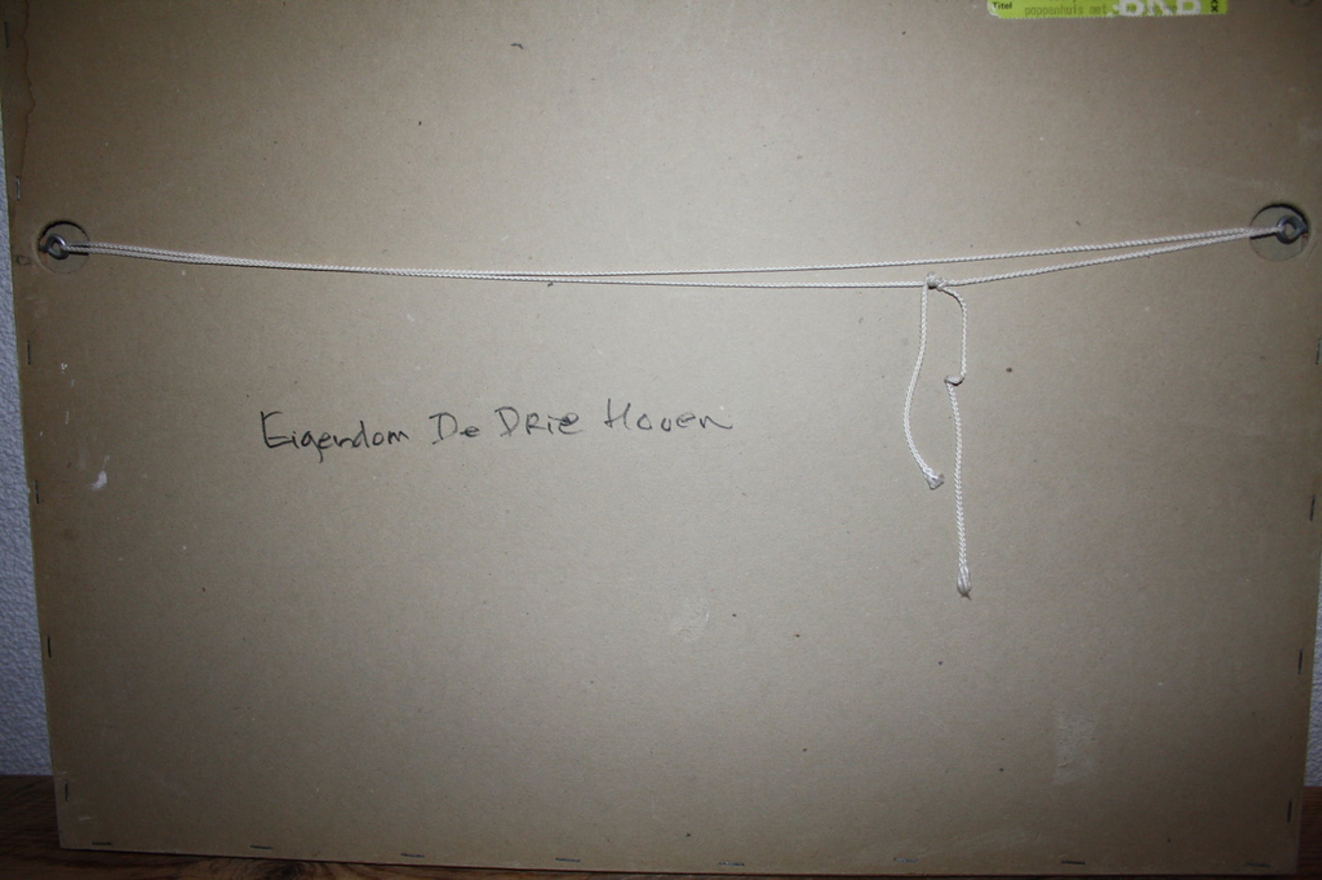 Op de achterzijde van de lijst staat geschreven; eigendom De Drie Hoven.
