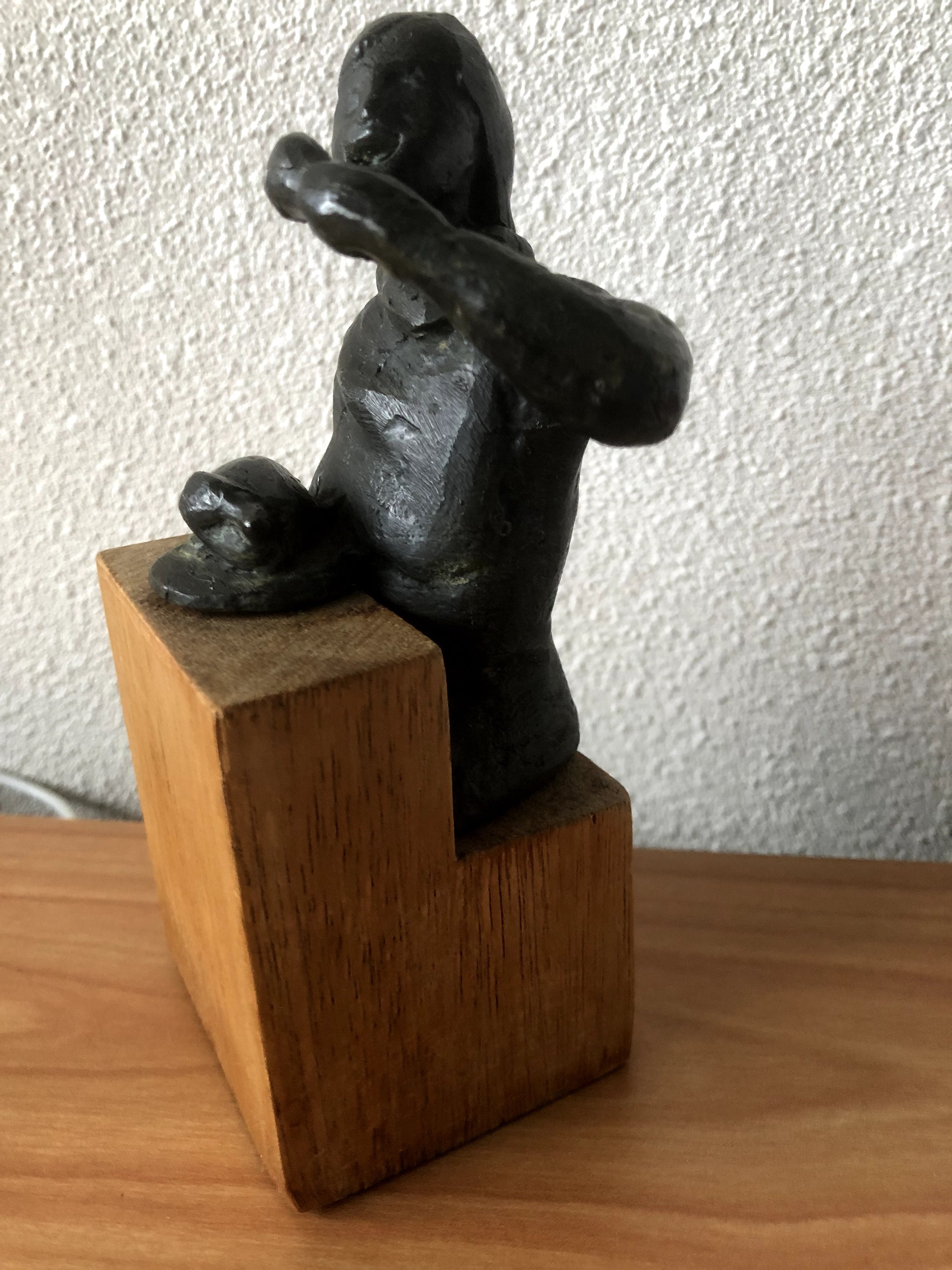 Zwaar massief brons met houten tafel met zitbank.