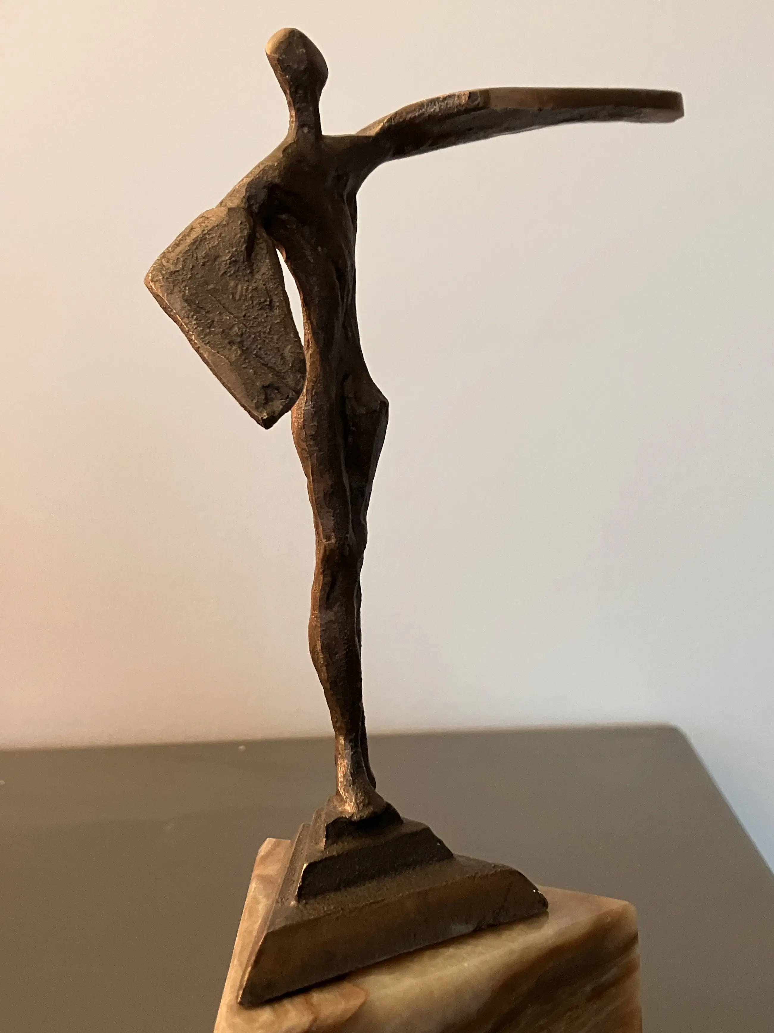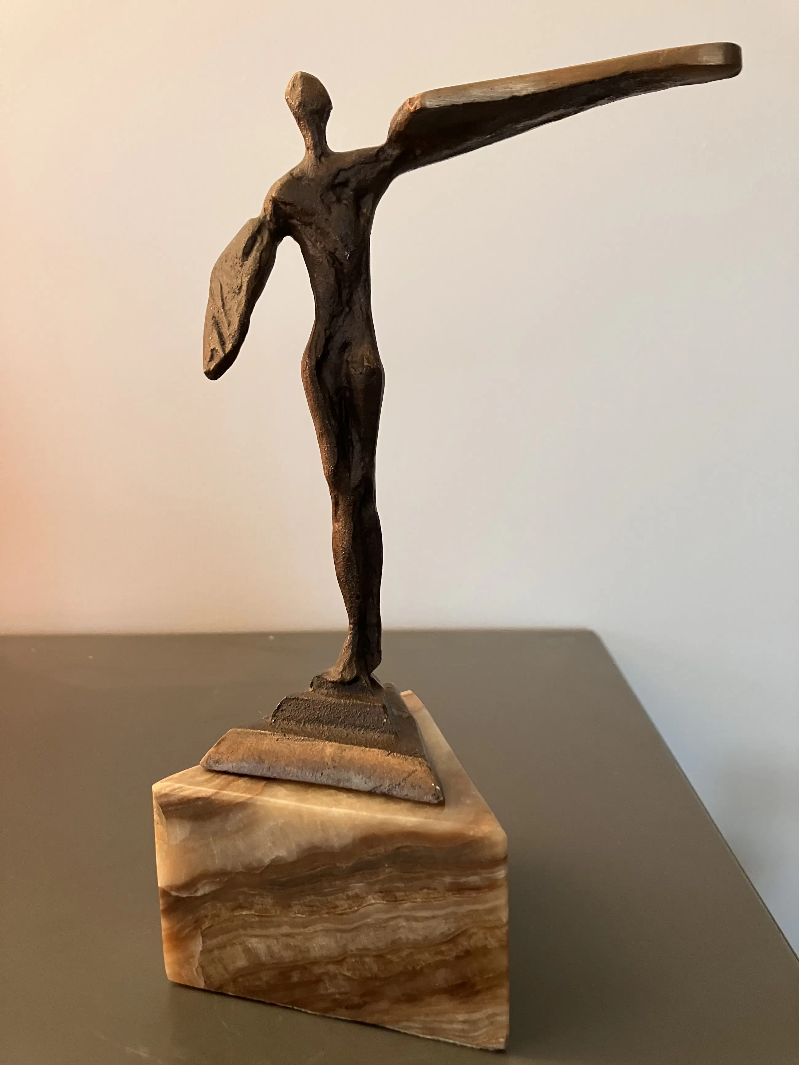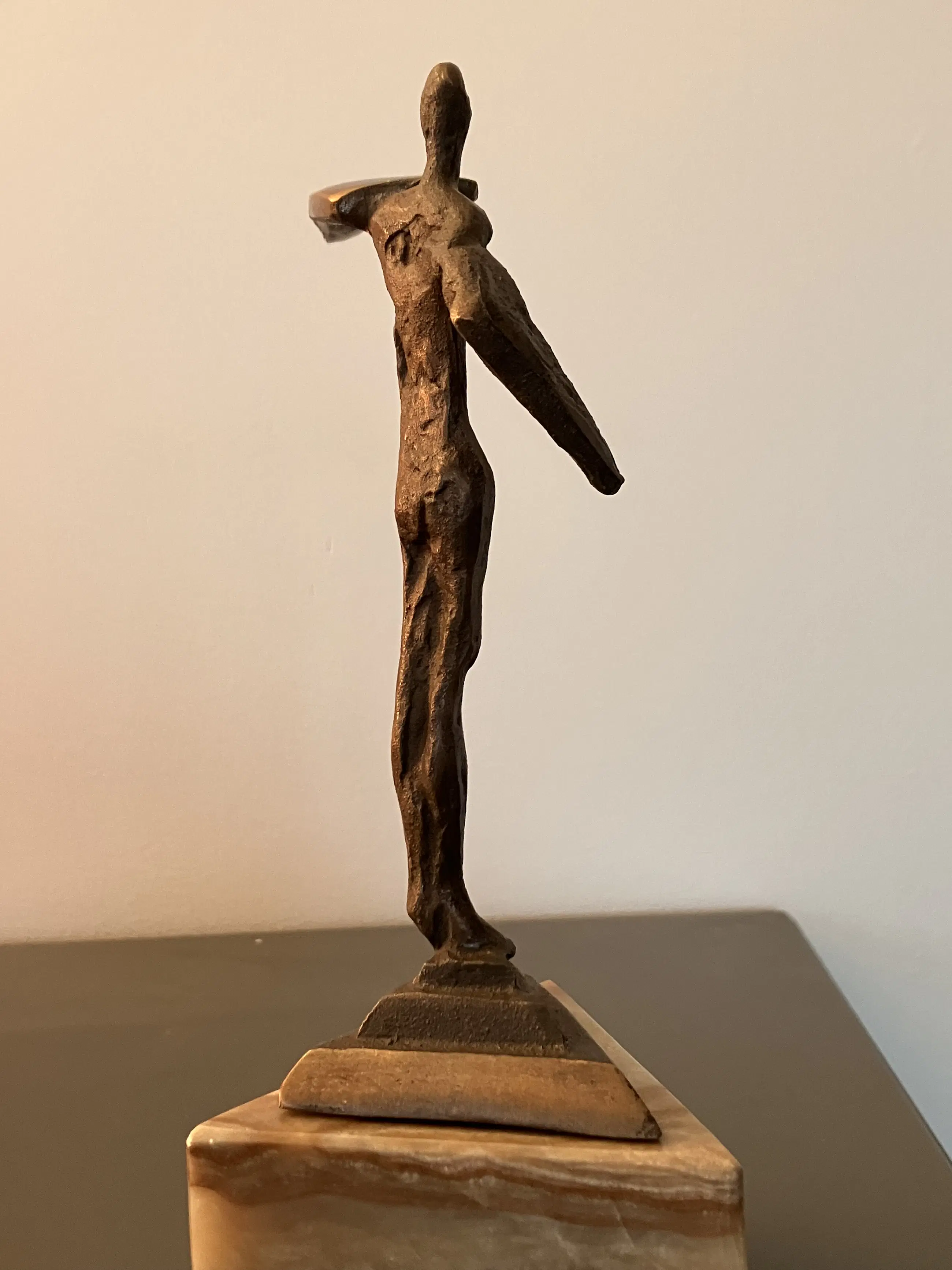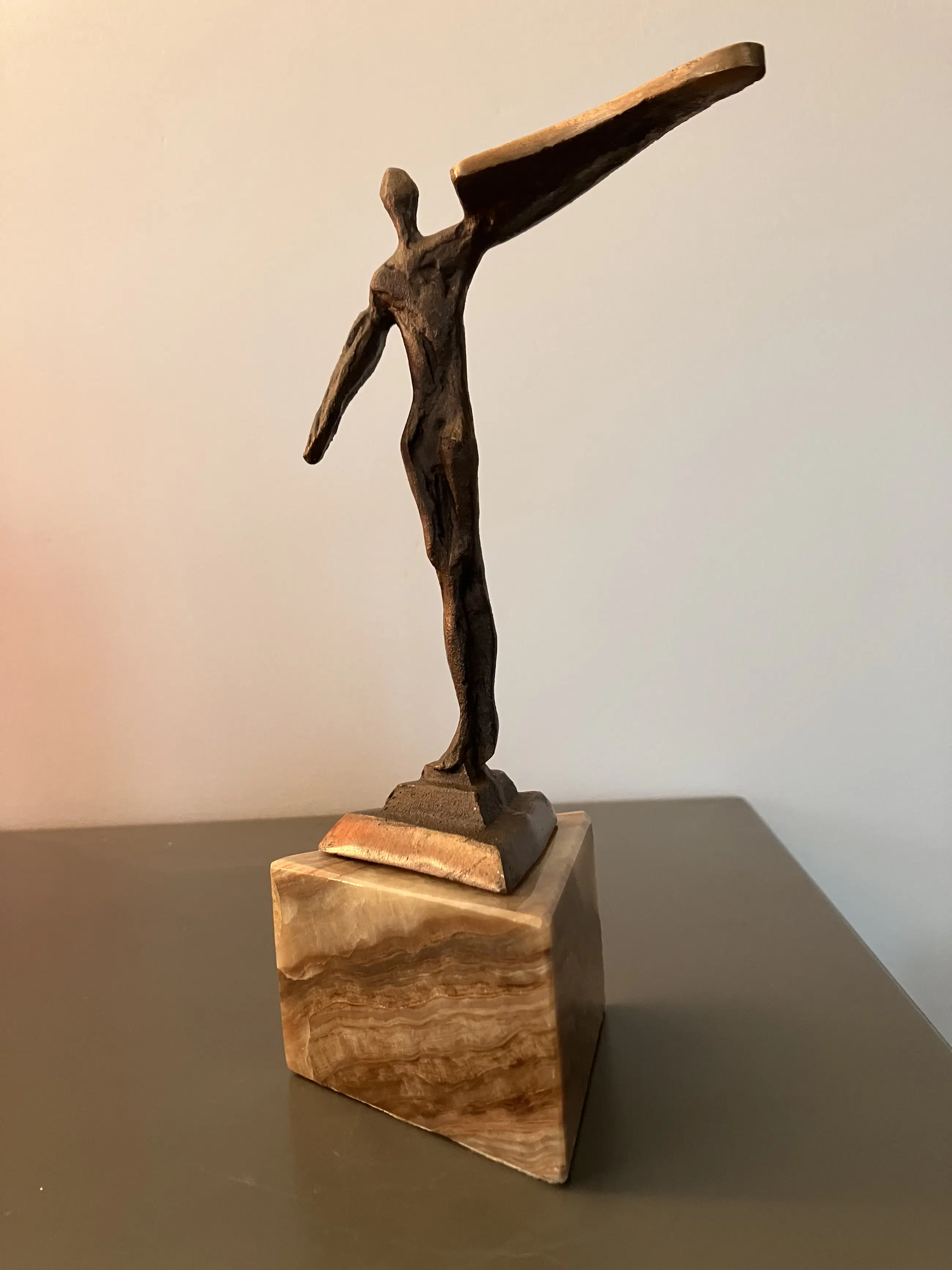 Zeer fraai vormgegeven sculptuur van een engelbewaarder die over ons zal waken wanneer dat nodig is, een prachtig symbolisch beeld Het beeld staat los op onyx sokkel