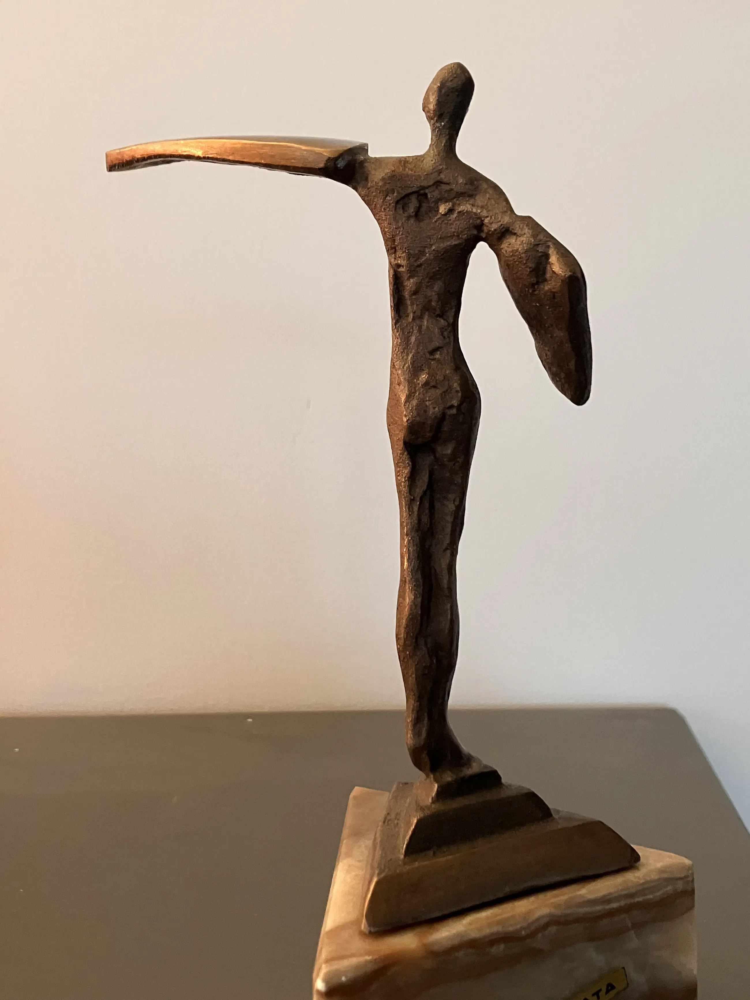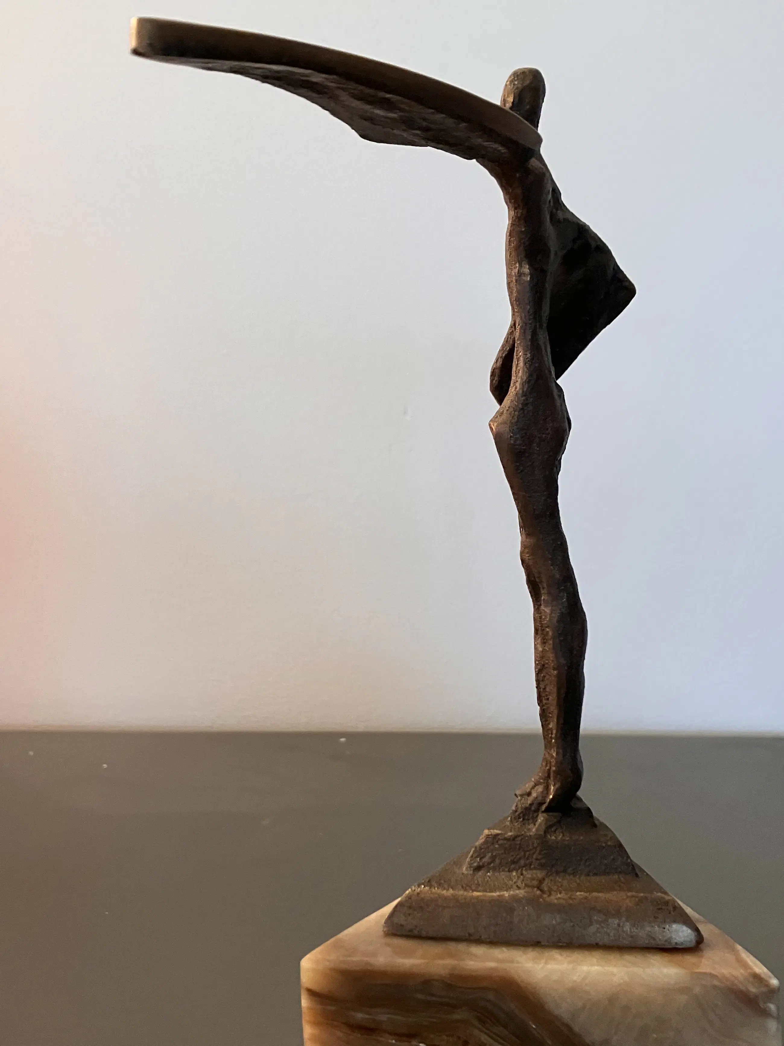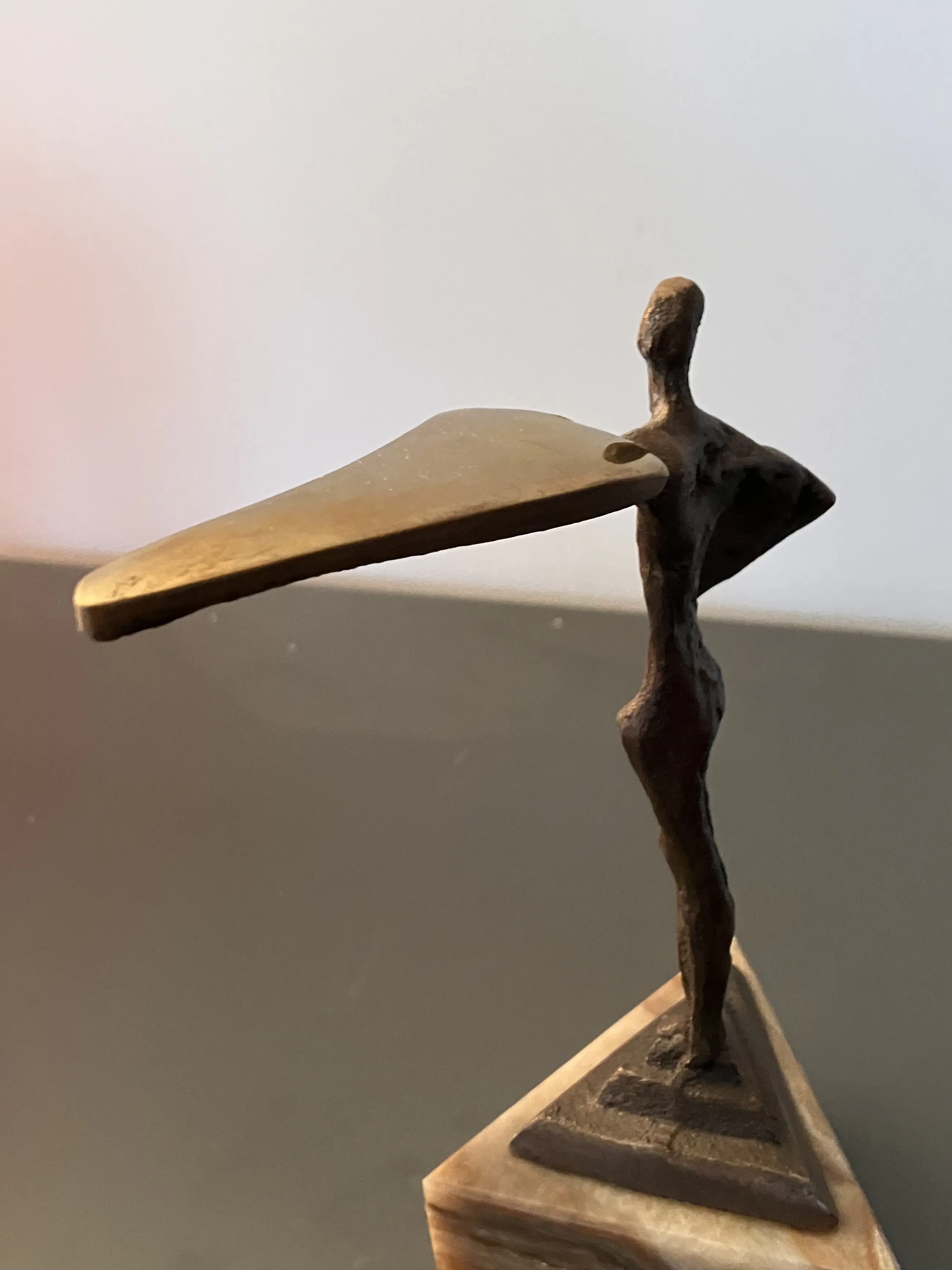 Zeer fraai vormgegeven sculptuur van een engelbewaarder die over ons zal waken wanneer dat nodig is, een prachtig symbolisch beeld Het beeld staat los op onyx sokkel