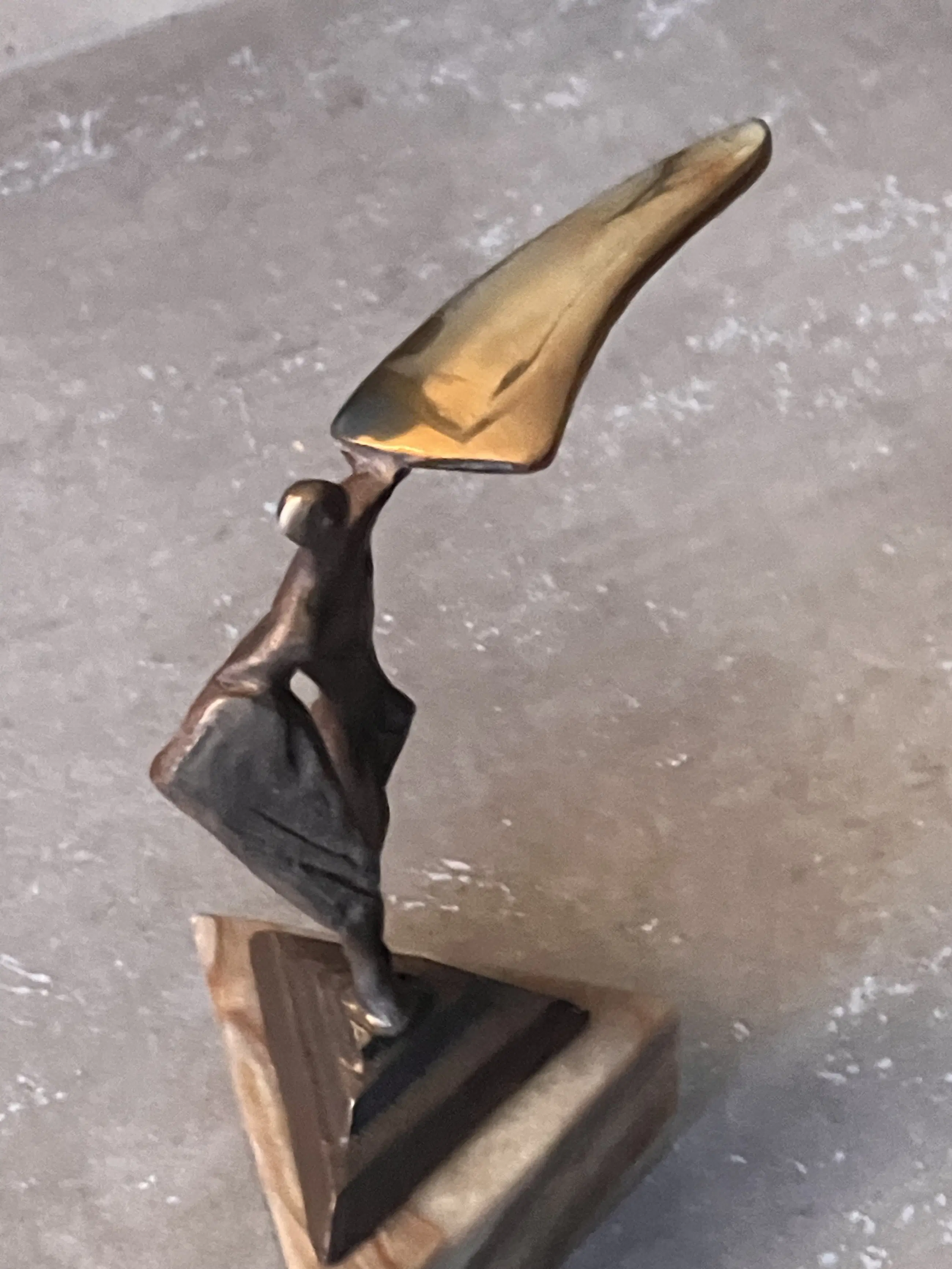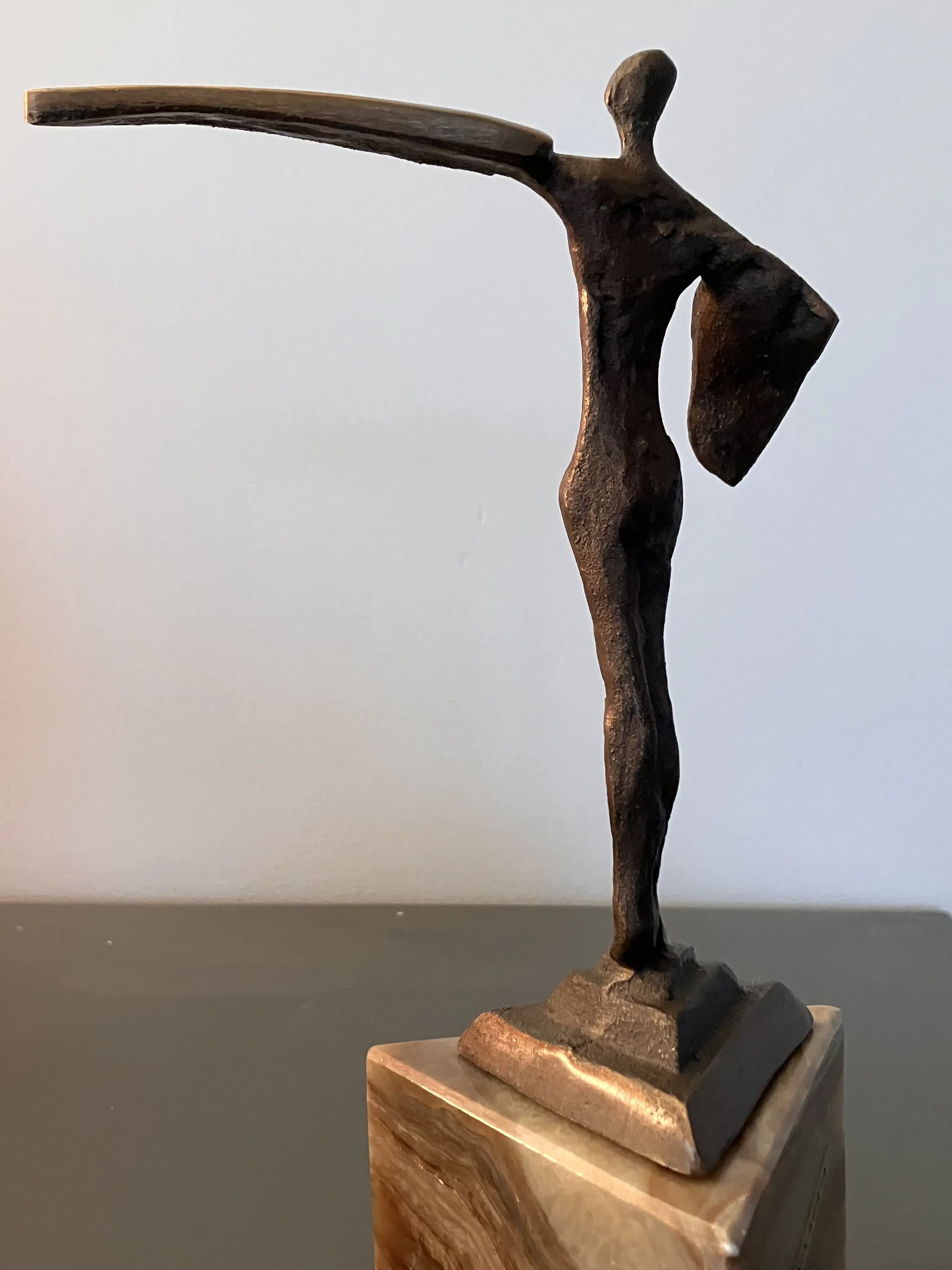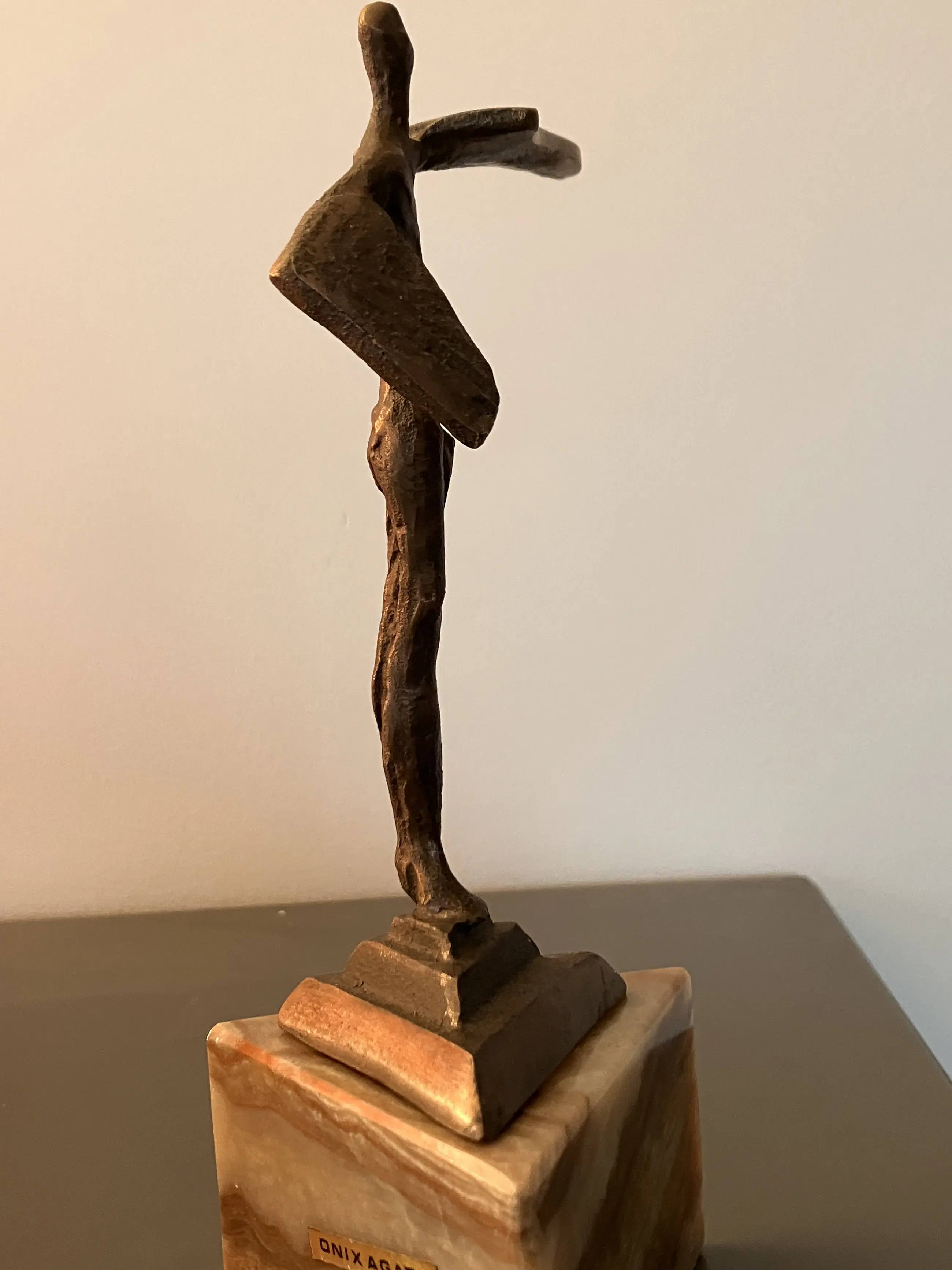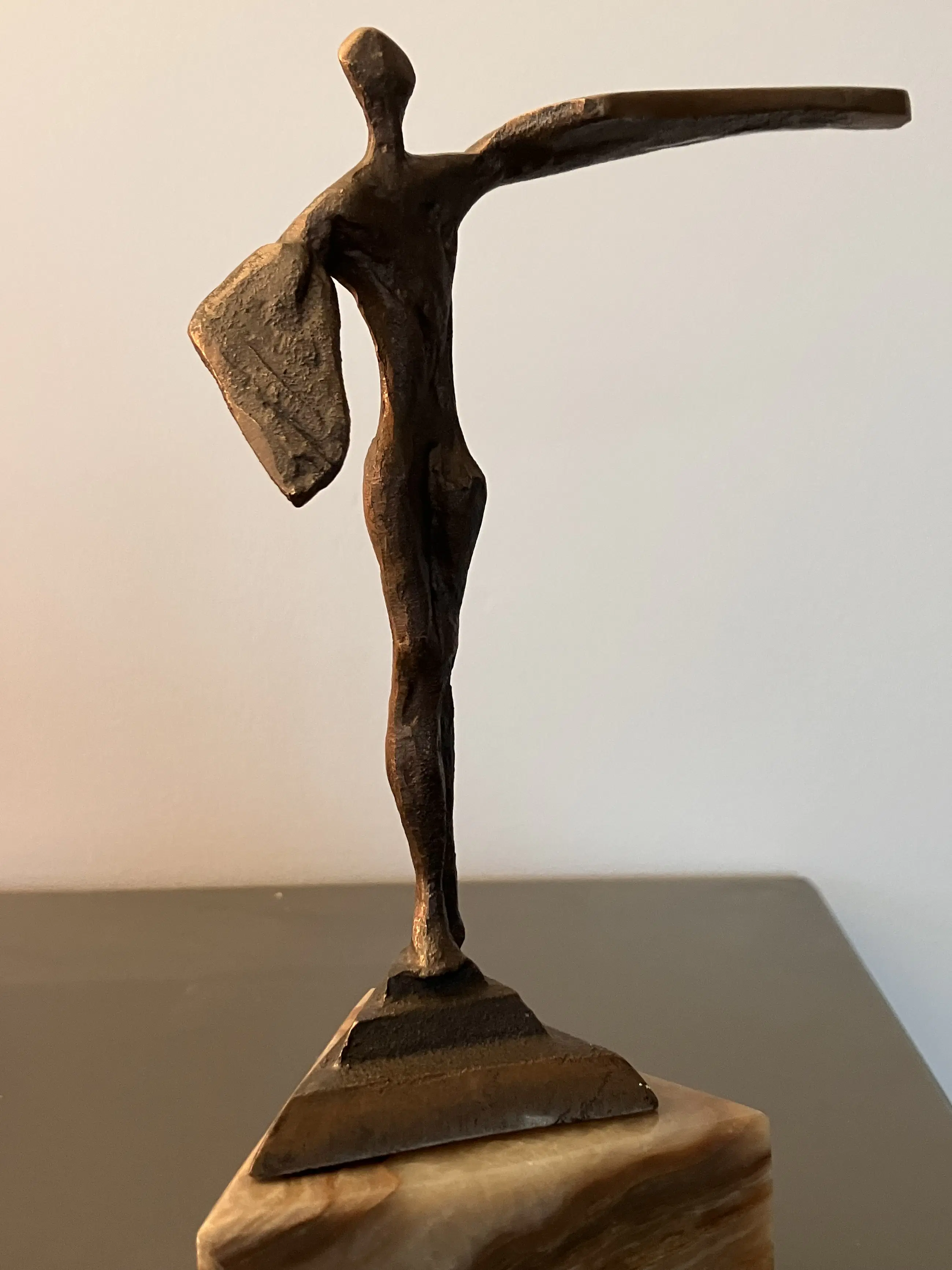 Zeer fraai vormgegeven sculptuur van een engelbewaarder die over ons zal waken wanneer dat nodig is, een prachtig symbolisch beeld Het beeld staat los op onyx sokkel