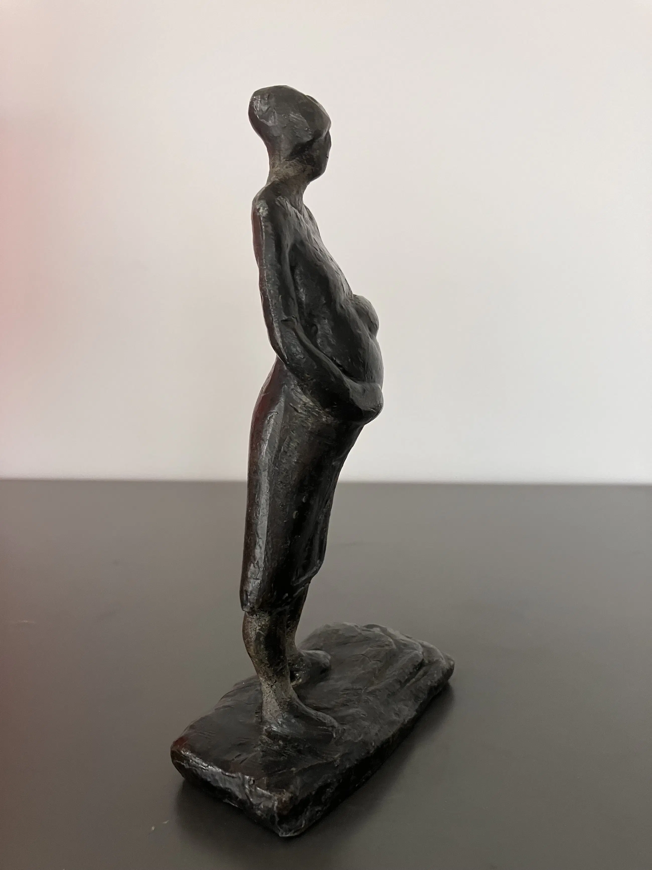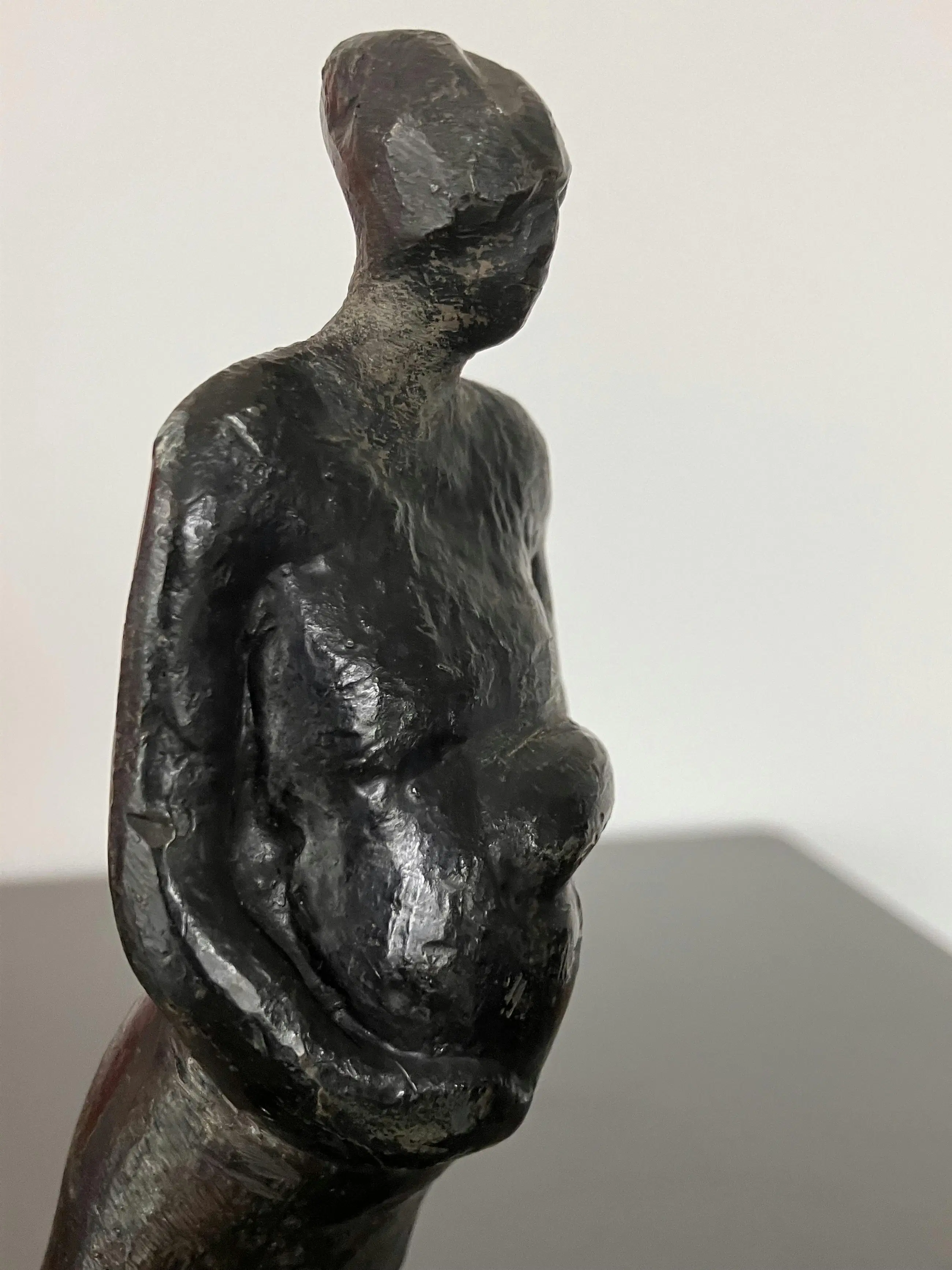 Liefdevol koestert de staande vrouw haar zwangere buik