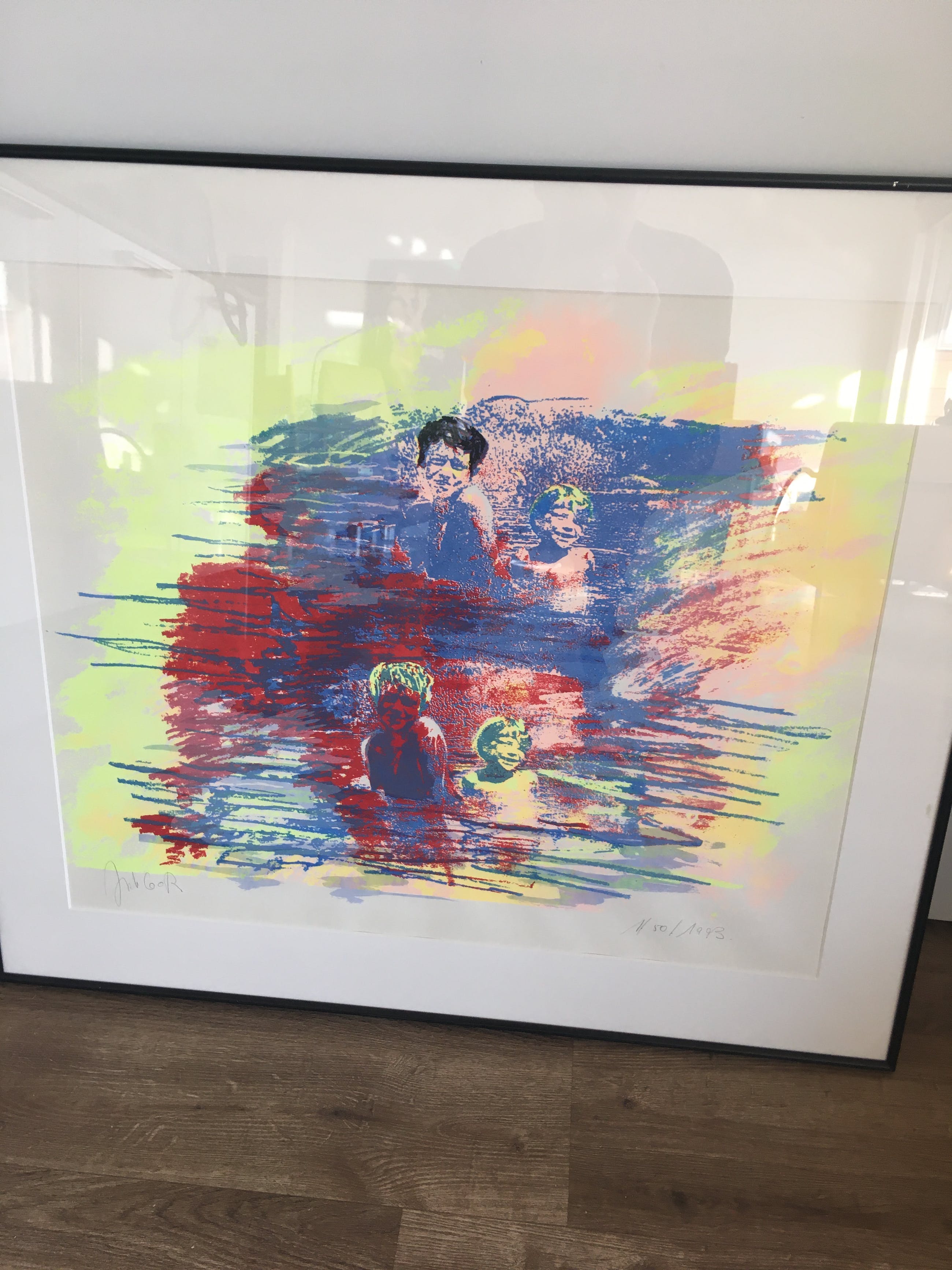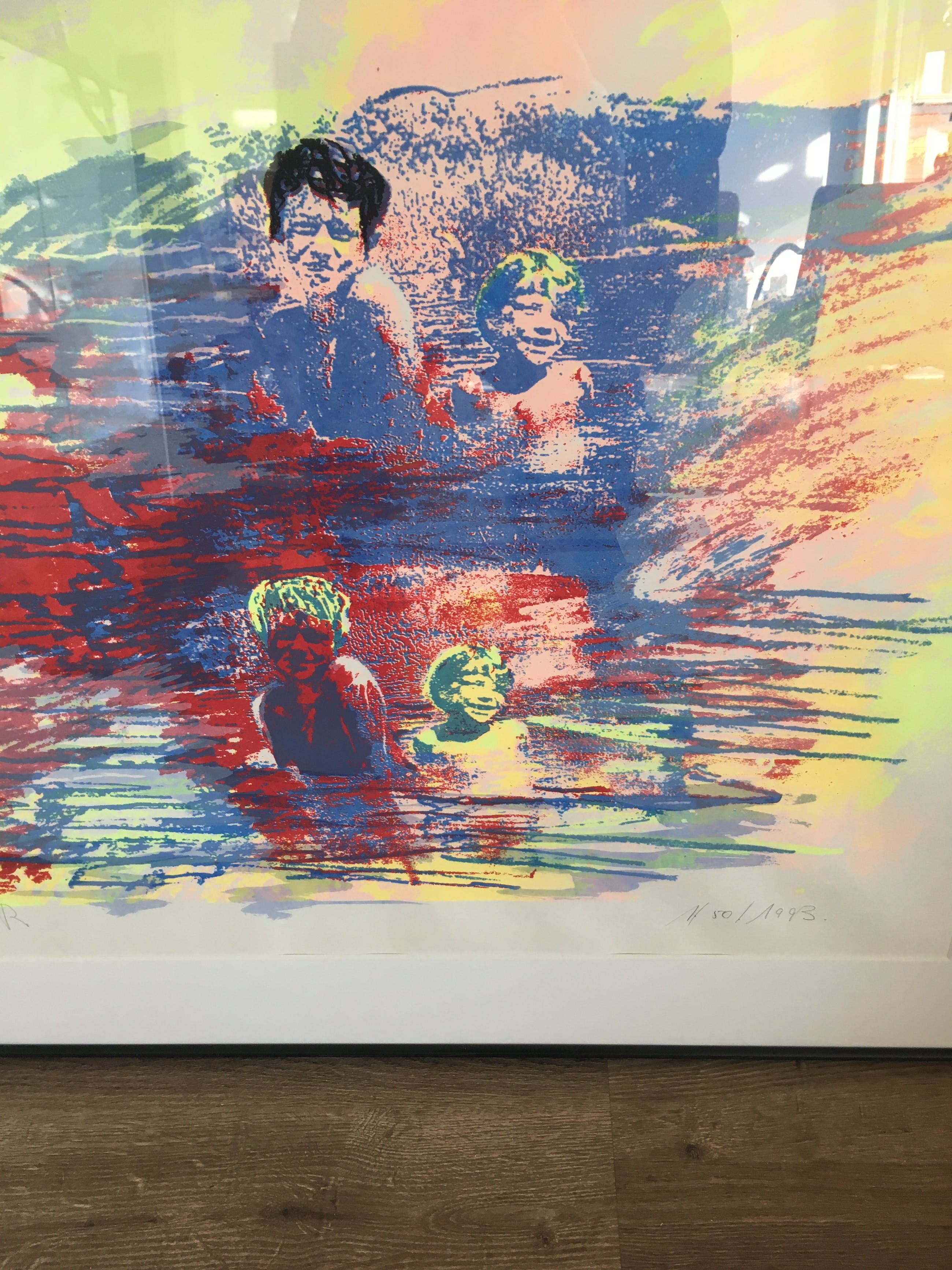 Fraaie kleurenlitho in een Barth lijst met de afbeelding van gezichten.Met l.o.Jud Gor met potlood en r.o.1/50/1993 met potlood.