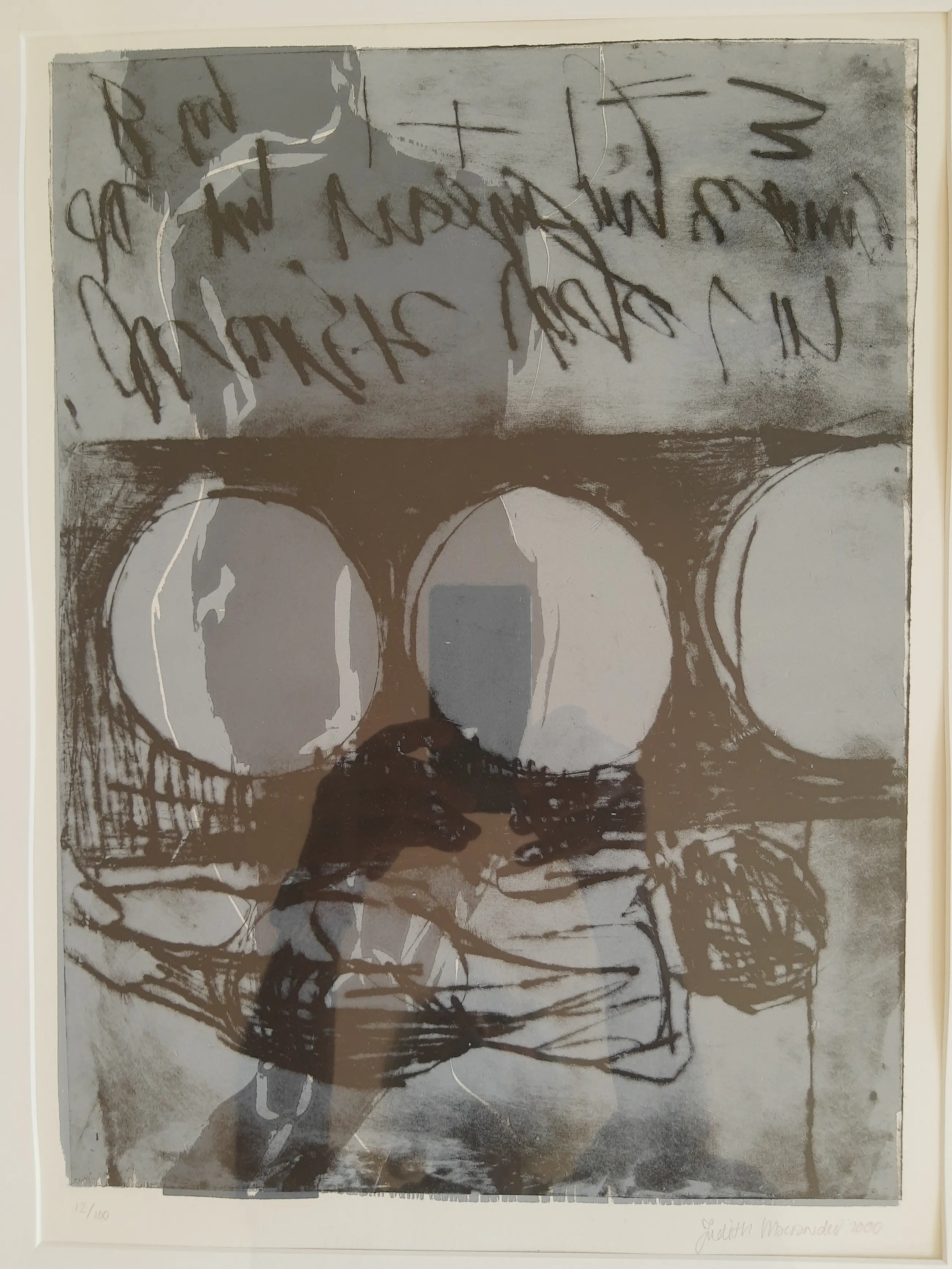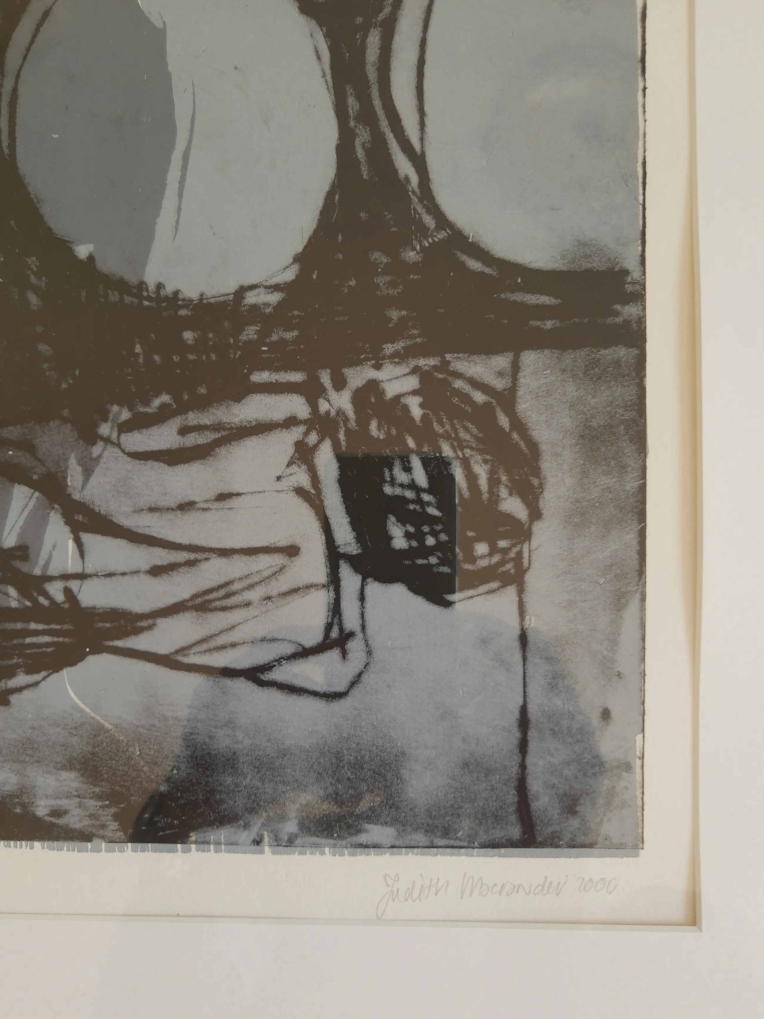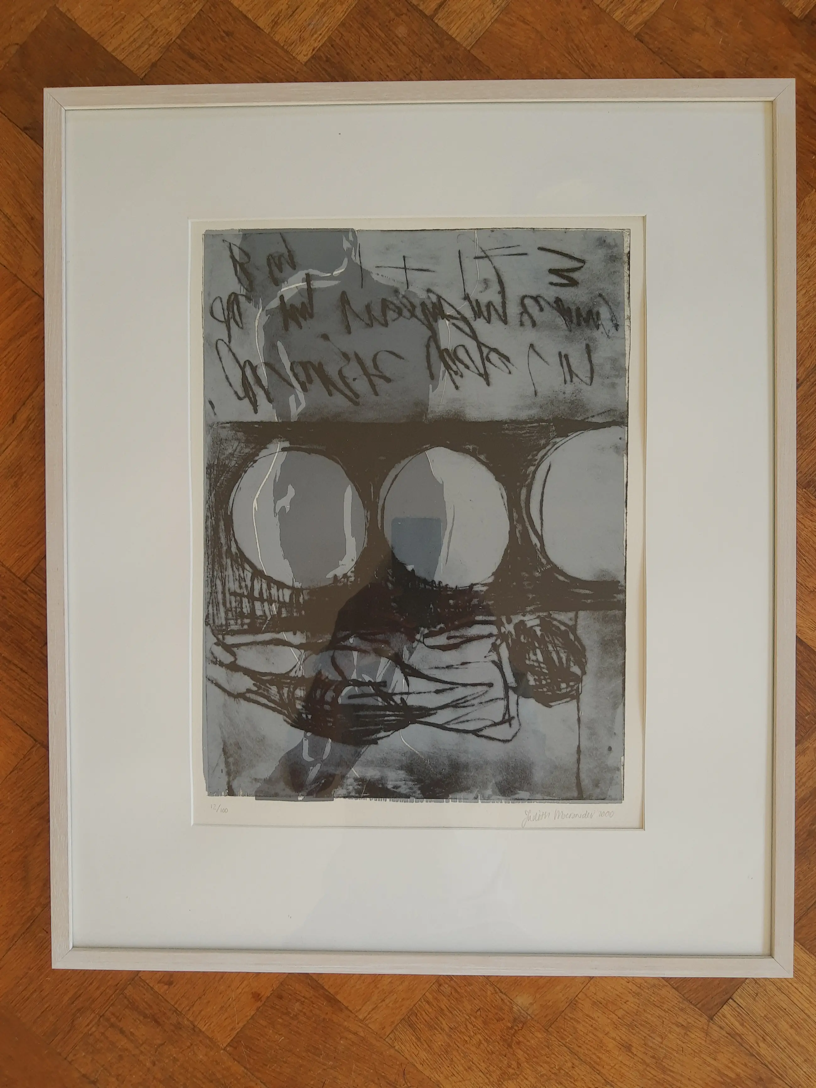 Mooie houtsnede in zwart en grijstinten, nummer 12 van 100. In houten lijst.