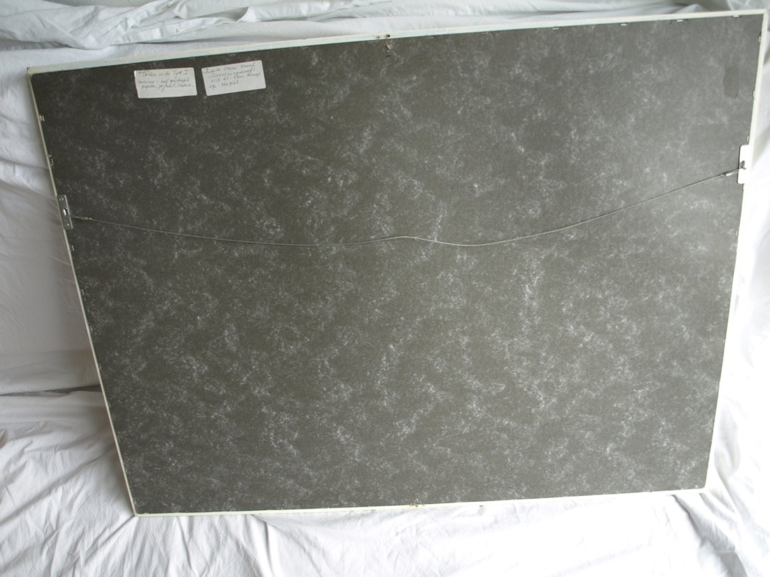 - Vanwege het grote formaat en de kwetsbaarheid van de glasplaat kan het werk alleen verzonden worden ZONDER lijst en glasplaat.