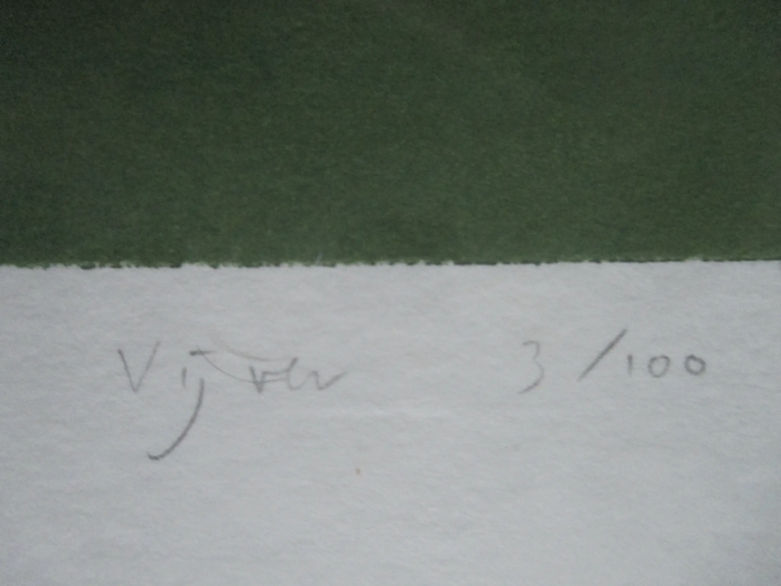 Linosnede van Judith Stolker, gesigneerd, gedateerd, genummerd en getiteld in potlood. Ingelijst achter glas in witte aluminium lijst. Verzending aangetekend 19 euro. Bij verzending is glasbreuk voor risico van de koper. Verzending alleen binnen Nederland