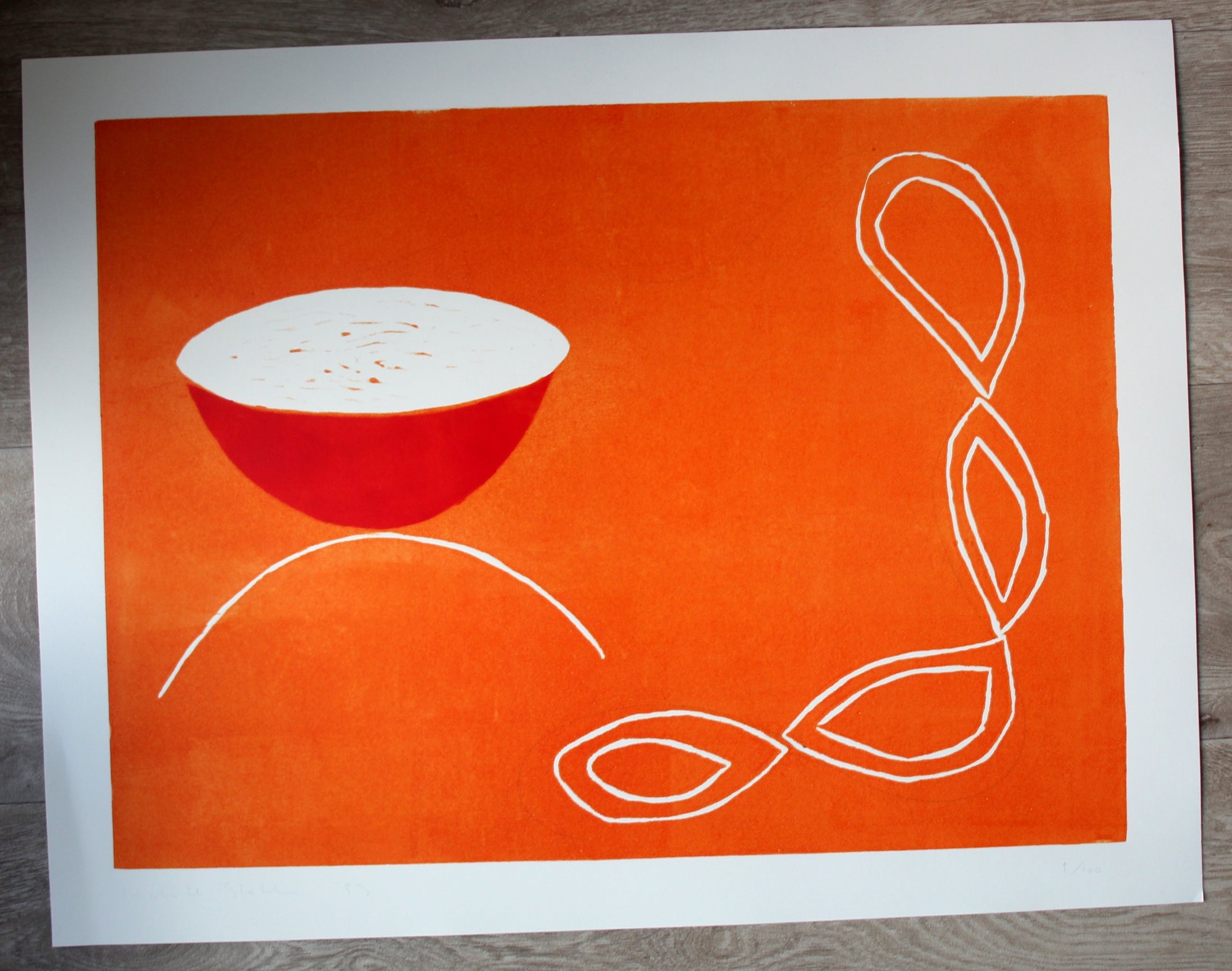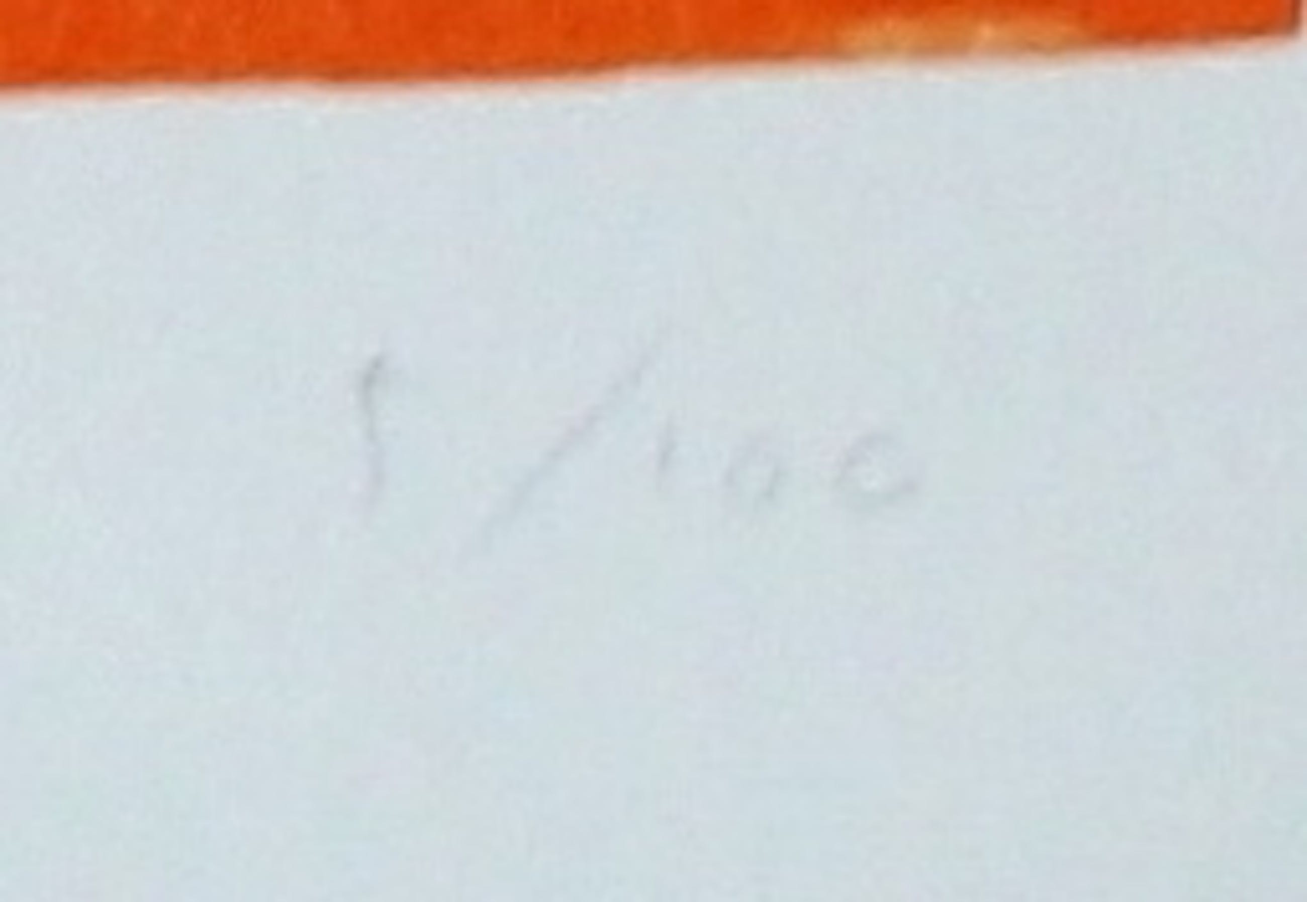 Sjabloondruk van Judith Stolker uit 1993. Titel: Zonder titel. Deze sjabloondruk komt uit de Gelderse Grafiekmap 1993. Nummer: 84/100. Afmetingen blad: h50 x b65 cm. Afmetingen voorstelling: H42 x b57cm. Het werk is linksonder, met potlood, gesigneerd door de kunstenaar. De authenciteit van het aangeboden werk wordt volledig gegarandeerd. Een certificaat van echtheid kan, op aanvraag worden gemaild.