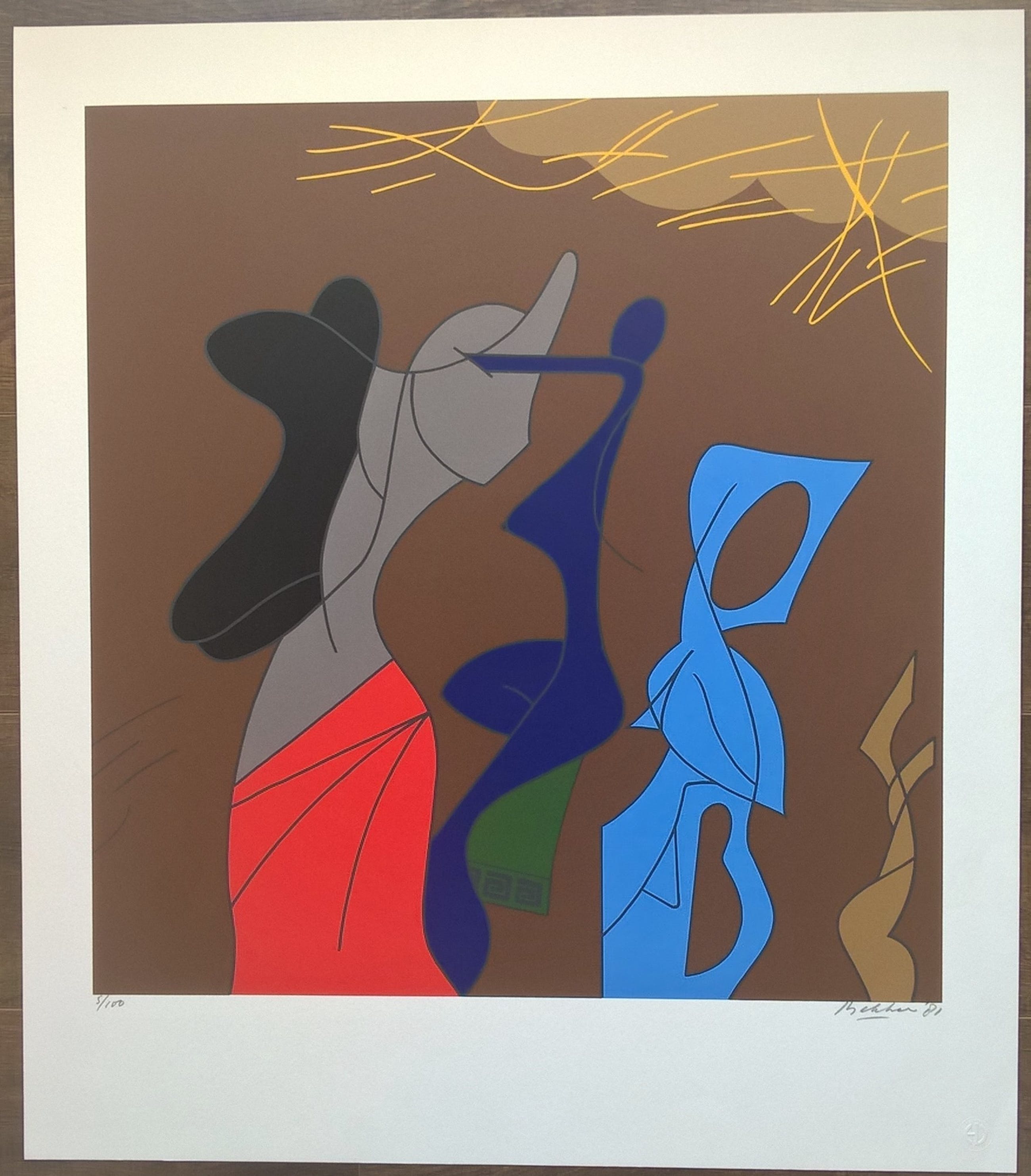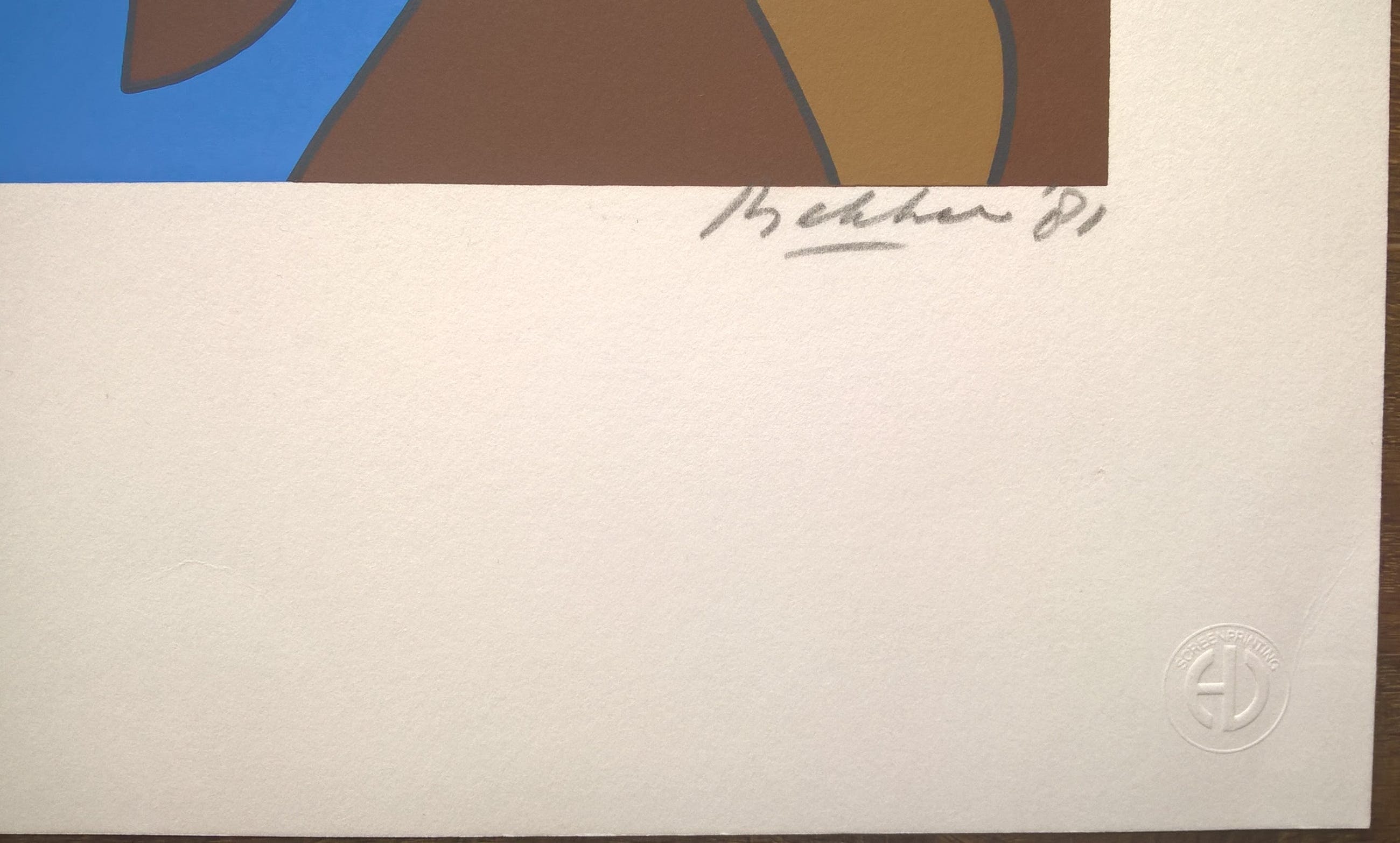 Gesigneerde zeefdruk van de kunstenaar Jules Bekker (1939). Rechtsonder is het werk gesigneerd met Bekker en 81. Linksonder met 5/100 Afmeting 74 x 64 cm. (hxb) In de linker bovenhoek zit een kleine beschadiging in het papier. Verder is de zeefdruk is in goede conditie en is nooit ingelijst geweest.