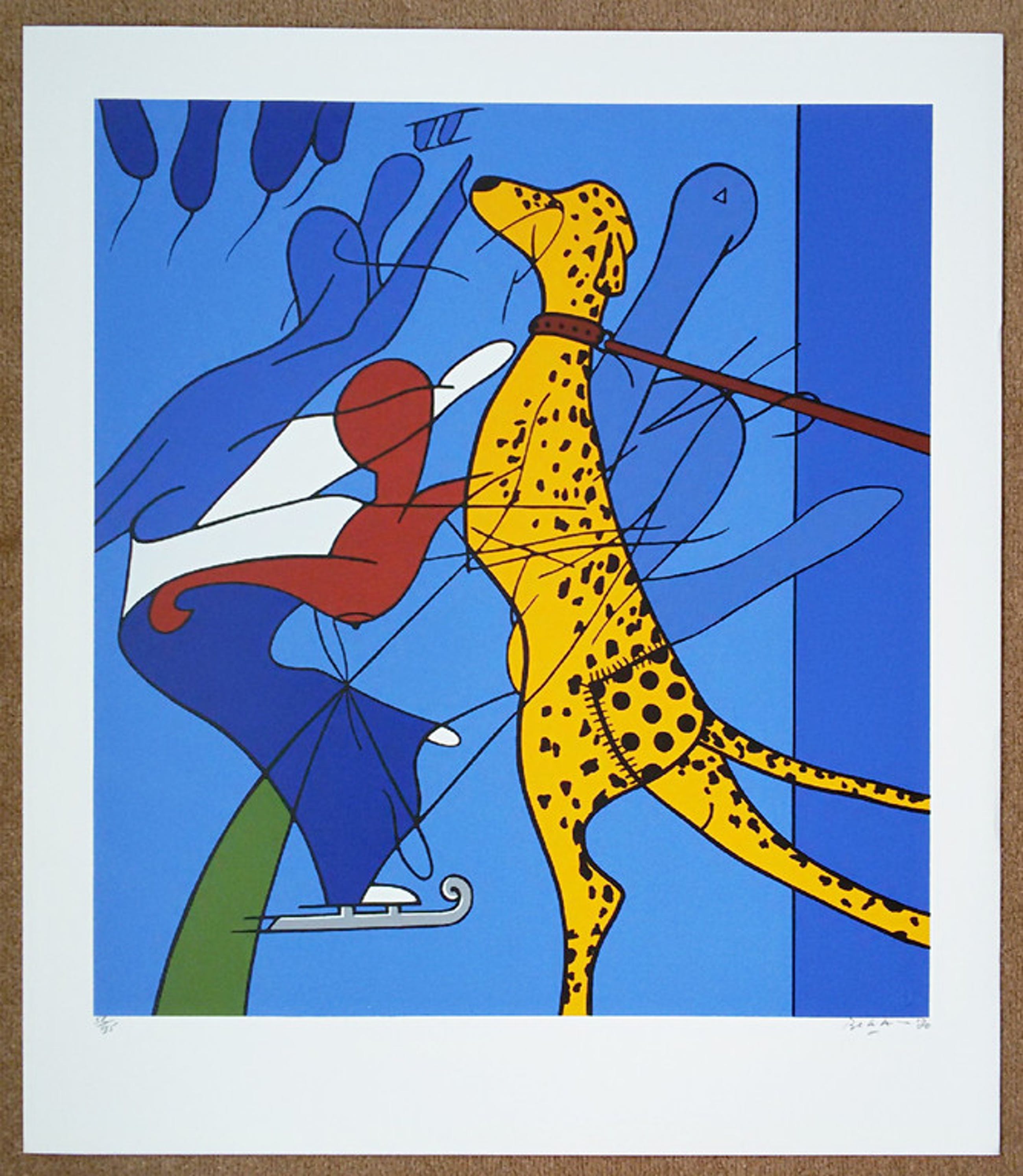 Karakteristiek, kleurrijk werk van Jules Bekker. Zeefdruk op dik papier, met potlood gesigneerd, gedateerd (‘80) en genummerd (52/95). In mint conditie.