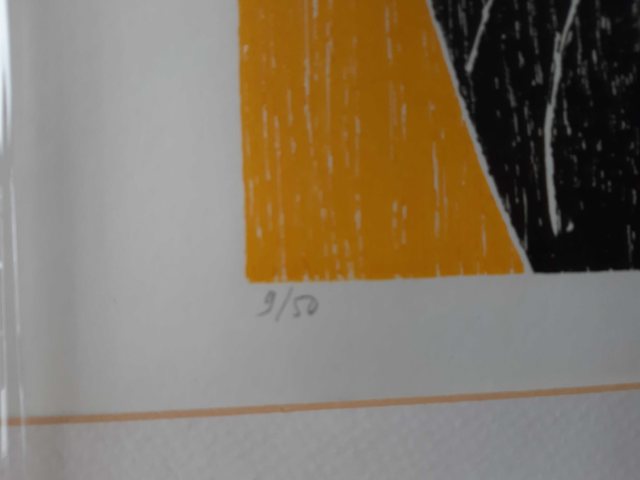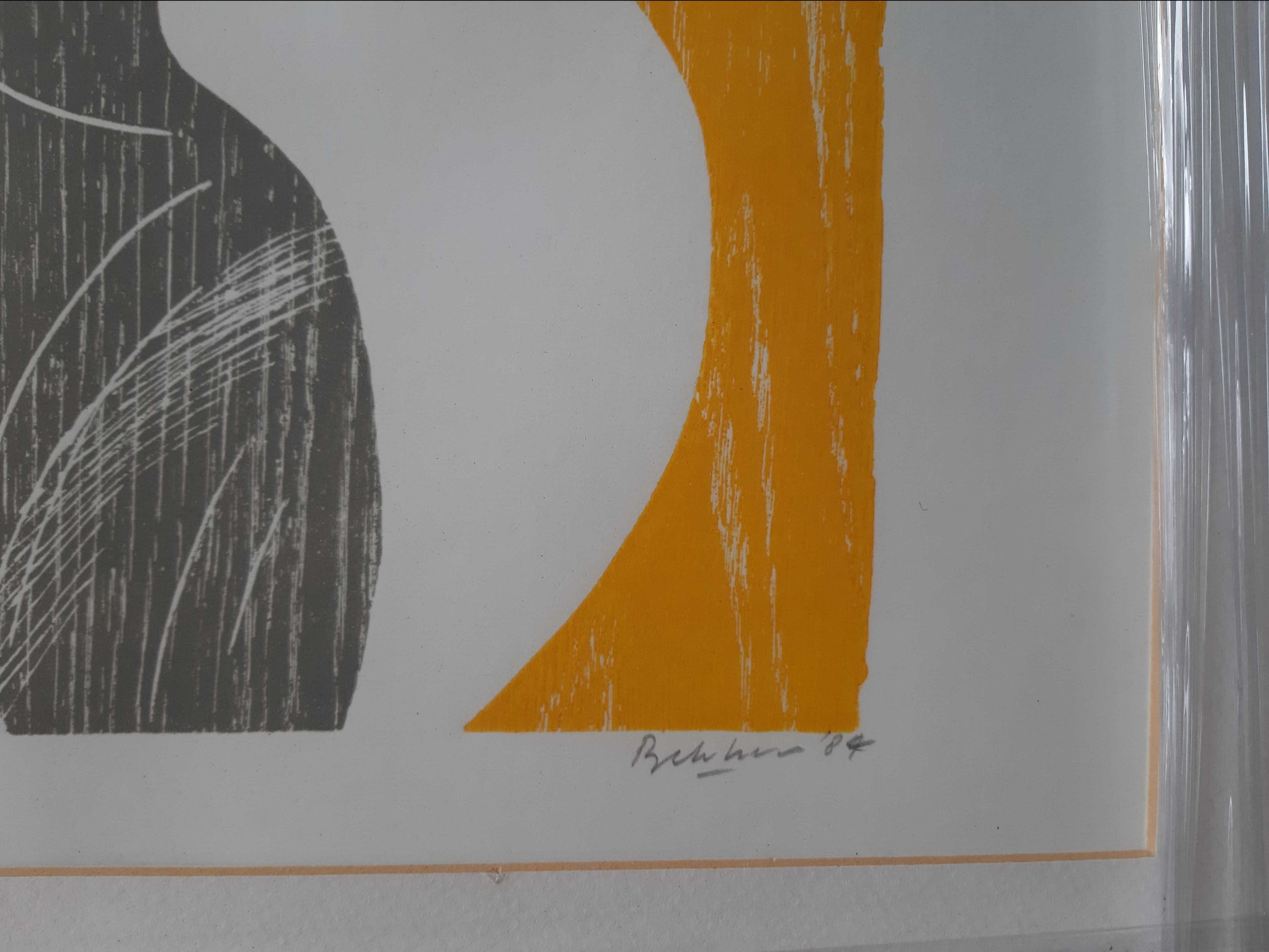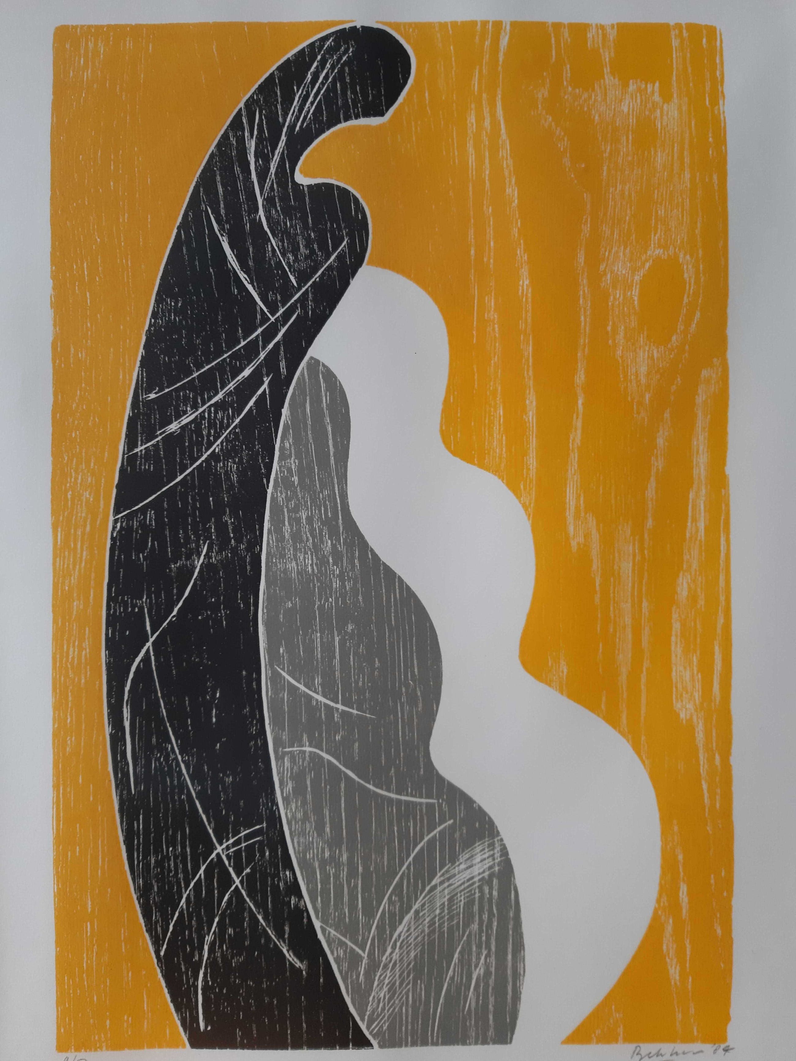 Gestyleerde compositie, houtsnede op papier, handgesigneerd, rechtsonder. Zeldzaam exemplaar van deze inmiddels 81 jarige kunstenaar