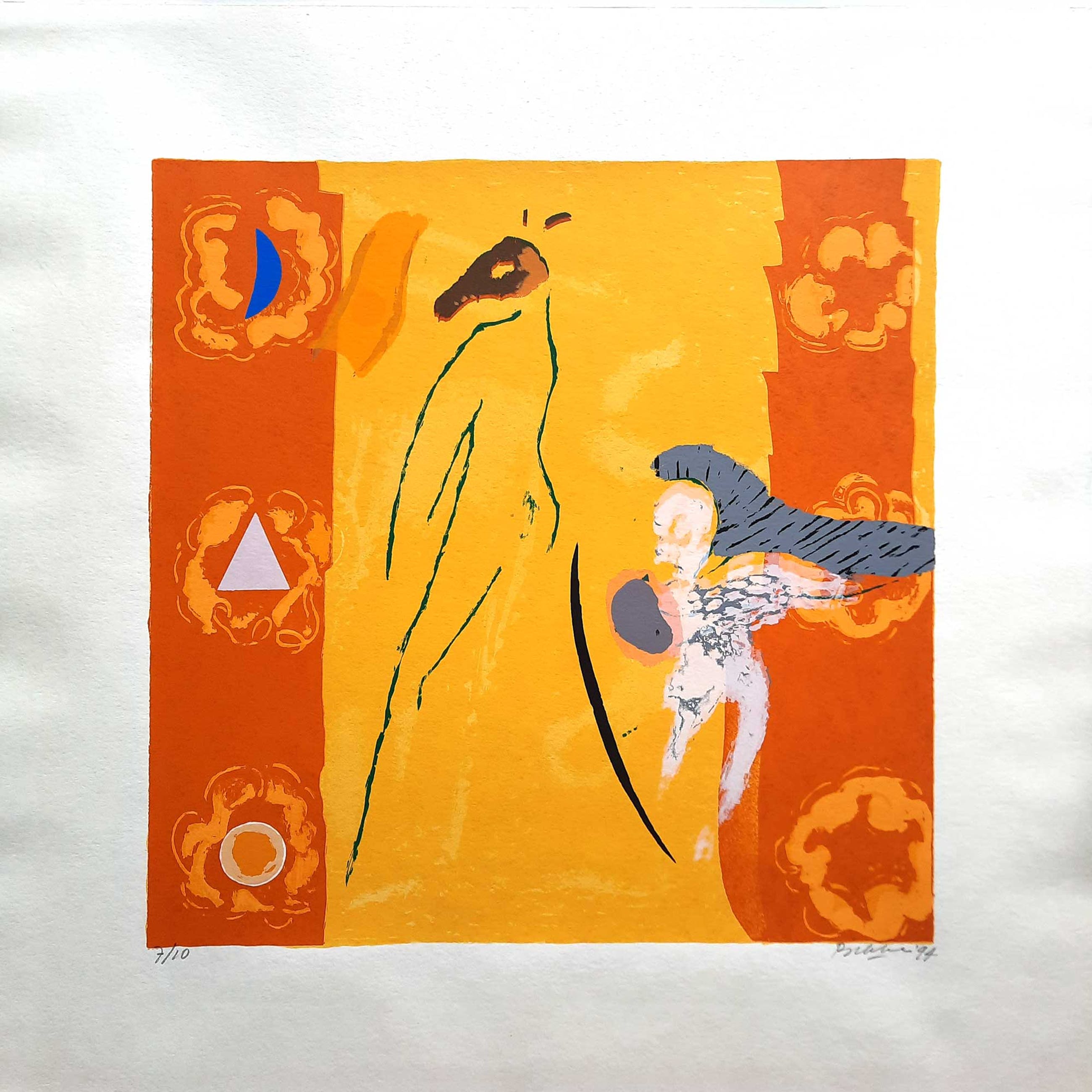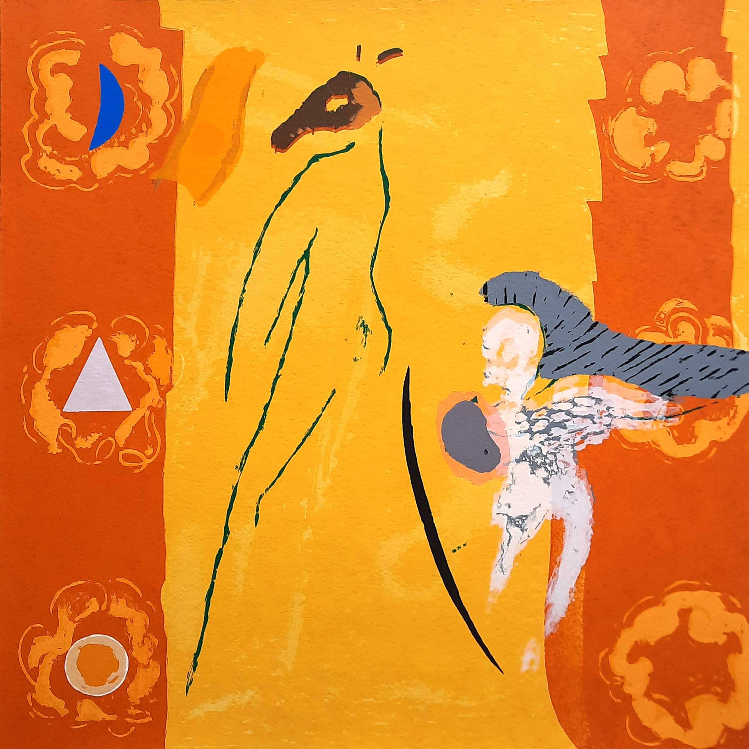 Het beeld meet 50x50 cm. Levendige kleuren. Wordt verzekerd verzonden. Risico verzending is voor koper. Afhalen in de galerie in Zaandam verdient de voorkeur. Het werk bekijken alvorens een bod te doen behoort ook tot de mogelijkheden.