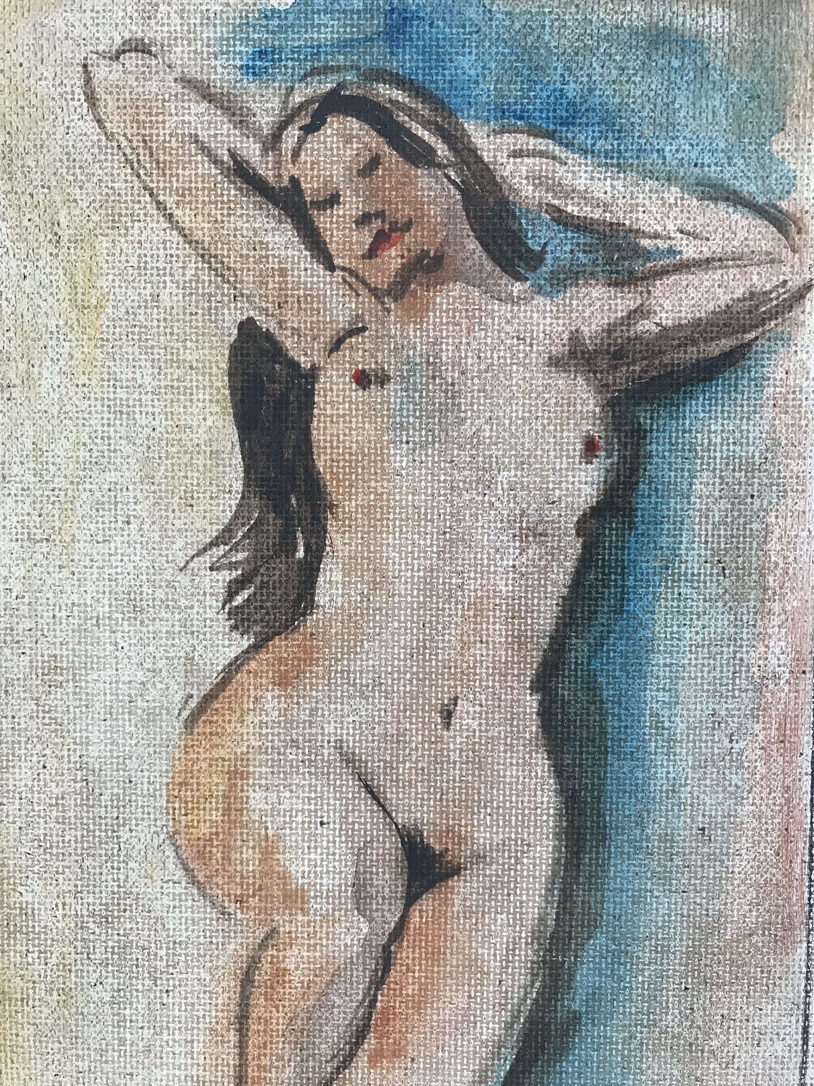 Liggend naakt, een sierlijk schilderij van de Belgische kunstschilder Jules de Meulemeester. Provenance: Belgische privé collectie