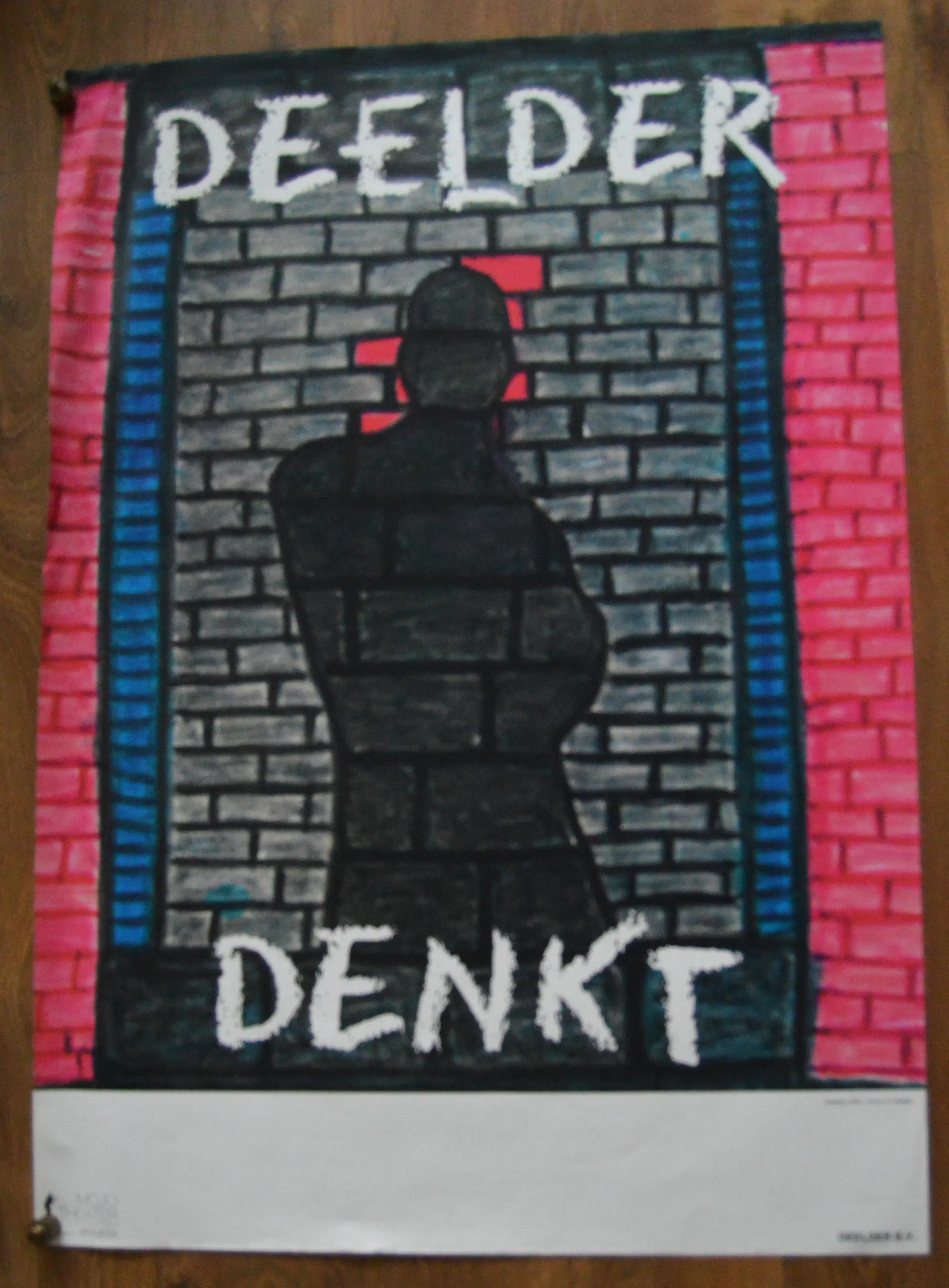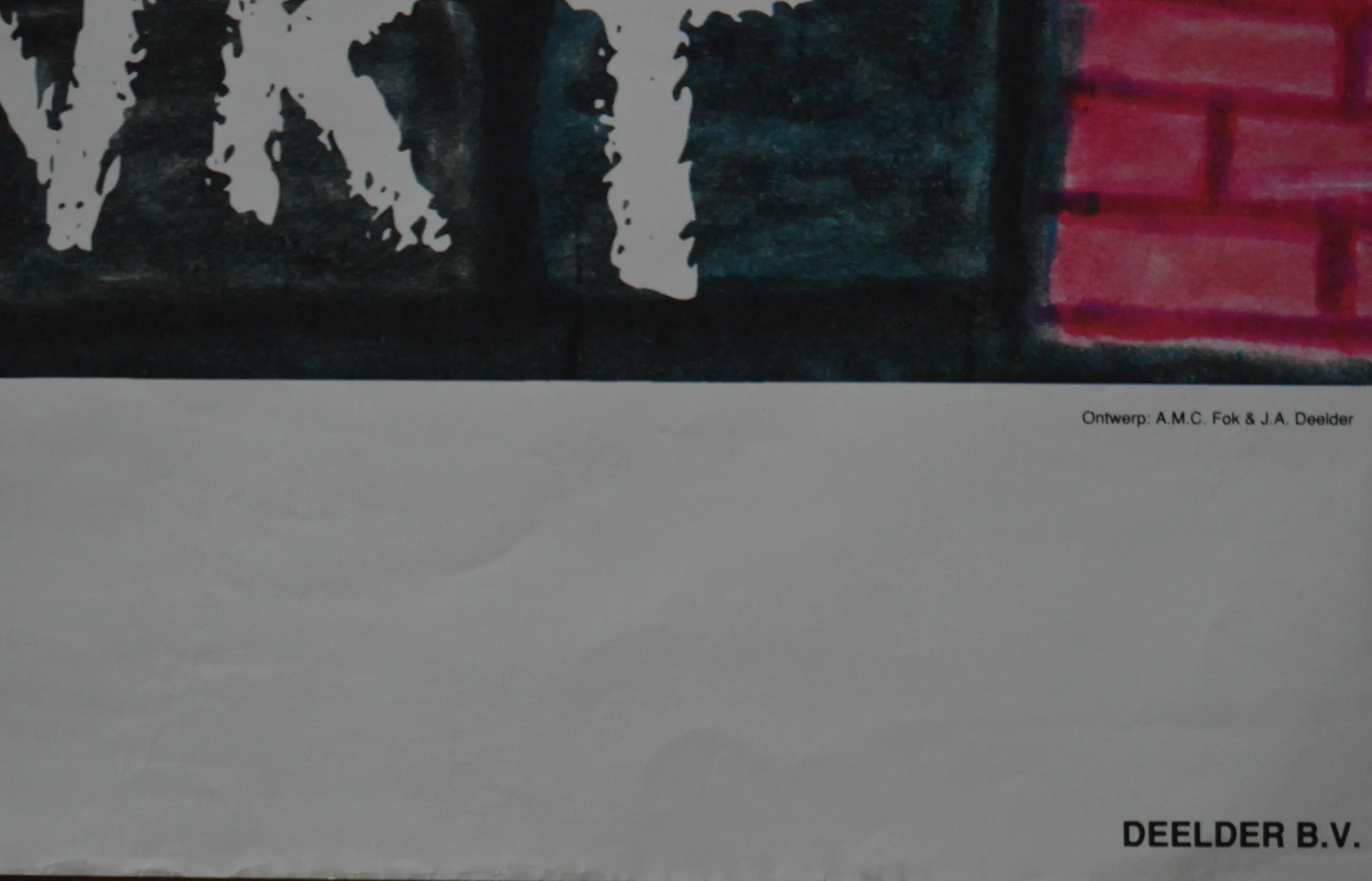 Ontwerp; A.M.C. Fok & J.Deelder. Jaren '80. Reclame voor Theater met Jules Deelder. Grootformaat. MOJO theater productions DEELDER B.V.