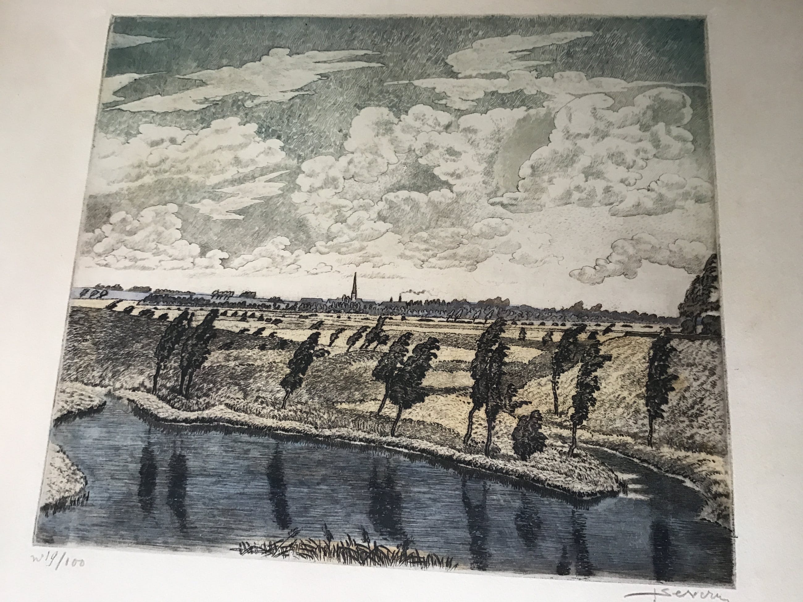 Authentiek polderlandschap 19/100, met kleur geëtst.