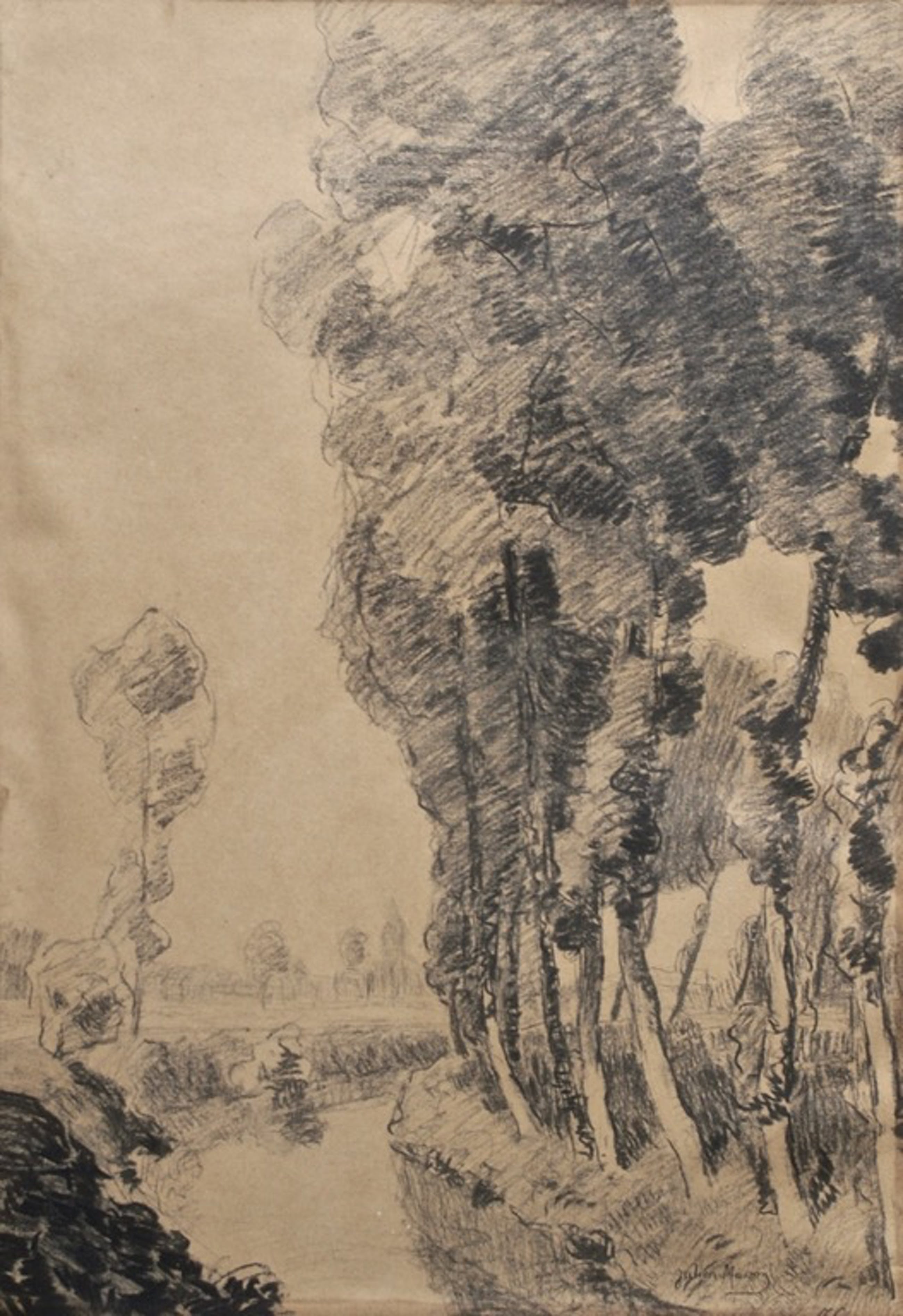 Een fraaie houtskooltekening van de Belgische kunstenaar