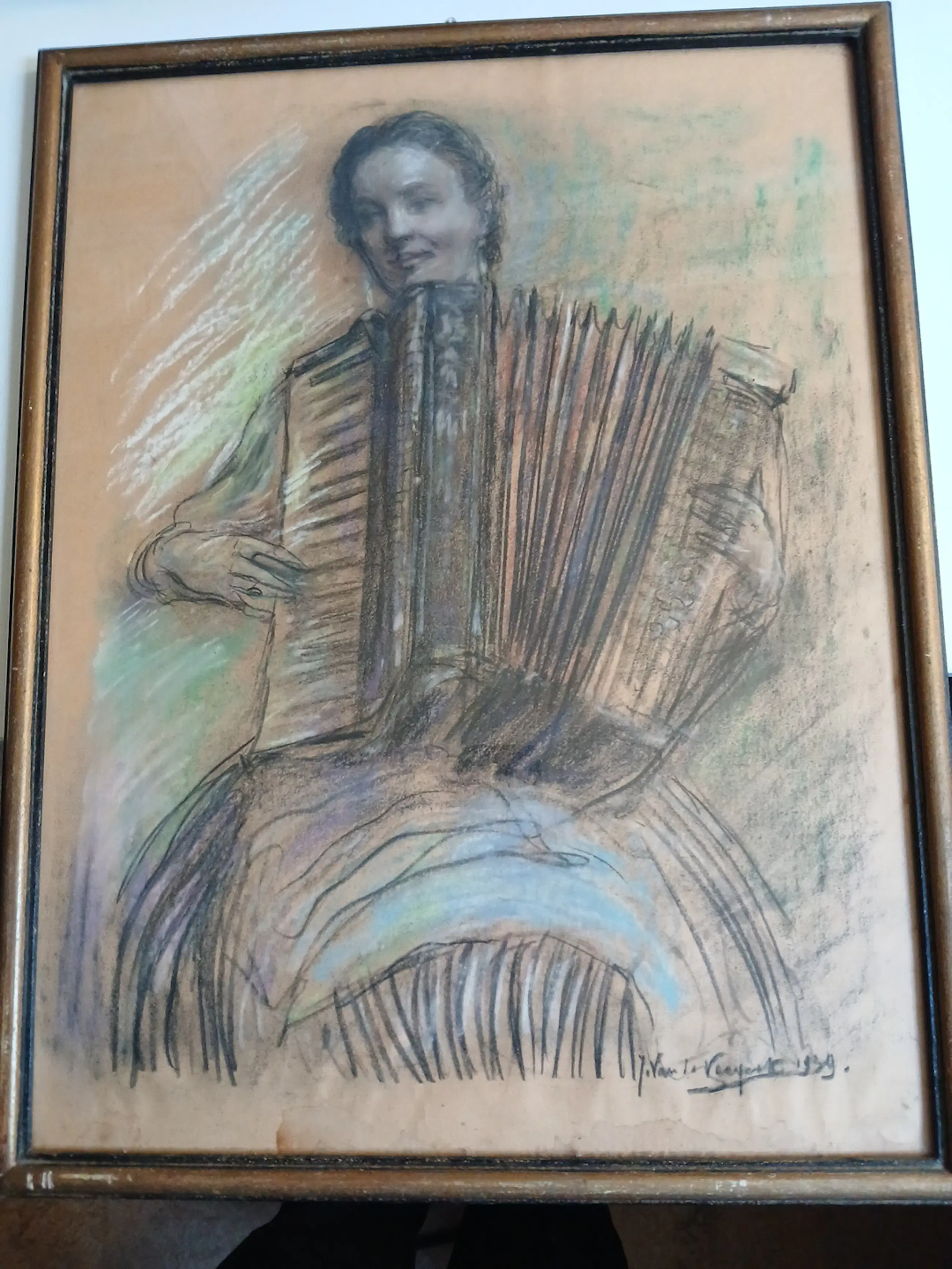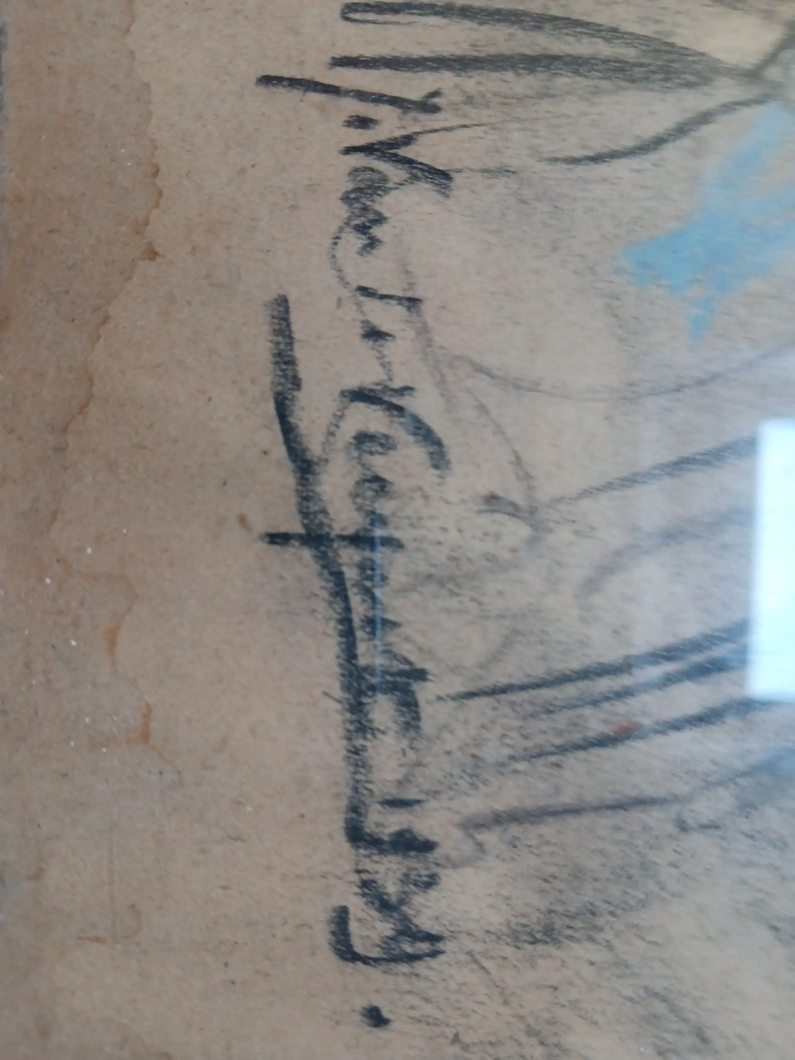 Karaktervolle tekening met o.a houtskool, pastel en krijt