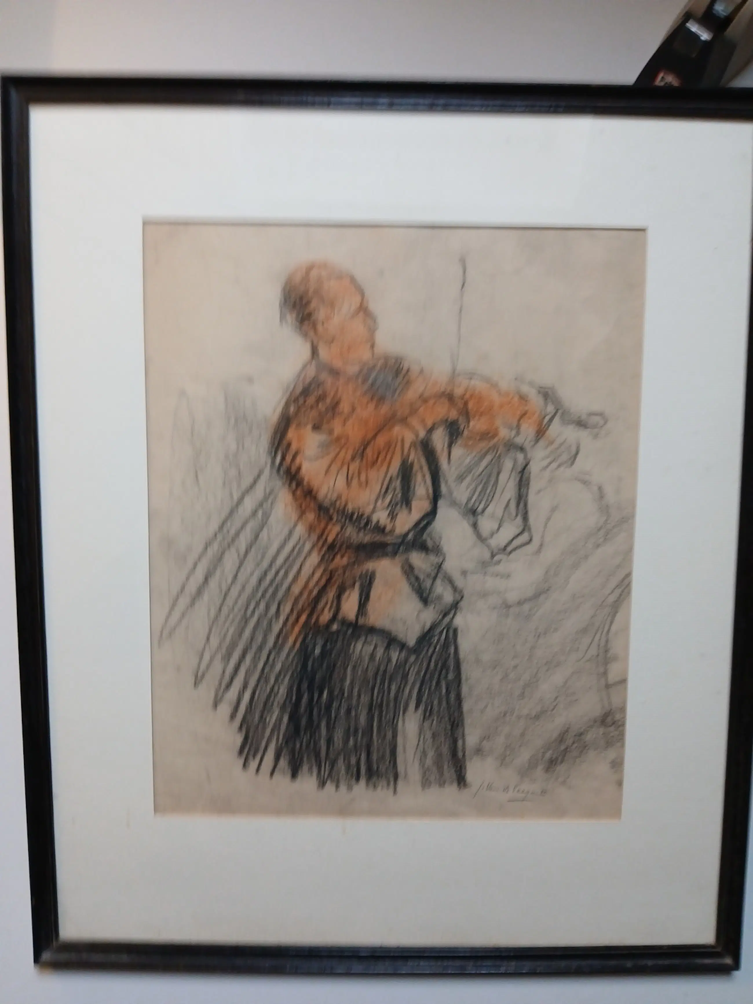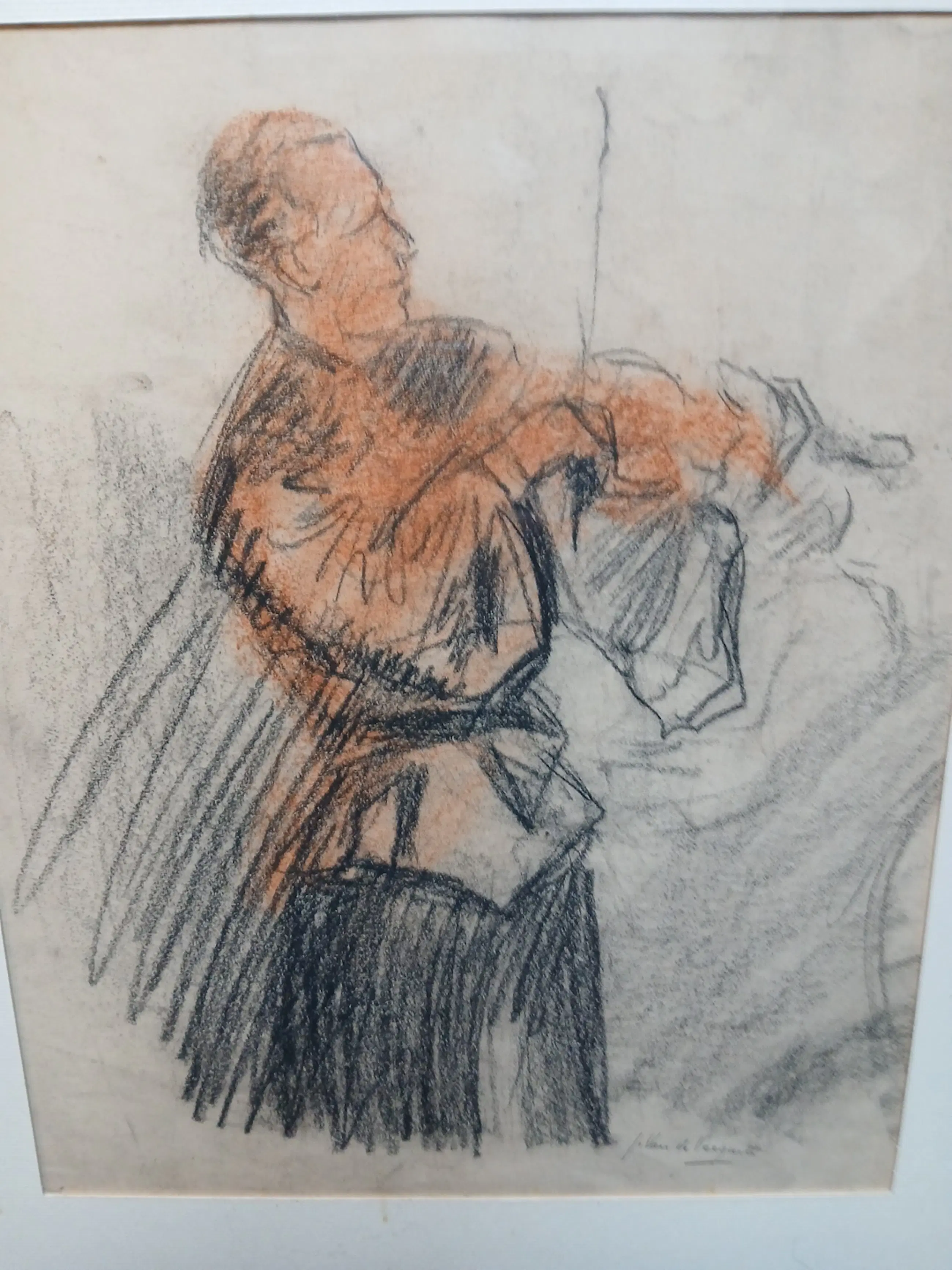 Expressieve figuurstudie uitgevoerd in houtskool enwarmbruine pastel.