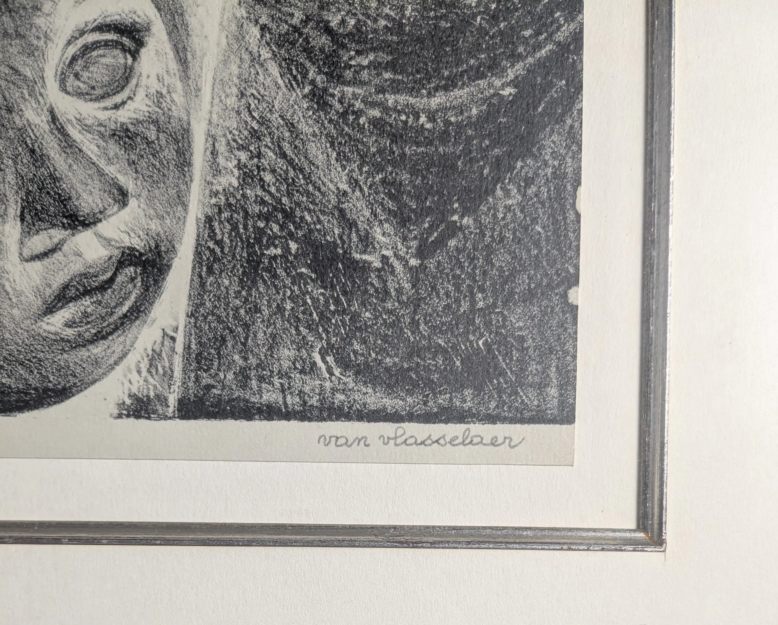 mooie ingekaderde litho door Julien Van Vlasselaer. Het werk is gesigneerd en genummerd 19/90 in potlood. Het werk is ingekaderd onder passepartout en achter glas.