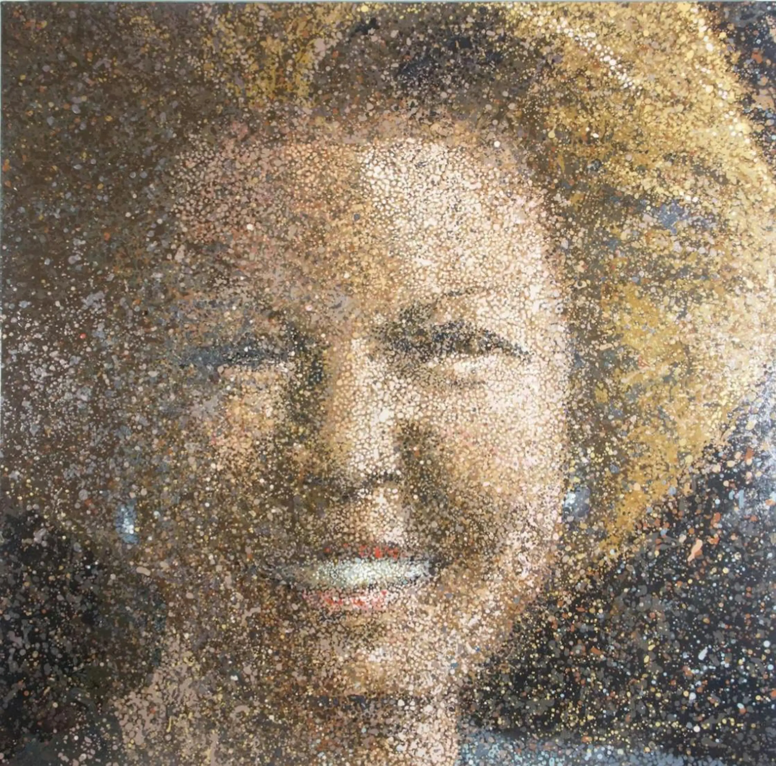 Schitterend schilderij, uniek! Een absolute blikvanger. Zelden zo’n mooi schilderij gezien van koningin Beatrix uit de periode dat zij nog koningin der Nederlanden was. Met uiterst geduld en precisie geschilderd. Stijl pointillisme, groot formaat 1.30 x 1.30 Galerieprijs: €3200