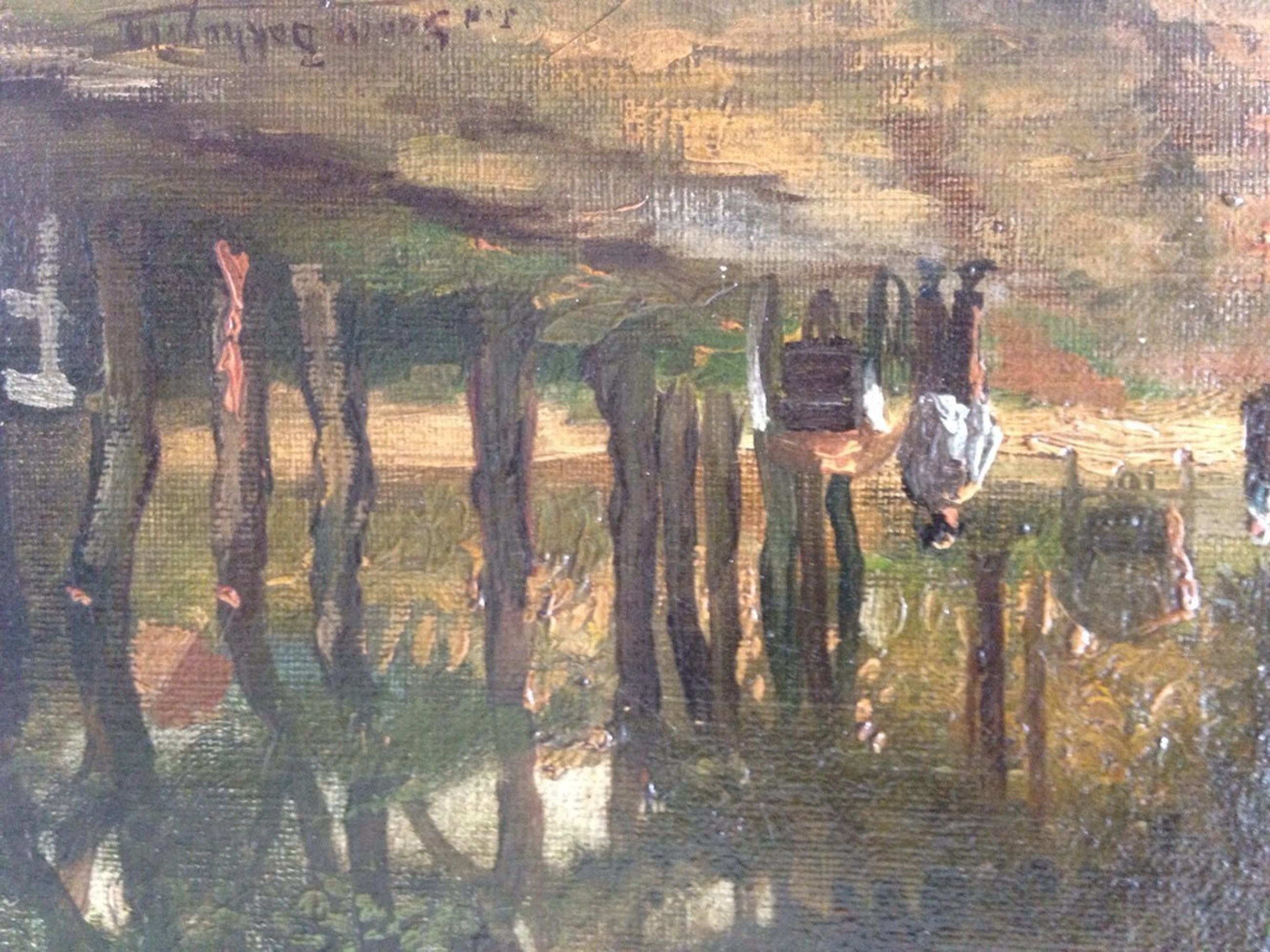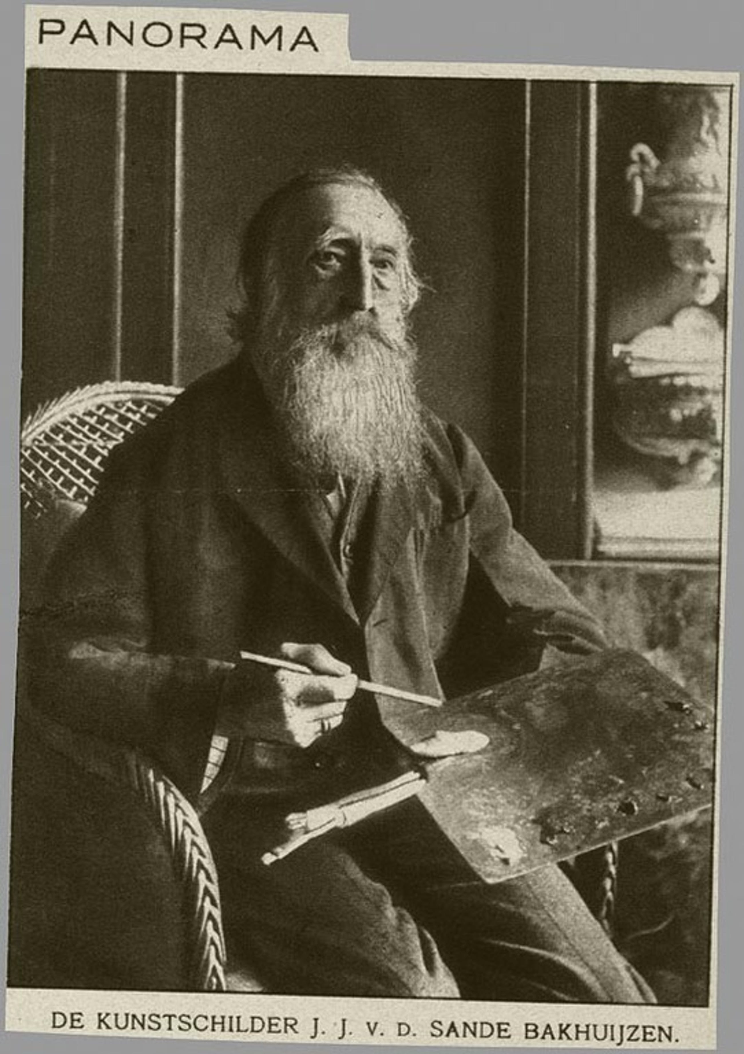 Julius Jacobus van de Sande Bakhuyzen ( 1835-1925)Leerling van zijn vader H. van de Sande Bakhuyzen en van de Academie van Beeldende Kunsten in Den Haag o.l.v. J.E.J. van den Berg. In 1871 behaalde hij de grote koninklijke medaille op de tentoonstelling te Amsterdam met de Vijver in het Haagse Bos. De volgende musea bezitten werk van zijn hand: Rijksmuseum Kröller Müller Otterlo, Rijksmuseum Amsterdam, Haags Gemeentemuseum, Rijksmuseum H.W. Mesdag Den Haag e.v.a.