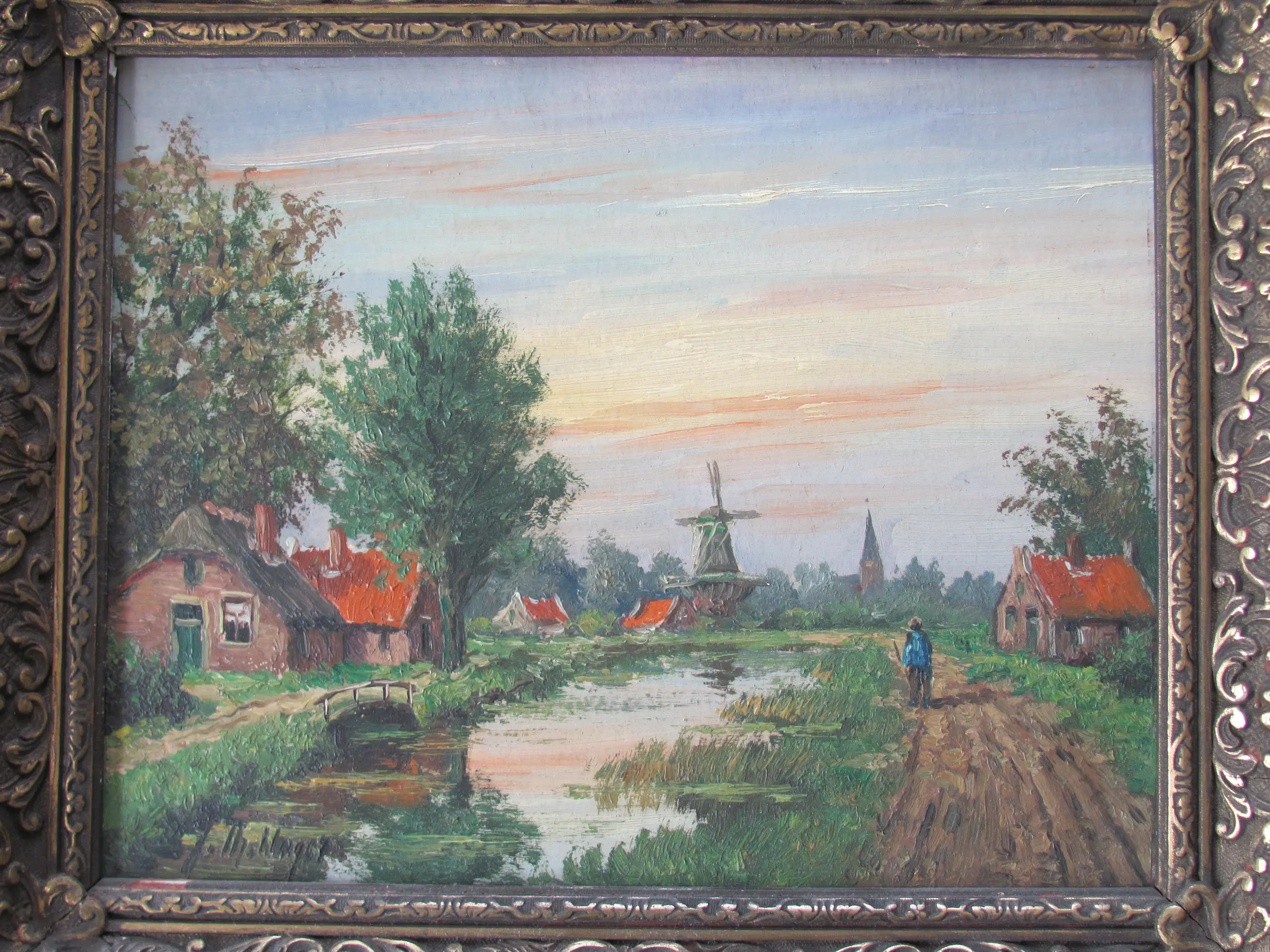 Olieverf op paneel of board van J.Th. Unger. Linksonder gesigneerd. Ondanks de ouderdom in mooie heldere staat.