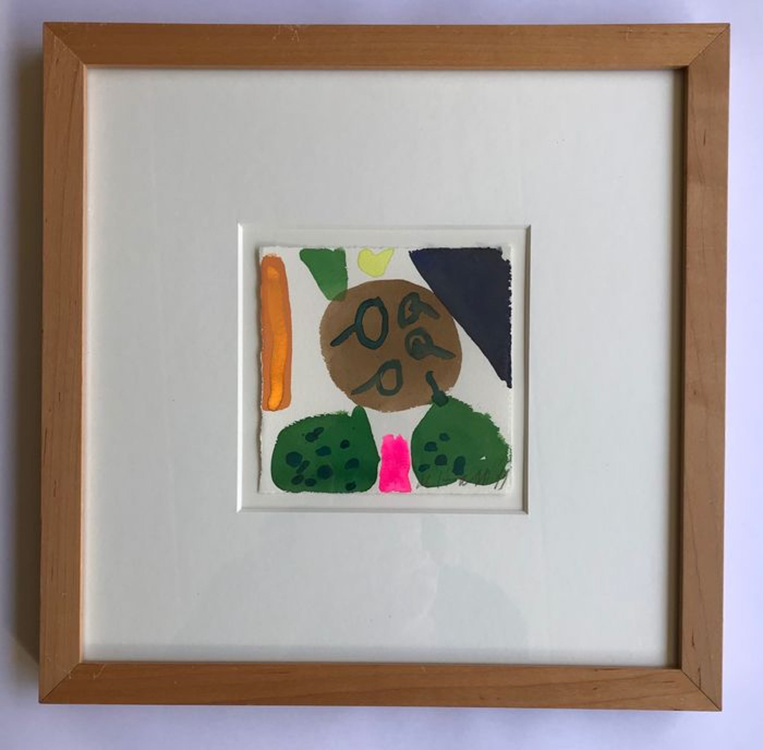 Aquarel van 12 x 12 cm op geschept papier, ingelijst binnen passe partout en onder glas.